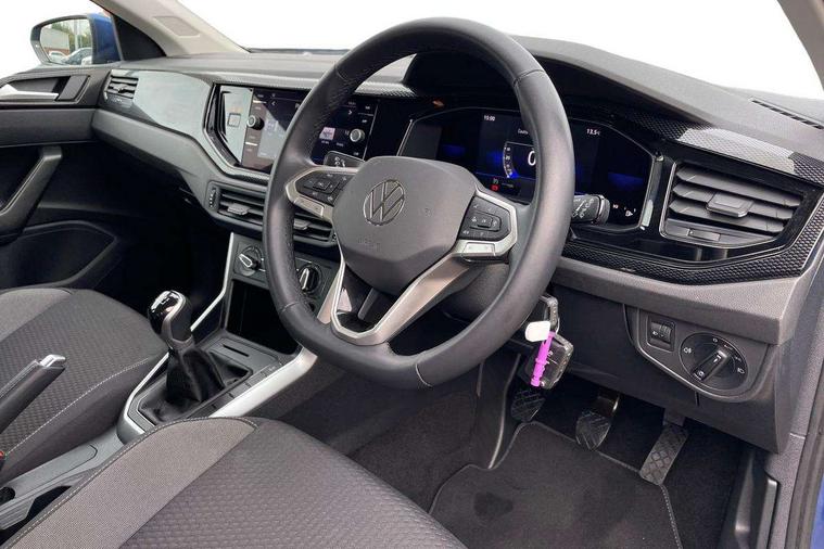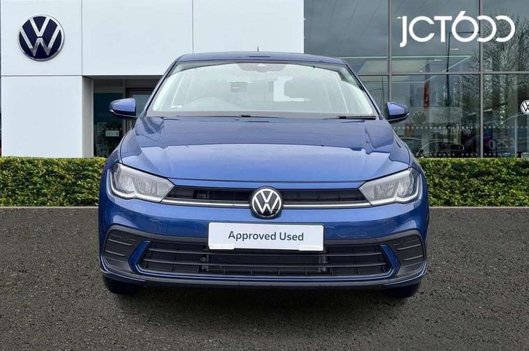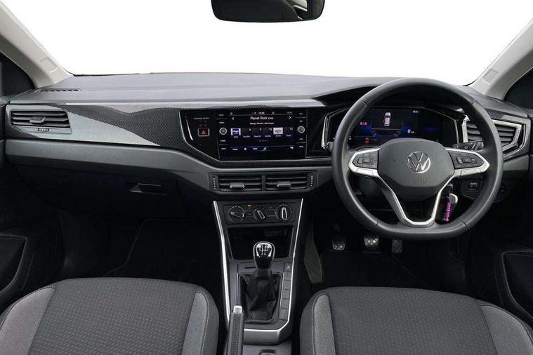 Adaptive cruise control without follow-to-stop and speed limiter, Advanced driver attention and drowsiness monitor, Bluetooth mobile phone interface, Dynamic road sign display, Emergency call service, Power assisted speed sensitive steering, Preparation for navigation system with media and internet package, Preparation for We connect and We connect plus, Speedo and rev counter, electronic odometer, trip, service interval display and exterior temperature gauge, Standard rear axle, Travel Assist - Lane keeping system and traffic jam assist, Travel assist including emergency assist, Trip computer, Warning signal and warning light for front and rear seatbelts not fastened, Washer fluid level indicator, Wireless app connect, Front wheel drive, Rear shock absorpion, Start-stop system with battery regeneration (recuperation - energy recovery during braking), DAB Digital radio, Diversity antenna for FM reception, Automatic dimming interior rear view mirror, Automatic headlight control with LED separate daytime running lights with coming/leaving home function, Body colour bumpers with chrome inserts, Body colour door handles, Body colour door mirrors, Electric front windows, Engine badge deletion, Headlight range adjustment, Heat insulating and laminated safety glass windshield, Heat insulating darkened glass in side and rear windows, Heat insulating glass windscreen, LED Headlights, LED rear combination lamps, Power folding adjustable/heated exterior mirrors and front passenger exterior mirror lowering function, Rain sensor, Rear electric windows, Rear fog light, Rear side wing doors, Rear windscreen washer and wiper with interval delay, Third brake light, 12V power socket in centre console, 2 front and 2 rear reading lights with switch off delay and dimmer, 2 USB-C ports in the front, 2 USB-C charging sockets on the center console in the rear, 3 rear head restraints, 60/40 split folding rear seat and rear seat bench not split, Ceramique roof lining, Chrome plated radiator grille inserts, air vent surrounds and light switch surrounds, Door and side trim panel, Driver and front passenger seat height adjustment, Driver/passenger sunvisors with illuminated vanity mirrors, Front centre armrest, Front seat backrest storage pockets, Front standard seats, Handbrake lever handle in leather, Hartley/Thomas cloth upholstery, Headliner in recycled material, Isofix child seat preparation easy-fit (for two outer rear seats, and front passenger seat) compatible with I-size, Leather trimmed gear knob, Luggage compartment cover, Luggage compartment lighting, Removable luggage compartment floor, Single front passenger seat, Standard climatic zones, Standard pedal cluster, Three spoke leather wrapped multifunction steering wheel, Light and vision pack - Polo, 3 point height adj front seatbelts + pretensioners, 3x3 point rear seatbelts, ABS, Driver and front passenger airbag with front passenger airbag deactivation, Drivers and front passengers safety optimised head restraints, ESC (Electronic stability control) + EDL (Electronic Differntial lock) and ASR (Traction control), Extended and predictive pedestrian/ cyclist protection, Front assist with autonomous emergency braking (for Adaptive Cruise Control ACC up to 130 mph), Front curtain and side airbags with center airbag, Front disc brakes, Hill hold control, Manual child lock in rear doors, Rear drum brakes, Single tone horn, Tyre pressure loss indicator, Alarm with interior protection, Anti-theft alarm system with interior monitoring, backup horn, and towing protection, Anti-theft wheel bolts, Electronic engine immobiliser, Lava stone black gloss/matt decorative inserts in dash and front door panels, Low rolling resistance tyres,
