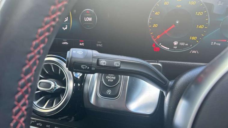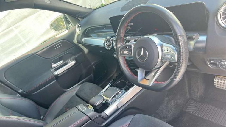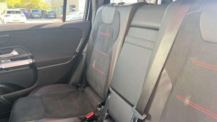 10.25" Digital instrument cluster display screen, 10.25" Digital media screen display, Active lane keeping assist, Attention assist - Monitors steering behaviour and long journey fatigue, Brake pad wear indicator warning light, Car wash mode, Cruise control with limiter, DYNAMIC SELECT with a choice of driving modes (ECO, Comfort, Sport and Individual), Easy-pack tailgate, ECO start/stop function, Fluid level warning indicator for fuel, oil, coolant and washer fluid, Hard disk navigation, Hey Mercedes Voice activation, Lamp failure indicator, MBUX augmented reality for navigation, Mercedes me connect including emergency call system, accident recovery, breakdown and maintenance management, Mercedes me remote services, Outside temperature gauge, Owners manual and service booklet in English, Parameter steering system, Pre-installation of private car share, Radio aerial integrated into front and rear windshields, Service indicator (ASSYST), Smartphone integration with Apple CarPlay and Android auto, Speed limit assist, Trip computer in multifunction display with current consumption indicator, Wireless charging, 52 litre fuel tank, Comfort suspension, Rear axle multi-link, DAB digital radio tuner, MBUX multimedia system with DAB digital radio and touchpad including satellite navigation, Mercedes Benz advanced sound system (225 W) with 10 speakers, 1 central speaker, speakers on doors, a tweeter on door, one sub woofer + boost amplifier, Pre installation for Mercedes Benz Link, USB (type C) port in front stowage compartment, USB (type C) ports (2) in stowage compartment, Adaptive brake lights, Aerial for GPS, AMG bodystyling door panels black grained with chrome plated inserts, AMG bodystyling front apron with chrome splitter, AMG bodystyling rear apron with diffuser optics and chrome trim element, AMG specific front and rear bumper including underride guard in high gloss chrome, Beltline strips and weather strip in chrome, Body coloured door handles with chrome insert for keyless entry, Body coloured door mirror caps, Electric adjustable and heated door mirrors with integrated LED side indicators, Exhaust system with dual flow exhaust pipes (non-functional), Front and rear electric windows, Headlamp assist automatic headlamp activation, Heated glass rear windscreen + timer control, High level LED third brake light, Interior mirror with black reading lamps and frameless, LED high performance headlamps with integrated LED daytime running lights, LED tail lamp, Polished aluminium roof rails, Pre-installation for trailer coupling, Privacy glass with dark tinting on rear side windows and rear window, Radiator grille with pins in chrome and single louvre with chrome insert, Rain sensor windscreen wipers, Rear fog lamp, Two visible tailpipe trim elements exhaust, 3 spoke multifunction sport steering wheel in nappa leather, Air conditioning - Two zone thermotronic luxury automatic climate control with display, AMG sports pedals with brushed stainless steel surfaces and black rubber studs, Artico man-made leather/Microfibre Dinamica upholstery with red contrast stitching, Automatic child seat recognition sensor, Black floor mats with AMG lettering, Black roof lining, Fore/aft adjustment rear seats, Freight packaging with tie-down hooks, Front centre armrest with stowage, Front door sills with illuminated changeable cover, Front passenger grab handle with brushed side silver chrome, Galvanished gear shift paddles on steering wheel, Heated front seats, Height/reach adjustable steering column, Interior lighting - 64 colour Ambient lighting, Luggage net on driver/front passenger seat backrest, Net in front passenger footwell, Rear armrest with two integral cup holders for drinks, Sports seats with adjustable head restraints, Stowage compartment in centre console, Stowage compartment with retractable cover, Third row of seats for two people on rear seat, Third row of seats with isofix and top tether child seat fixing points, Touchpad on center console, Twin front cup holders, Two outer rear seat isofix and top tether child seat fixing points, Interior lighting with light and sight pack - GLB, Keyless Go comfort pack - GLB, Mirror pack - GLB, Parking pack - GLB, Seat comfort pack - GLB, 3 rear 3 point seatbelts, Active bonnet pedestrain safety measure which detects an impact and raises bonnet by 65mm, Active brake assist includes forward collision warning system with autonomous braking, Adaptive brake assist with hold function and hill start assist, Airbags - kneebag for driver, Anti-lock braking system (ABS) with brake assist, Childproof locks manually operated for rear doors and electrically operated for rear power windows, Crash responsive emergency lighting, Driver and front passenger head and sidebags, Driver and front passenger windowbags, Dual stage driver and front passenger airbags, Electronic parking brake, Electronic stability programme with acceleration skid control, ESP curve dynamic assist, Front and rear seatbelt reminder, Front brake callipers with Mercedes Benz lettering, Front passenger seat occupancy sensor, Tyre pressure monitoring system, Warning triangle and first aid kit, Remote central locking and crash sensor with emergency opening function, Urban guard vehicle protection - Anti theft alarm system, tow away protection with visual and acoustic warning and alarm siren, Vehicle key with decorative surround in chrome, Black air vents with chrome surround, Carbon structure trim, 19" AMG 5 twin spoke light alloy wheels painted in tantalite grey with high sheen finish, Summer tyres, Tirefit tyre sealant kit,