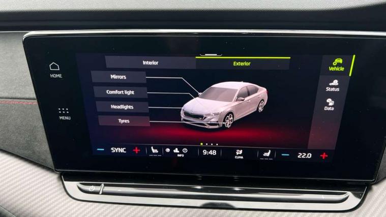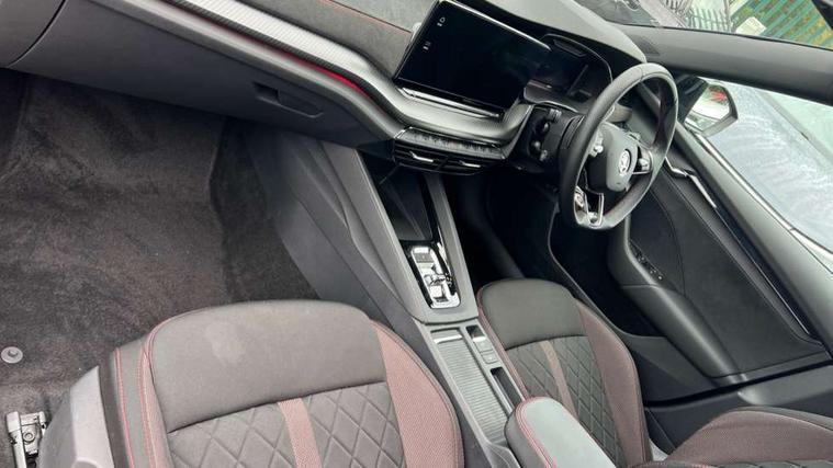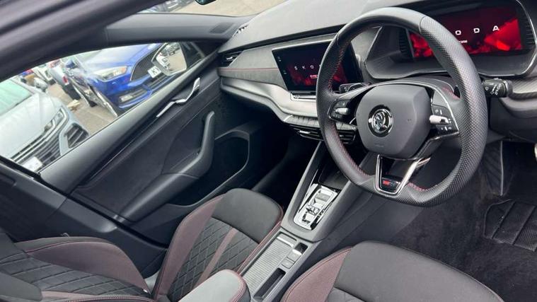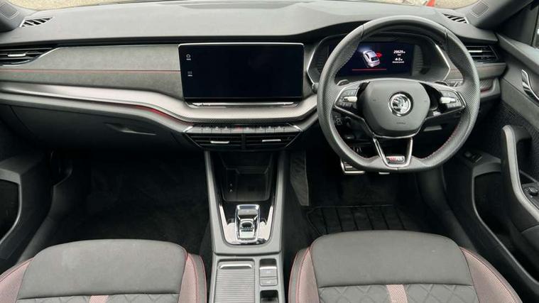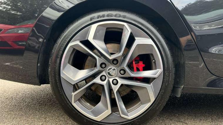 1x USB Type C port in rear view mirror (charging only), 2x USB Type C ports in rear of front centre armrest (charging only), Bluetooth system, Columbus satellite navigation with 10" touchscreen display, Driver fatigue sensor, eCall emergency system, Front and rear parking sensors with manoeuvre assist, Front assist system, Progressive dynamic steering, Speed limiter, Turn Assist, Virtual Cockpit - 10.25" digital display, Virtual pedal with electrically operated boot door (Rear LED lights (high functionality), dynamic indicators, Voice control system, Wireless SmartLink for Apple Car Play, Electronically controlled limited slip differential, Front and rear stabilizers, 2x USB Type C ports (for charging and data transfer), 8 Speakers, DAB Digital radio, Aero front windscreen wipers with intermittent function, Auto dimming rear view mirror, Body colour door handles, Chrome exhaust tailpipes, Door sills with vRS logo, Electric front and rear windows, Exterior gloss black sports styling including front grille, side strip, window surrounds, door mirror and badging, Full LED Matrix headlights with AFS, rear LED lights (high functionality) and dynamic indicators and cornering front fog lights, Headlight washers, Heated rear windscreen, High level third brake light, Ice scraper in fuel cap, LED daytime running lights, Rain and light sensors, Rear fog light on one side, Rear privacy glass, Rear side wing doors, vRS bumpers and lip spoiler, 3 rear headrests, 3 seat bench in 2nd row, 4 foldable roof handles, Aluminium pedals, Black headlining, Black microsuede padded dash panel with red contrast stitching, Chrome inner door handles, Front centre armrest, Front head restraints, Heated front seats, Illuminated glovebox, Leather trimmed gearshift lever, Luggage compartment lighting x1 light, Mechanical rear seat release, Parcel shelf - folding, Single front passenger seat, Sunglasses storage, Textile floor mat set, Three spoke leather sports multifunction steering wheel with paddles, Ticket holder, Umbrella in door panel, Unsplit rear bench seat and split folding backrest, LED interior light pack - Octavia, 3 point front/outer rear seatbelts+pre-tensioners, Alarm with interior monitoring, tilt sensor and back up horn, Automatic door unlocking in case of crash, Automatic fuel cut off in case of crash, Automatic warning lights in case of emergency braking, Curtain airbags and front side airbags, Driver and front passenger airbags, Drivers knee airbag, Electronic parking brake, ESC including ABS, EBV, MSR, ASR, EDS, HBA, DSR, Front and rear disc brakes, Front central airbag, Hill hold control, Hill start assist, ISOFIX on front passenger seat and outer rear seats, Manual rear child locks, Passenger airbag deactivate switch, Pro active services, Red brake calipers, Two tone horn, Tyre pressure monitor, Visual and acoustic seat belt reminder, Warning reflectors in front door, Door locks with immobiliser, Keyless entry and start/stop including rear doors, Remote central locking, Carbon optic decorative inserts, Gloss black air vent surrounds, 19" Altair anthracite alloy wheels,