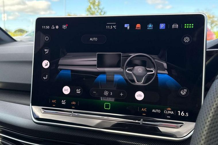 Activated carbon canister, Adaptive cruise control (ACC), Advanced driver attention and drowsiness monitor, Dynamic road sign display, Dynamic steering, E-Sim card for online connectivity, eCall emergency call system, Multi-color Digital cockpit pro, selection of different info profile possible, Multifunction front facing camera for distance control, Navigation system, Oncoming vehicle braking when turning including swerve support, Preparation for light assist system, Speed limiter, Speedo, rev counter, electronic odometer, trip, service interval display, exterior temperature and fuel gauge, Traffic jam assist, Voice enhancer and voice control, Warning signal and warning light for front and rear seatbelts not fastened, We connect plus preparation, We connect preparation, Wireless app connect, Petrol Particulate Filter, Start-stop system with battery regeneration (recuperation - energy recovery during braking), XDS electronic differential lock for improved traction and handling, 2 USB C ports in front, 2 USB charging sockets on the centre console in the rear charging capacity upto 45W, Comfort telephony + wireless charging, without wireless aerial connection, Digital radio reception (DAB), Diversity antenna for FM reception, Gaming platform via car app, Infotainment system with 12.9" display, Mobile phone interface with inductive charging feature, 3rd brake light, Auto headlights, Automatic headlamp activation with Coming home and Leaving home feature, Body colored bumpers in R-Line style, Body colour door handles, Exterior ambient lighting with illuminated door handles, Exterior mirrors convex on the left and aspherical on the right, Front and rear electric windows, Heat insulating windshield made of laminated glass, LED daytime running lights, Rear exhaust tailpipe, Rear fog light on one side and reversing lights on both sides, Rear side wing doors, Rear windscreen washer and wiper with interval delay, Remote electrically foldable door mirrors, puddle lights and reverse activated passenger's door mirror, Welcome light with surround lighting, 12V socket in front centre console, 12V socket in luggage compartment, 3 rear head restraints, 3 seat bench in 2nd row, Ambient lighting with 30 colour including LED light unit in front footwell with selectable light colour, Brushed stainless steel pedals, Carpet mats, front and rear, Chrome plated radiator grille inserts, air vent surrounds and light switch surrounds, Front centre armrest, Integrated front head restraints, ISOFIX anchors for child seats on outer rear bench seats and on front passanger seat compatible for i-Size, Leather gearshift handle, Luggage compartment lighting, Premium sports seats in front, Rear cupholder and loadthough, Single front passenger seat, Soul black instrument panel, Split folding backrest with centre armrest and unsplit rear seat bench, Storm grey roof lining, Sun visors with illuminated vanity mirrors, 3 point height adj front seatbelts + pretensioners, 3 rear three point seatbelts, ABS, Autonomous emergency braking front assist with pedestrian and cyclist monitoring, Child locks on rear doors, Driver and front passenger airbag with front passenger airbag deactivation, Electronic parking brake with auto hold, ESC (Electronic Stability Control), Extended pedestrian protection measures, Rear disc brakes, Two tone horn, Tyre pressure loss indicator, Volkswagen roadside assistance, Anti theft wheel bolts, Preparation for alcohol interlock, Decorative inserts carbon grey for dashboard and front door trim panels,