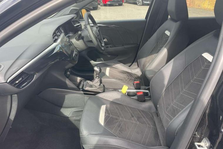 180 degree panoramic rear view camera, 2D/3D street level mapping, 7 inch digital instrument cluster display, Auto tele unit 3S vehicle communication system, Breakdown call (b-call), Central facia display with digital clock, outside air temperature and audio information, Connected navigation, Cruise control with intelligent speed limiter, Driver drowsiness alert system, E-call, Engine oil life indicator, Enhanced traffic sign recognition, European coverage, Front and rear parking sensors, Front camera system, Instrumentation - Speedometer, rev counter, low fuel gauge warning light + water temperature gauge warning light, Lane departure warning, Lane keep assist, Lights on audible warning, MAP OTA updates, Multi function trip computer, POI (search), RDS with traffic programme, Satellite navigation system, Service indicator, Side blind spot alert, Smartphone projection, Speed sensitive power steering, Speed sign recognition, Sport drive mode selector, Start/stop system, Vauxhall connect box, Voice recognition, Wireless Apple CarPlay/Android Auto, Wireless charger, Electronic returnless fuel system, Petrol Particulate Filter, Under body shield for aero, AM/FM stereo radio, Bluetooth A2DP audio streaming, DAB Digital radio, Multimedia Navi with 10-inch touchscreen, Rear USB port, Six speakers, Steering wheel audio, phone and cruise controls, USB type C port, 3rd brake light, Automatic headlamp levelling, Automatic headlight control system, Black DLO, Black door mirror housings, Black Griffin logo and vizor frame, Black lower side window mouldings, Body colour door handles, Body colour front and rear bumpers, Bonnet/headlight/wiper structure, Corsa lettering in tailgate, Dark tinted rear side windows + tailgate window, Electrically adjustable and heated door mirrors, Electrically folding door mirrors, Electrically operated front and rear windows with safety auto reverse and one touch up/down facility, Electrochromic automatic anti-dazzle rear view mirror, Glazed tailgate and heated rear window with wash/wipe facility, Hazard warning lights, Headlamps for left side traffic, High beam assist, High gloss black finish B pillar, Intelli-Lux Matrix LED Headlights, LED daytime running lights, LED fog lights, LED tail lamp, Rain sensitive windscreen wipers, Rear fog lamp, Rear reversing lights, Rear side wing doors, Rear wiper, Shark fin aerial, Solar heat absorbing windscreen and windows, Sports front and rear body styling for upper and lower bumper design, Two speed windscreen wipers with variable intermittent wipe, Ultimate badge and sill plate, Windscreen and side window demist vents, 12V power sockets, 3 bench rear seats in 2nd row, 3 spoke flat bottomed leather effect steering wheel with satin chrome effect bezel, 4 speed fan with illuminated controls, 6 way manual adjustable co-driver seat height up/down, reach fore/aft, backrest upright/recline, 6 way manual adjustable driver seat with massage function height up/down, reach fore/aft, backrest upright/recline, 60/40 split folding rear seat, Alcantara leather upholstery, Black headliner, Cabin particulate filter - removes dust, airborne particles and pollen, Comfort front seats, Driver's seat lumbar support, Driver/passenger sunvisors with vanity mirrors + covers, Electronic climate control (ECC), Four adjustable facia vents, Front centre armrest with storage, Front cupholder, Front headrests, Heated front seats, Heated steering wheel, Height adjustable head restraints, Illuminated glovebox with lid, Interior courtesy light, Internal chrome door handles, LED ambient lighting, LED boot light, Polyurethane gear knob/lever, Reach and rake adjustable steering column, Rear cupholder, Rear headrests, Right hand drive (RHD), Single dome lamp with dual front reading lamps, Single front passenger seat, Sports style front seats, Two litre open door pockets, 3 rear 3 point seatbelts, Anti-lock braking system (ABS), Cornering brake control, Deactivation switch for front passenger's airbag, Drag torque control, EBD - Electronic brakeforce distribution, Electrical child lock system in rear door latch, Electronic parking brake, Electronic Stability Programme (ESP), Emergency brake assist, Enhanced automatic emergency braking with pedestrian detection, Forward collision alert, Front seatbelt unfastened audible warning and warning light, Hill hold and start system, ISOFIX child seat mountings incorporating top tether anchor points located on second row rear seats, Seatbelt pretensioners, Single tone horn, Six airbags - Driver's dual stage airbag/front passenger's dual stage airbag/front seat side impact airbags/full size curtain airbags, Straight line stability control, Traction control, Tyre deflation detection system, Tyre pressure monitoring system, 2 keys one folding with integral remote, Electronically protected audio equipment, Engine deadlock and immobiliser, Freewheeling door locks, Keyless entry and start, Locking wheel nuts, Remote control central locking, Remote control security alarm system, Remote locking fuel filler flap, Steering column lock, Visible vehicle identification number, Silent black facia with liquid palladium insert, 17" Diamond-cut hi-gloss black alloy wheels,