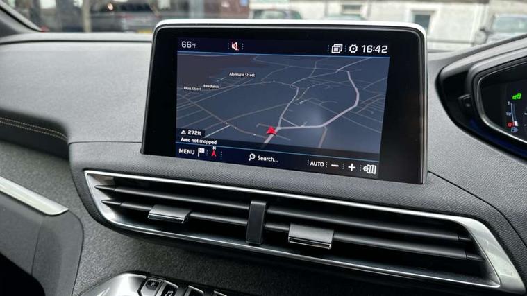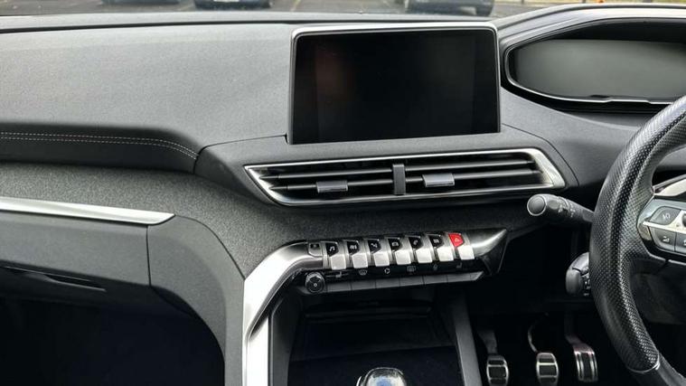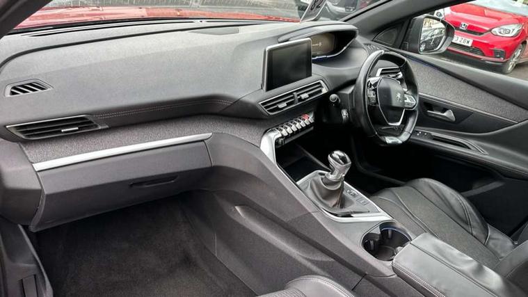 3D connected navigation + voice control + Peugeot connect SOS and assistance, Blind spot monitoring, Digital clock, Exterior temperature gauge, Lane departure warning system, Lane keep assist, Mirror screen with mirror link and car play, Multi function trip computer, Peugeot i-cockpit with amplify configurable interior ambiences, headup display with distance alert, touch screen, Programmable cruise control and speed limiter, Rear parking aid, Smartphone cradle, Speed sensitive power steering, DAB Digital radio, Peugeot connect with USB and bluetooth, Radio/MP3 player, Steering column mounted multifunction controls, Automatic activation of hazard warning lights, Automatic headlamp levelling, Black diamond roof, Black door mirrors, Body colour door handles, Body colour rear spoiler, Body coloured bumpers, Chrome bumper inserts, Chrome front fog light surround, Chrome radiator grille and surround, Chrome side window trim, Dark tinted rear windows, Electric folding door mirrors with courtesy approach lighting, Electric operated/heated door mirrors, Heated rear windscreen, LED daytime running lights, LED headlights with LED front fog light and static cornering light, LED rear lights, One touch electric front/rear windows, Peugeot smart beam assist, Rear wiper, Sports front bumper, Twin exhaust tailpipe, 1/3 to 2/3 split folding rear seats, 3 x 12V power sockets, 4 Lashing eyes in boot, Blue ambient lighting, Centre console cupholder, Centre front armrest with illuminated cool compartment, Cupholders - 2 in rear centre armrest, Dual zone automatic climate control, Fold flat front passenger seat with picnic table, Front headrests, Front reading lights, Front seat back map pockets, Gear shift indicator, Grab handles, Height adjustable headrests, Height adjustable passenger seat, Height/reach adjust steering wheel, Illuminated glovebox, Illuminated vanity mirrors, Instrument panel light dimmer, ISOFIX on front passenger and rear outer seats, LED interior illumination, Mistral floor mats, Mistral full grain perforated leather steering wheel with aikinite stitch, Rear centre armrest/ski flap, Rear coat hook, Rear headrests, Rear passenger footwell storage, Rear reading lights, Reclining front seats, Roof lining - Tramontane black, Satin chrome interior door handles, Visibility pack - 3008, 3 point front seat belts, 3 point seatbelts on all rear seats, ABS + EBD + EBA, Auto city emergency braking, Driver SMART airbag, Electronic parking brake, ESP with ASR, Front and rear curtain airbags, Front and rear pre-tensioning and force limiting seatbelts, Front passenger SMART airbag with deactivate switch, Height adjustable front seatbelts, Hill start assist, Seatbelt warning lamp and buzzer, Side airbags x 2, Tyre pressure sensor, Automatic door lock/re-lock after 30 seconds, Central locking button on dash, Child lock control of rear doors and windows, Deadlocks, Locking wheel bolts, Perimetric and volumetric anti theft alarm, Remote control central locking with two plip keys, Rolling code transponder immobiliser, Brumeo fabric interior trim,