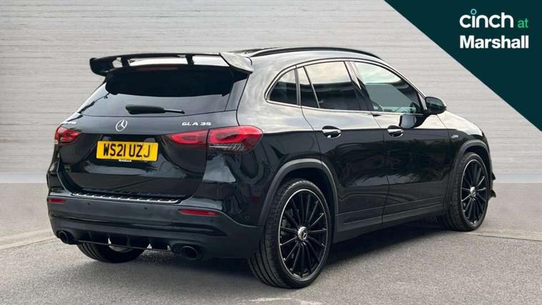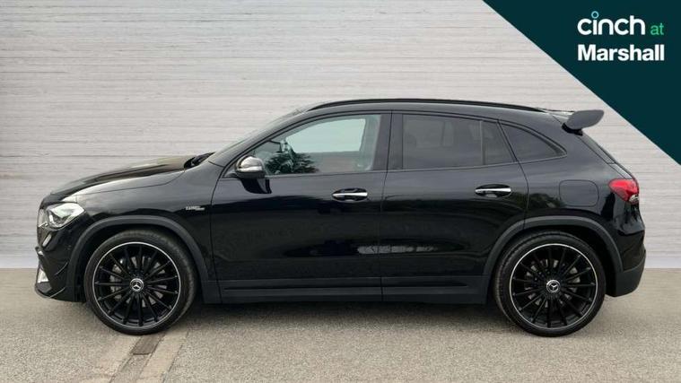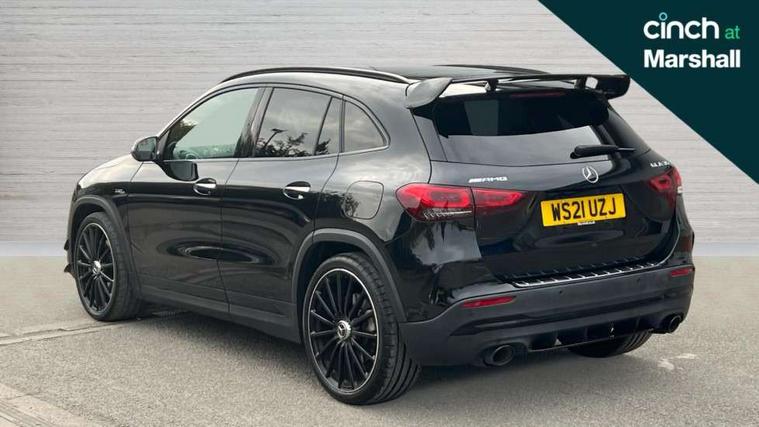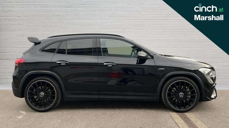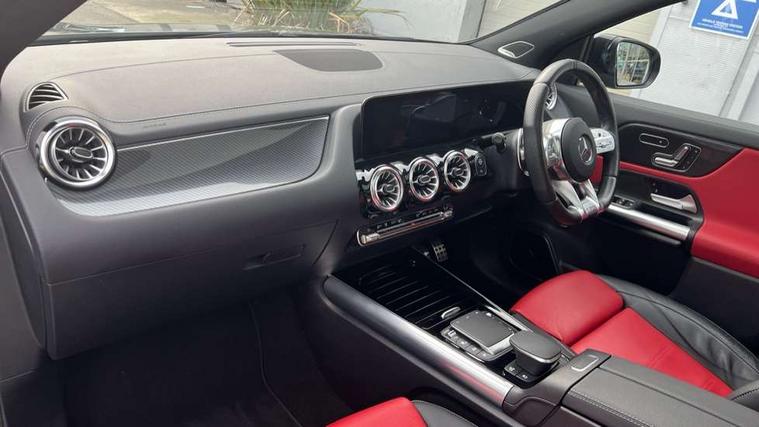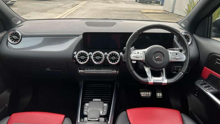 10.25 inch touchscreen central media display, 10.25" Digital instrument cluster display screen, Active lane keeping assist, Attention assist, Augmented reality navigation, DYNAMIC SELECT with a choice of driving modes (Comfort, Sport, Sport +, Slippery and Individual), Easy-pack tailgate, ECO start/stop function, Fluid level warning indicator for fuel, oil, coolant and washer fluid, Hard-disk navigation, Hey Mercedes Voice activation, Instrument cluster - AMG sporty menu with gear indicator, warm up menu, set up menu, plus G meter, Race timer and engine data, Lamp failure indicator, Mercedes me connect including emergency call system, accident recovery, breakdown and maintenance management, Mercedes me remote services, Multi function trip computer, Outside temperature gauge, Owners manual and service booklet in English, Pre-installation of private car share, Radio aerial integrated into front and rear windshields, Service indicator (ASSYST), Smartphone integration with Apple CarPlay and Android auto, Speed sensitive power steering, Status display for rear seat belts in instrument cluster, Traffic sign assist, Wireless charging, Rear axle multi-link, Suspension with adaptive damping system, 2 USB ports (type C) in rear stowage compartment and one in front of center console, Bluetooth connectivity including audio streaming, Burmester surround sound system, DAB Digital radio, MBUX multimedia system with AMG specific display designs, programs and engine data, Media interface, Adaptive brake lights, Aerial for GPS, AMG body styling - Front apron with air deflectors on the outer air intakes, AMG body styling - larger air intake in black, AMG body styling - Rear air outtakes, AMG exhaust system with flap control dependent on drive program, AMG real performance exhaust sound system, AMG specific/dual flow exhaust pipes in chrome (non-functional), Automatic headlamp activation, Body colour bumpers, Body coloured door handles with chrome insert for keyless entry, Car wash function, Dark privacy glass from B-pillar backwards, Electric front windows, Electric rear windows, Electrically adjustable and heated door mirrors with integrated LED indicators, Front wings with TURBO 4MATIC lettering, Heated glass rear windscreen + timer control, Heated windscreen wash system, Interior mirror with black reading lamps and frameless, LED tail lights in two piece design, LED third brake light, Multibeam LED headlamps with adaptive highbeam assist plus, Panoramic sunroof, Rain sensor windscreen wipers, Rear fog lights, Roof spoiler, Signature AMG radiator grille, 12V power socket in centre console, 3 spoke AMG flat bottom performance sports steering wheel in black nappa leather with perforated grip area, 12 o'clock and silver chrome AMG lettering, 40:20:40 split folding rear seat backrests, Adjustable head restraints, Air conditioning - Two zone thermotronic luxury automatic climate control with display, Ambient lighting in front headrests, AMG floor mats in black with AMG lettering and border in nubuck leather look finish, AMG illuminated door sills with changeable cover, Auto Mercedes-Benz child seat recognition sensor, Black roof lining, Centre console with AMG specific hand comforter and button to control manual transmission and 3 stage ESP, Courtesy light in boot, Electrically adjustable front memory seats with four way lumbar support, Front centre armrest with stowage, Galvanished gear shift paddles on steering wheel, Heated front seats, Illuminated glovebox, Interior lighting - 64 colour Ambient lighting, Leather trimmed gearknob, Luggage net on driver/front passenger seat backrest, Manually height and reach adjustable steering column, Multi-gesture touchpad control on center console, Net in front passenger footwell, Seat cushion angle adjustment, Seat cushion depth adjustment for improved seating, Sports pedals in brushed stainless steel with black rubber studs, Sports seats, Stowage compartment in centre console, Stowage compartment with retractable cover, Sunvisors with illuminated vanity mirrors, Twin front cup holders, Two outer rear seat isofix and top tether child seat fixing points, AMG Aerodynamics package - GLA, AMG Night package - GLA, Interior lighting with light and sight pack - GLA, Load compartment pack - GLA, Mirror pack - GLA Class, Parking pack - GLA, 3 rear 3 point seatbelts, ABS with Brake Assist, Active bonnet pedestrain safety measure which detects an impact and raises bonnet by 65mm, Active brake assist includes forward collision warning system with autonomous braking, Adaptive brake assist with hold function and hill start assist, AMG high performance brake system with silver brake callipers and black AMG lettering at the front, ventilated and perforated brake disc, Bonnet with power domes, Brake pad wear warning indicator, Childproof locks manually operated for rear doors and electrically operated for rear power windows, Crash responsive emergency lighting, Driver and passenger head and side airbags, Drivers knee airbag, Dual stage driver/passenger airbags, Electronic parking brake, ESP curve dynamic assist, ESP with ASR, Front and rear seatbelt reminder, Front passenger seat occupancy sensor, Tyre pressure monitoring system, Warning triangle and first aid kit, Window airbags, Alarm system with immobiliser and interior protection -Thatcham category 1, Keyless Go Lock/Unlock function, Keyless Go starting function, Remote central locking and crash sensor with emergency opening function, Vehicle key with decorative surround in chrome, Carbon structure trim, Chrome air vent surrounds, 21" AMG multi spoke light alloy wheels painted in matt black with high sheen rim flange, Summer tyres, Tirefit tyre sealant kit,