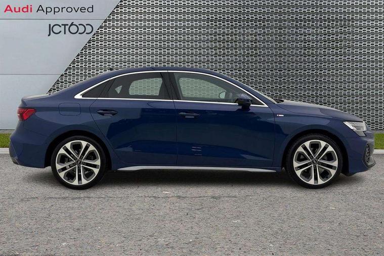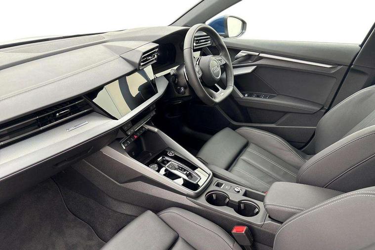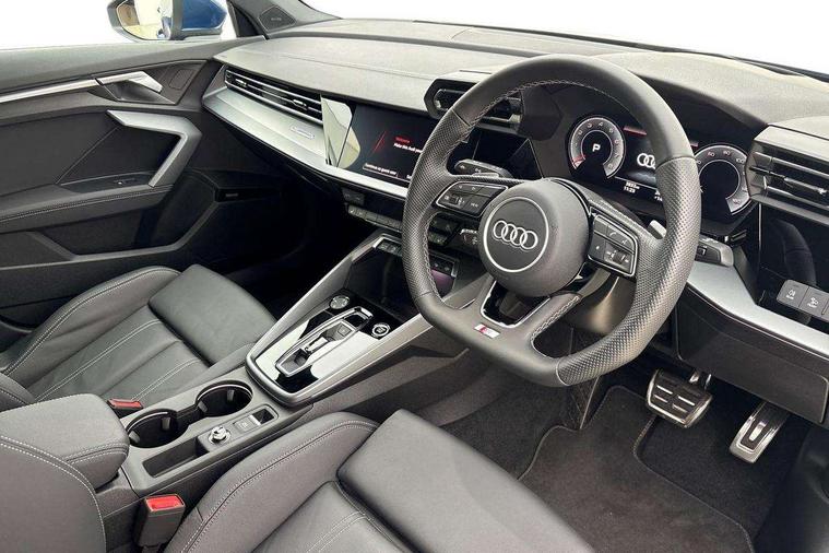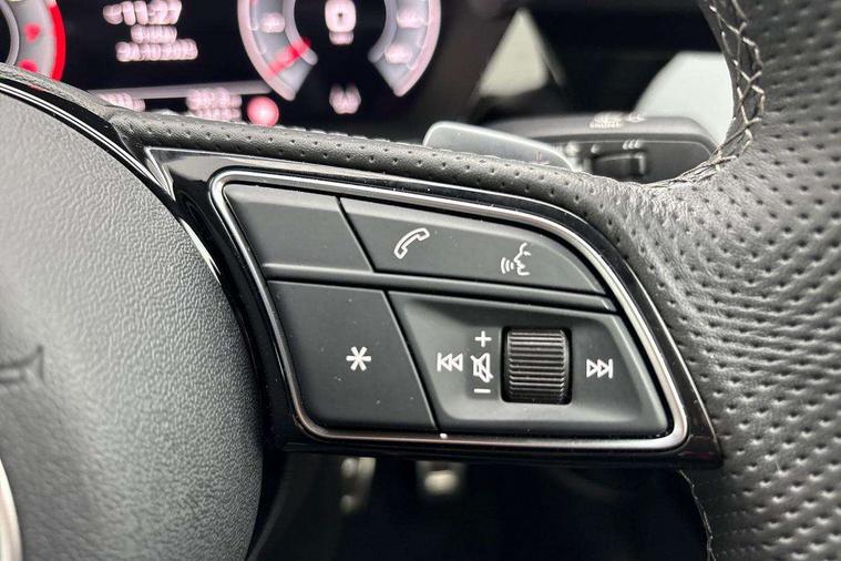 Adjustable speed limiter, Audi drive select, Audi smartphone interface with app store includes wireless Apple carplay, Android auto and Amazon alexa integration, Audi virtual cockpit plus - 12.3" full HD resolution dynamic digital instrument cluster, Automatic start/stop system with recuperation, Bluetooth interface, Camera based traffic sign recognition, Collision avoidance assistant, Cruise control, Distraction and Fatigue warning, e-Call (emergency call), Electromechanical power speed sensitive steering, Emergency assist, Lane departure warning system, MMI Navigation Plus with high resolution 10.1" colour touch screen display, Park Assist with parking system Plus, Service indicator, Trip computer, Voice control system with natural language interaction, Sports suspension, Audi Phonebox light with wireless charging, Audi sound system - 10 loudspeakers including centre loudspeaker and subwoofer, DAB Digital radio, USB ports with charging function in the rear, Acoustic glass windscreen, All weather light, Aluminium window trim, Auto dimming frameless rear view mirror, Automatic dynamic range control, Body colour exterior mirrors, Chrome exhaust tailpipes, Dipped beam, main beam, position light and turning light, Electrically adjustable/heated/folding/auto dimming door mirrors with integrated LED indications + kerb view function for passenger side, Exterior model badging, Front and rear side air inlets in grained matt black with dark liquid chrome frame, Front electric windows, Front radiator grill in high gloss dark chrome, Heat insulating glass windscreen, Illuminated door sills with aluminium inserts at the front with S logo, Intersection light, LED 3rd brake light, LED brake lights, LED daytime running x3, LED headlights with LED rear lights and dynamic rear indicators, LED rear number plate lights, LED reverse light, LED tail lights, Light and rain sensors, Manoeuvring light, Motorway light, Privacy glass - dark tinted rear window, rear door and side windows, Rear boot, Rear diffuser and grill in grained matt black with inlay in dark liquid chrome, Rear electric windows, Rear side wing doors, S line bumpers, Side S line emblems on front wings, Side sill trim in dark liquid chrome, Static Cornering lights, 12V socket and storage compartment in front centre console, 3 seat bench in 2nd row, 3 spoke flat bottomed leather multifunction sport steering wheel with gear shift paddles, 3-zone deluxe automatic air conditioning, 4 way electrically adjustable lumbar support for driver and front passenger, 40/20/40 split folding rear seat bench, Black cloth headlining, Black front and rear floor mats, Front and rear centre armrest in artificial leather with contrasting stitching on armrests and instrument panel, Front and rear headrests, Heated front seats, Height and reach adjustable steering wheel, Manual boot compartment lid, Manually adjustable front seats, Rear centre armrest with cupholder, S badging on the steering wheel, Seat side bolsters, Single front passenger seat, Stainless steel pedals and front footrest in black, Twin leather upholstery with front sports seats S embossed logo, Aluminium interior elements pack - A3, Multi-coloured LED interior lighting package with Multi-coloured contour lighting of instrument panel - A3, 3x3 point rear seat belts, Driver and front passenger airbag with passenger airbag deactivation, Electronic Stabilisation Control (ESC) including ABS, ASR and EDL, First aid kit with warning triangle and 2 safety vests, Front side airbags with head airbags and interaction airbag, Hill hold assist, Pre-sense front with pedestrian and cyclist detection, Seatbelt monitoring, Tyre pressure loss indicator, Anti theft alarm, Anti-theft wheel bolts, Electronically operated child locks, Immobiliser, Remote central locking with safelock, Black dashboard, Inlay in dark aluminium spectrum,