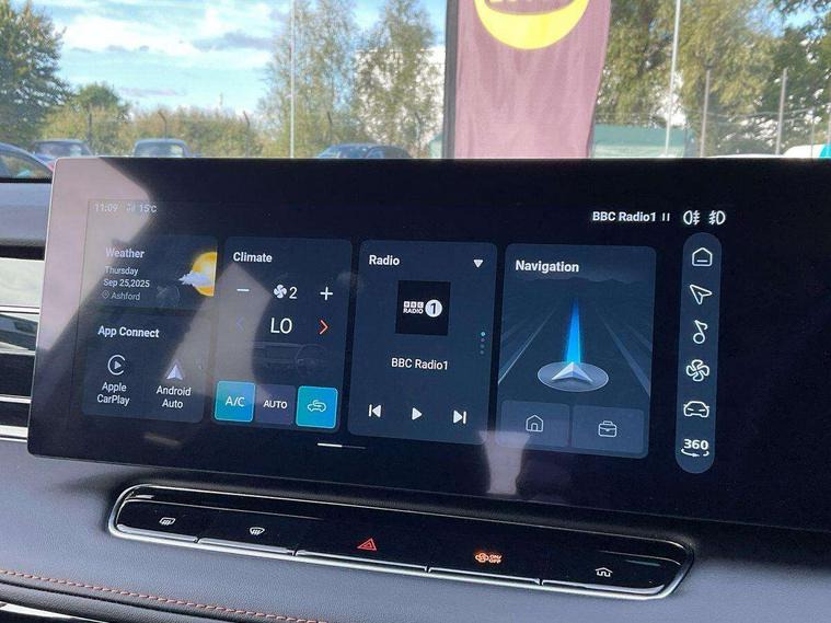 Driver attention alert, 12.3" colour touchscreen, 12.3" Virtual driver information display, 360 degree parking camera, Adaptive cruise control, Android Auto, Apple CarPlay, Blind spot detection, Bluetooth connectivity, Driver memory function, Emergency call service, Forward collision warning, Front parking sensors, Intelligent speed limit assist, iSmart, Lane change assist, Lane keep assist system (LAS) with Lane departure warning system (LDWS), Live services, PAS, Power tailgate, Rear cross traffic alert, Rear parking sensors, Satellite navigation system, Traffic jam assist, Trip computer, Wireless charging, 4 USB ports 2 front and 2 rear, 8 Speaker audio system, DAB audio, Auto dimming rear view mirror, Automatic headlights, Electric adjustable/heated/folding door mirrors with memory, Follow me home headlights, Front and rear aero wiper, Front and rear electric windows with one-touch up/down, Front fog lights, Intelligent high beam, LED 3rd brake light, LED daytime running lights, LED Headlights, LED rear lights, Rain sensing wipers, Rear privacy glass, Rear side wing doors, Silver roof rails, Vehicle to Load, 12V power sockets, 2nd row 60/40 split fold seat, 3 rear headrests, 3 seat bench in 2nd row, 3 stage heated front seats, 4 way electric adjustable passenger seat, 6 way electric adjustable drivers seat + lumbar support, Dual zone automatic air conditioning, Front and rear reading lights, Front centre sliding armrest with storage compartment, Front headrests, Height and reach adjustable steering wheel, ISOFIX restraints on outer rear seats x2, Multi function steering wheel, Single passenger seat, 3x3 point rear seatbelts, ABS/EBD, Active emergency braking with pedestrian/Bicycle detection, Anti rolling protection, Door open warning, Drivers seatbelt reminder, Dual front airbags, Electric parking brake with auto hold function, ESP, Front and rear passenger seat belt reminder, Front centre airbag, Front passenger airbag deactivation switch, Front seat belt height adjuster, Front seatbelts (3-point + pretensioner + load limiter), Front side airbags, Hill descent control, Hill launch assist, Manual rear child locks, Rear outer seatbelt pretensioner and load limiter, Side curtain airbags, Tyre pressure monitoring system, Alarm system and engine immobiliser, Keyless entry and push button start system, Remote central locking, Speed sensing door locks, 19" Blade diamond cut alloy wheels, Tyre repair kit,