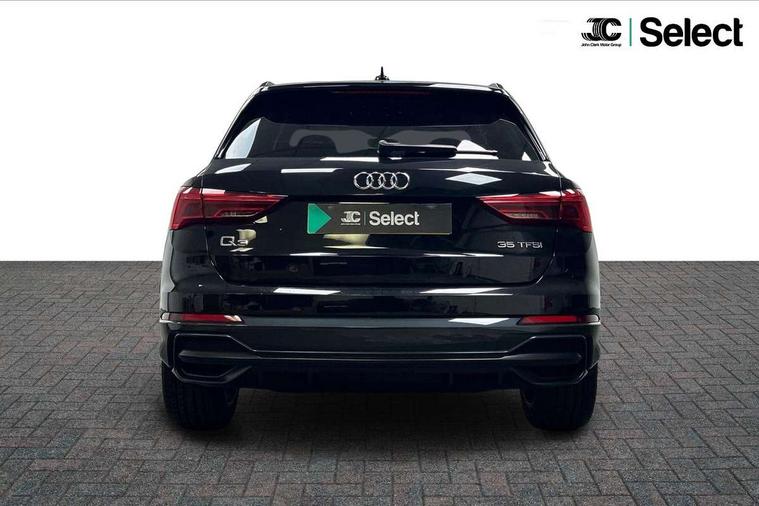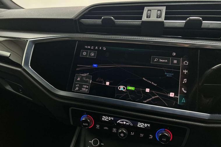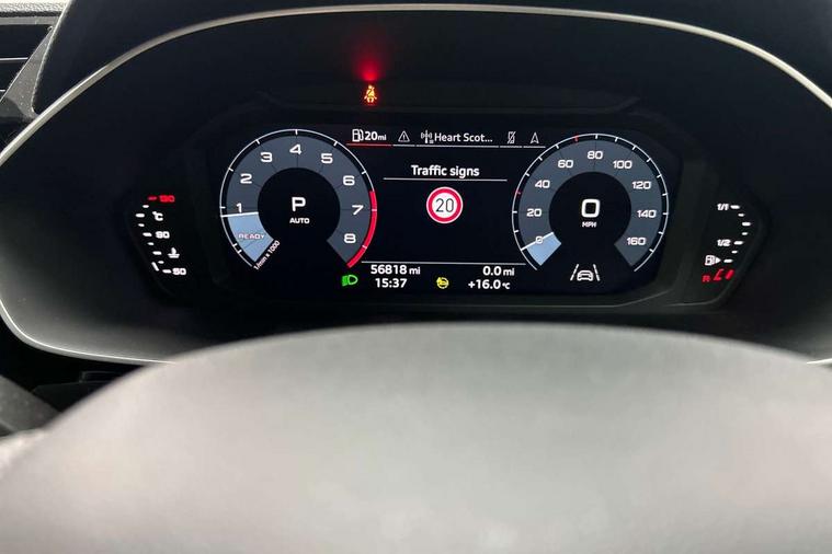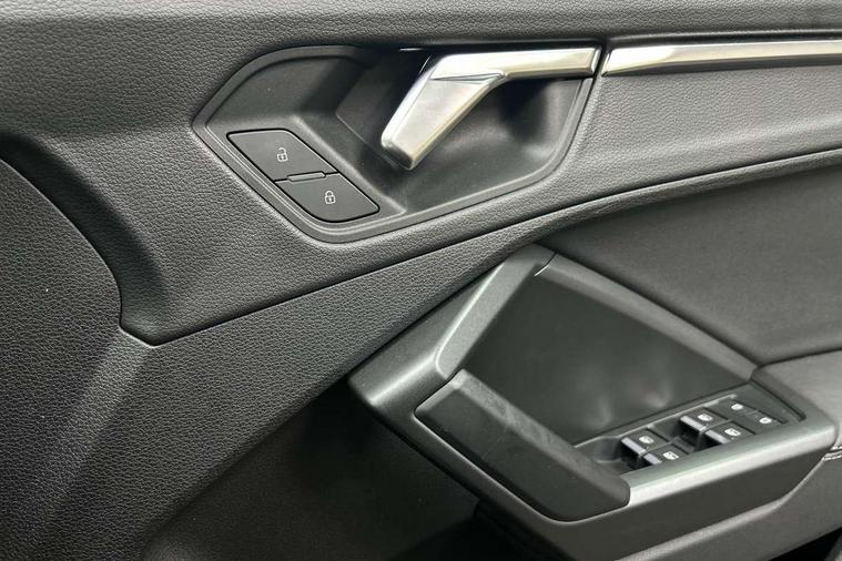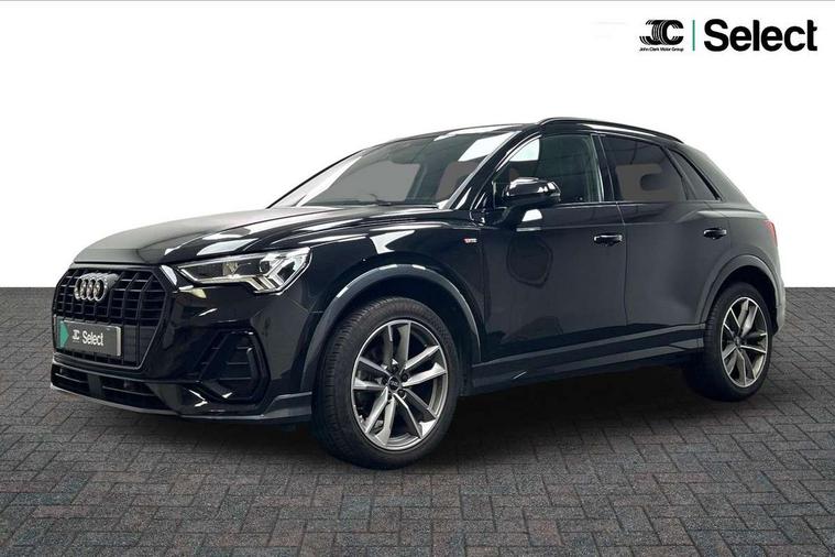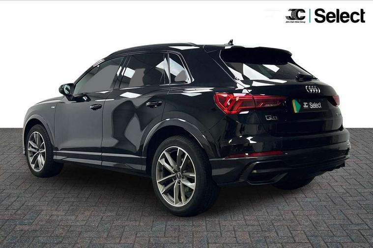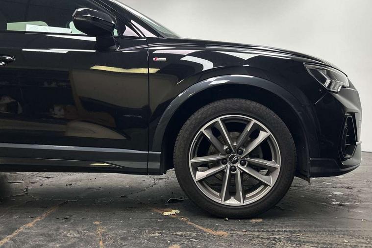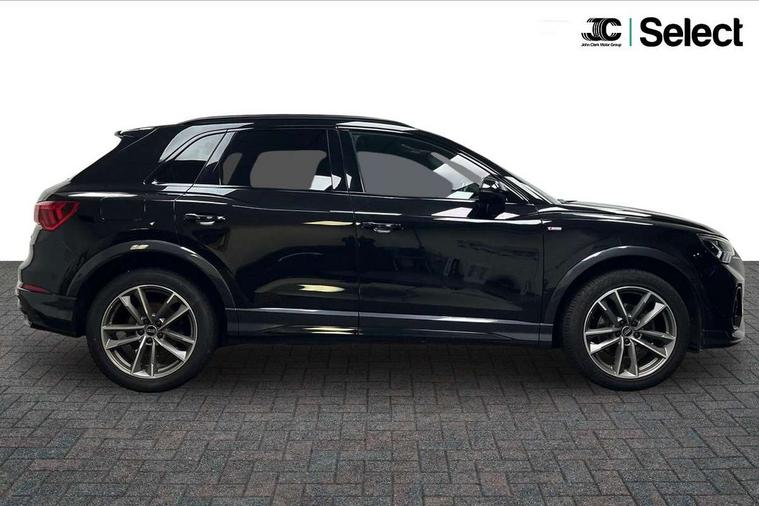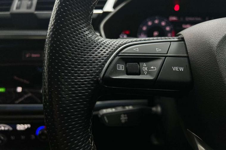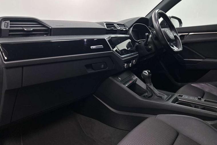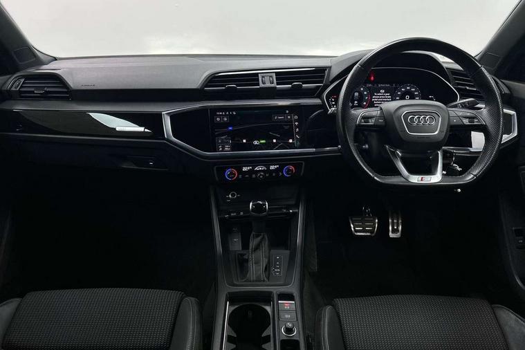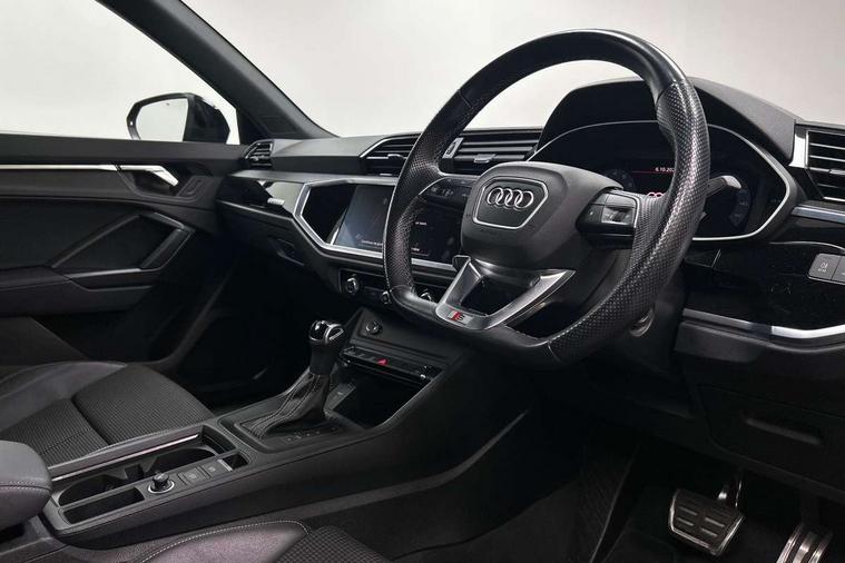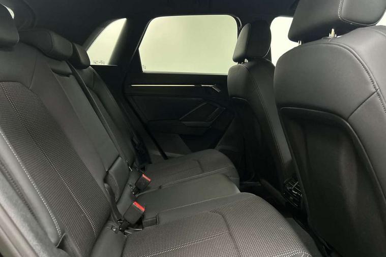 Amazon alexa Integration, Audi connect safety and service (e-call), Audi drive select, Audi lane departure warning, Audi Virtual Cockpit - 10.25" display, Bluetooth interface, Camera based traffic sign recognition, MMI Navigation Plus with high resolution 10.1 inch touchscreen colour display, Power operated tailgate, Progressive steering, Service interval indicator, Smartphone interface includes wireless Apple carplay/Android Auto, Start stop system with recuperation, Voice control system with natural language interaction, 48V Mild hybrid technology, Sports suspension, 2 USB-C ports with charge and data functions, 6 passive loudspeakers, DAB digital radio module, Acoustic windscreen, Auto dimming frameless rear view mirror, Black roof rails, Electrically folding, adjustable and heated door mirrors with integrated LED side indicators and kerb view function for passenger side, Front and rear electric windows, Front fog lights, Grille vertical bars in aluminium silver/Matt, High gloss black finish B and C pillars, LED headlights with LED daytime running lights, LED rear lights, LED third brake light, Privacy glass dark tinted rear and rear-side windows (from B-pillar backwards), Rain and light sensors, Rear diffuser strip in matt titanium black, Rear side wing doors, Rear wiper, S line bumpers in contrasting Manhattan grey, Variable front intermittent wipers, 12V socket in rear centre console, 3 seat bench in 2nd row, 40:20:40 folding with manual adjustment for 60:40 forwards/backwards position and backrest angle, Adjustable rear seat bench/backrest with centre armrest and cupholder, Black cloth headlining, Dual zone electronic climate control, Front and rear black floor mats with contrast stitching in rock grey, Front and rear headrests, Front and rear roof module including reading lights, Front centre armrest, Glove compartment lighting, Height and reach adjustable steering wheel, Illuminated door sill trims with S logo, ISOFIX child seat mounting for front passenger with airbag deactivation and outer rear seat including top tether attachment point for outer rear seats, Luggage compartment light, Manual front seats with height adjustment, Perforated leather gearknob, Single front passenger seat, Stainless steel luggage compartment sill finisher, Stainless steel pedals, Black styling pack - Q3, Non smoking pack - Q3, 3x3 point rear seatbelts, 6 airbags - Driver, front passenger, curtain and side windows, Audi pre-sense front with pedestrain and cyclist recognition, Electromechanical parking brake, Electronic stabilisation control including ABS, ASR and EDL, Front seatbelt reminder, Hill descent control, Hill hold assist, Manual child lock in rear doors, Pre sense basic, Seatbelt monitoring, Tyre pressure warning, Warning triangle and first aid kit, Anti theft alarm, Anti theft wheel bolts, Immobiliser, Remote central locking, Detail dashboard around MMI touch colour display in glass look, black with surround in aluminium look, Leatherette door armrest, Piano black inlay, Tool kit, Tyre repair kit,