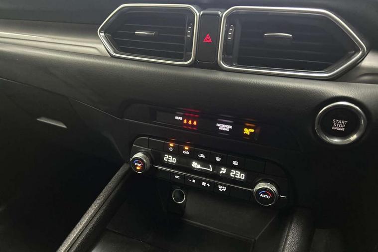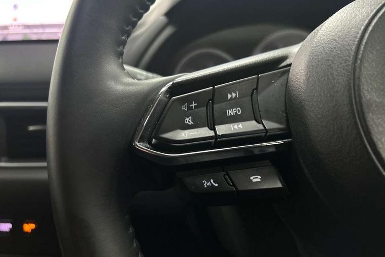 10.25" display with Mazda Connect infotainment, Advanced blind spot monitoring, Bluetooth connectivity with voice control, Collision prevention assist, Connected services, Cruising Traffic Support, Drive mode selector, Electric power steering, Emergency stop signalling system, Engine start/stop button, Forward collision warning, Front and rear parking sensors, High meter TFT display, Integrated navigation system, Intelligent speed assist, Lane departure warning system, Lane keep assist, Radar cruise control with Stop and Go, Rear cross traffic alert, Service indicator, Trip computer, Wireless apple car play/android Auto, Cylinder Deactivation, i-stop, 6 speakers, AM/FM radio, Bluetooth audio streaming, DAB Digital radio, Multimedia Commander including separate volume dial, Steering wheel mounted audio controls, Adaptive front lighting system, Auto dimming rear view mirror, Automatic headlights, Body colour door mirrors, Body colour roof spoiler, Body coloured front and rear black lower bumper mouldings, Cloth with gunmetal inlay door trim panel, Coming/leaving home lighting function, Door mirror integrated indicators, Dual chrome tailpipes, Electric front/rear windows with one touch auto up/down, Front grille in gloss black finish with chrome signature wing, Gunmetal inlay dashboard panel, High beam assist, Intermittent rear wash/wipe, LED auto levelling, LED daytime running lights, LED front fog lights, LED Headlights, LED third brake light, Power folding and heated door mirrors, Privacy glass (rear side windows only), Rain sensing front wipers, Rear side wing doors, Satin black B and C pillars, Satin black side mouldings, Scuff plates, Shark fin antenna, Signature LED rear combination lights, Variable intermittent front wash/wipe, 12v electrical power outlet, 3 seat bench in 2nd row, 40:20:40 Karakuri fold-flat seat system, Cargo room flat floor board with waterproof undertray, Driver seat lumbar adjustment, Driver seat manual slide, recline and height adjust, Driver, Front passenger and two rear grab handles with coat hooks, Driver/passenger front seatback pockets, Driver/passenger sunvisors + illuminated vanity mirrors (drivers with ticket holder), Dual zone climate control, Folding centre armrest with 2 cup holders, Front and rear door pockets, Front centre storage with two cupholders, Front passenger seat manual slide, recline and height adjust, Height adjustable passenger seat, Humidity sensor, Illuminated glovebox, Interior dome light with integral spotlight, ISOFIX child seat anchorage points attached on outer rear seats, Karakuri tonneau cover, Leather wrapped steering wheel and gear knob, Light roof lining, Luggage compartment LED lighting, Luggage compartment power outlet, Premium cloth upholstery, Rear air vents, Rear headrests, Rear seat recline, Roof mounted sunglasses holder, Single front passenger seat, Three height adjustable head restraints, Tilt/height adjustable steering wheel, USB Connectivity (2x front Type-C, 2x rear Type-B), White interior LED illumination lighting, 3 point front seatbelts with pre-tensioners, 3 rear 3 point seatbelts, ABS, Advanced Smart City Brake Support - SCBS, Child locks on rear doors, Driver and front passenger side airbags, DSTC-Dynamic Stability and Traction Control, Dual front airbags, Electronic brake force distribution, Electronic parking brake with auto hold, ESP, Front and rear curtain airbags, Front passenger airbag deactivation, G-Vectoring control, Hill hold assist, Seatbelt reminder front and rear, Single stage passenger airbags, Smart brake support with forward obstruction warning, Tyre pressure monitoring system, Automatic door locking when moving off, Deadlock, Immobiliser, Power door locks, Remote central locking, Thatcham Cat.1 alarm, 17" Silver alloy wheels, Tyre repair kit,