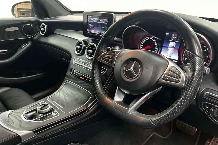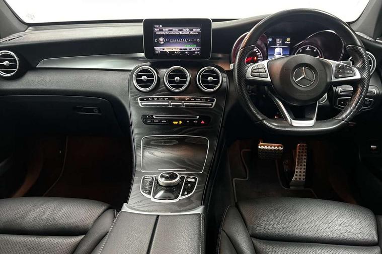 7" colour screen, Active park assist with parktronic system, Attention assist, Bluetooth interface for hands free telephone, Collision prevention assist plus, Crosswind Assist, DYNAMIC SELECT with a choice of driving modes (ECO, Comfort, Sport, Sport+ and Individual), Garmin Map Pilot navigation system with SD card, touchpad and voice control, Instrument cluster with 5.5-inch TFT multi-function display, Multi function trip computer, Outside temperature gauge, Power opening/closing tailgate, Remote boot release, Service indicator (ASSYST), Speed sensitive steering, Diesel particulate filter, 5 speakers, DAB Digital radio, Frontbass loudspeakers, Mercedes Audio 20 radio/single CD + telephone keypad, USB connection, Adaptive brake lights, Aerodynamic rear spoiler, AMG bodystyling, Automatic headlights, Body coloured bumpers, Chrome exterior trim, Electric windows one touch open/close, Electrically adjustable and heated door mirrors, Exhaust tailpipe finisher, Heated windscreen washers, LED daytime running lights, LED rear lamps, Privacy glass (to rear of B post), Rain sensor windscreen wipers, Range adjustable headlights, Rear wiper, Tinted glass all round, 2 cupholders in front centre console, 2 way rear head restraints, 3 spoke flat bottom AMG steering wheel in nappa leather, 4 way adjustable front head restraints, 4 way electric lumbar support for driver and front passenger, 40:20:40 split folding rear seats, AMG floor mats, AMG sports seats, Auto Mercedes-Benz child seat recognition sensor, Automatic climate control, Black roof lining, Dividing net - rear, Electric front seat height adjustment, Front armrest with storage box, Front door sills with Mercedes Benz lettering, Gearshift paddles, Heated front seats, Height/reach adjustable steering column, Illuminated glovebox, Multifunction steering wheel, Rear top tether child seat ISOFIX attachment, Sports pedals with stainless steel surfaces and rubber studs, Sunvisors with illuminated vanity mirrors, Easy-pack load compartment cover, Interior lighting pack - GLC, Mirror pack - GLC, Storage pack - GLC, 3 rear 3 point seatbelts, ABS with Brake Assist, Active bonnet, Adaptive brake system, Brake calipers with Mercedes-Benz lettering + perforated brake discs, Child proof door locks, Drivers knee airbag, Dual stage driver/passenger airbags, Electronic parking brake, ESP with ASR, Front and rear seatbelt reminder, Front passenger seat occupancy sensor, Front side airbags, Hill hold function, Tyre pressure monitoring system, Warning triangle and first aid kit, Window airbags, Alarm system/interior protection/immobiliser, Automatic door locking, Keyless Start, Remote central locking, All season tyres, Tyre inflation kit,