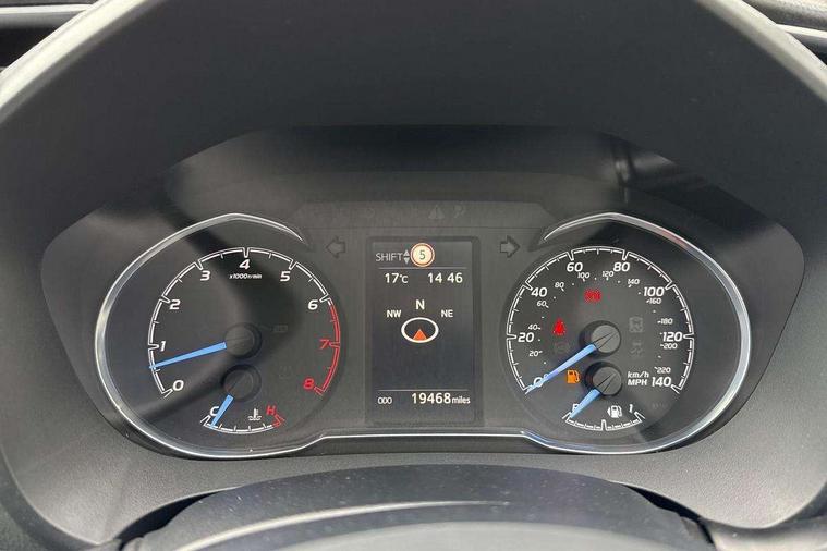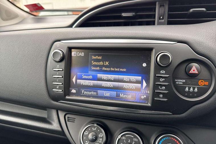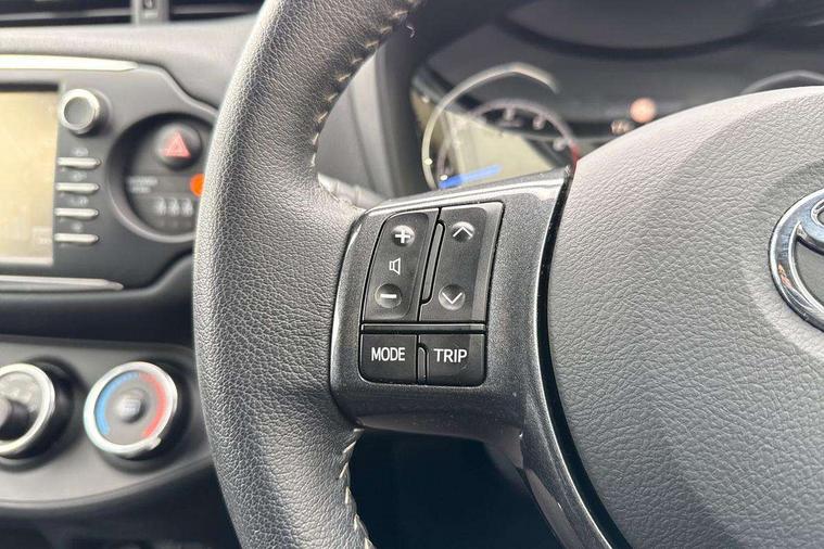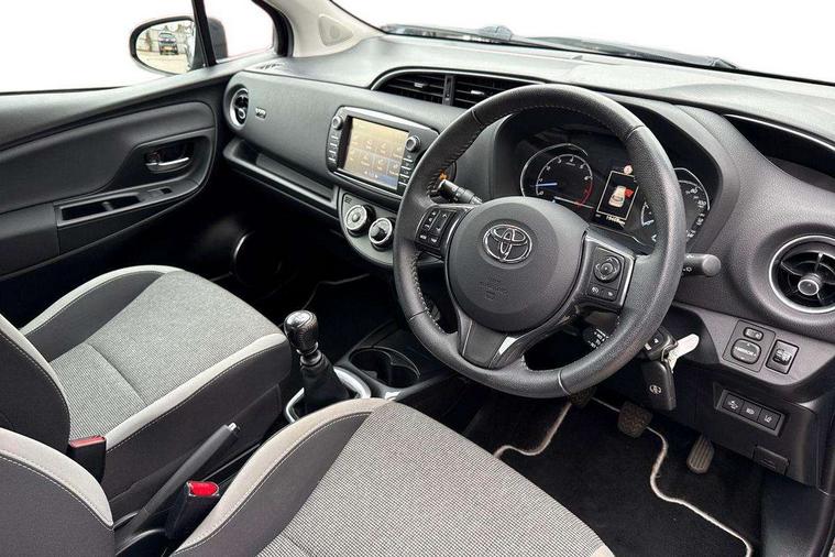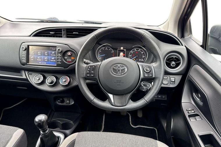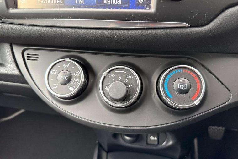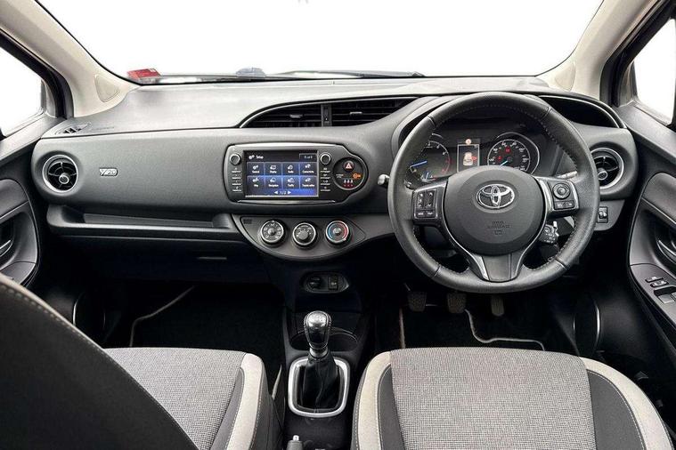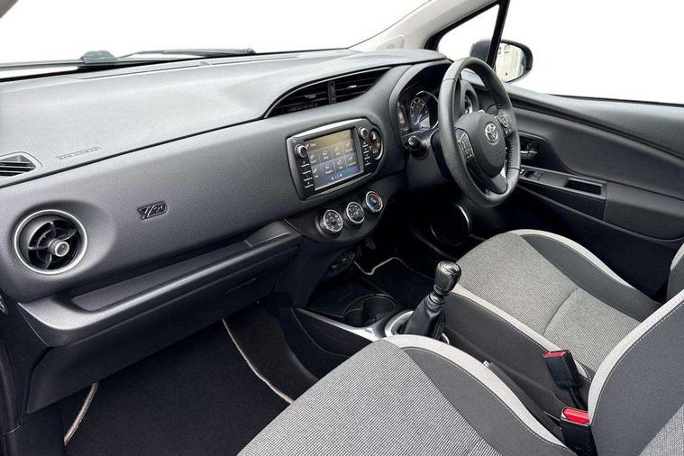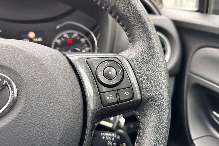 4.2" coloured LED TFT multi information display, Analogue speedometer, Analogue tachometer, Auto speed limiter, Bluetooth connectivity, Cruise control, External temperature gauge, Fuel indicator with low level warning, Key reminder warning, Lights on warning, Multi information display switches on steering wheel, Power Steering, Reversing camera, Trip computer, 6 speakers, Auxiliary input socket, Steering wheel mounted audio/telephone switches, Toyota Touch 2 with DAB, USB connection, Auto up and down function on drivers window, Automatic wipers, Bi-tone grey roof, Black lower front grille, Body colour bumpers, Body colour door handles, C pillar decal, Daytime running lights, Electric adjustable heated door mirrors, Electric front windows, Follow me home headlights, Front fog lights, Grey contrasting colour door mirrors, Grey door moulding, Grey door side sills, Grey front grille and fogs, Headlight cut-off reminder, LED High mounted stop lamp, Manual dimming rear view mirror, Privacy glass, Projector headlights, Rain sensitive windscreen wipers, Rear combination lights bulb type, Rear window defogger, Rear wiper, Turning signal integrated indicators in door mirrors, Y20 Badging, 12v power outlet - front, 3 adjustable rear headrests, 3 spoke leather steering wheel, 60/40 split folding rear seat, Active headrests, Boot light, Data Communication Module (DCM) connected services, Driver and front passenger personal light, Driver and front passenger Whiplash Injury Lessening seats, Fabric upholstery, Front and rear cup holders, Front map reading lights, Front seats with lumbar support, Glovebox, Height adjustable driver's seat, Height adjustable front head restraints, Illuminated entry system, Isofix seat fixing, Leather gearshift, Manual air conditioning, Map pockets on the backs of the front seats, Pollen filter, Removable rear parcel shelf, Sliding front seats, Soft touch inner door garnish, Tilt/telescopic steering column, Y20 badge interior and in seat trim, 3 point seatbelts on all rear seats, ABS+EBD+Brake assist, Collision mitigation braking system, Emergency brake light system (EBS), Front passenger airbag on/off switch, Front seatbelt reminder, Height adjustable front seatbelts with pre-tensioners and load limiters, Hill start assist control (HAC), Rear child proof door locks, Rear seat belt reminder, Road sign information display, Seatbelt warning lamp and buzzer, Supplemental restraint system (SRS) airbags - 7 airbags including driver, front passenger, curtain, side and knee airbags, Toyota safety sense including Road sign assist, Pre collision system, auto high beam and lane departure alert), Tyre pressure warning system, Vehicle stability control VSC + traction control, Engine immobiliser, Power and remote door locking, Interior satin accents, Soft touch instrument panel, 16" 10 spoke grey machined alloy wheels, Space saver spare wheel,
