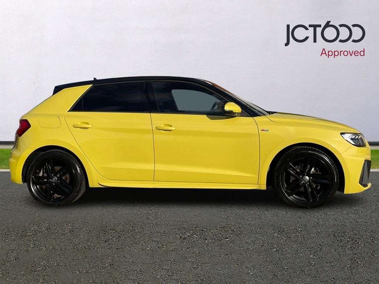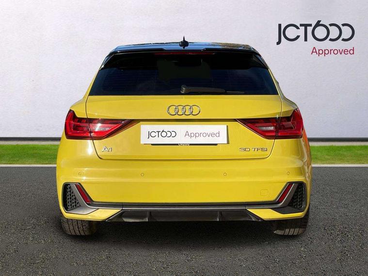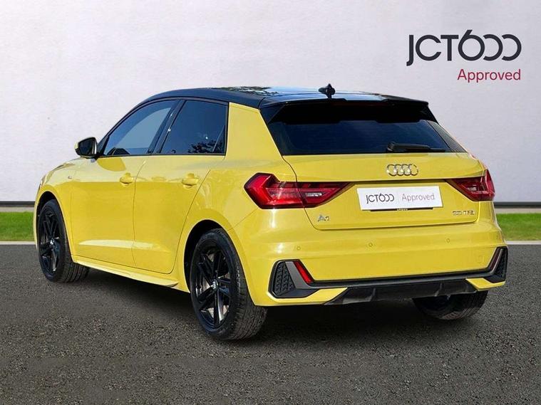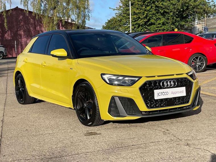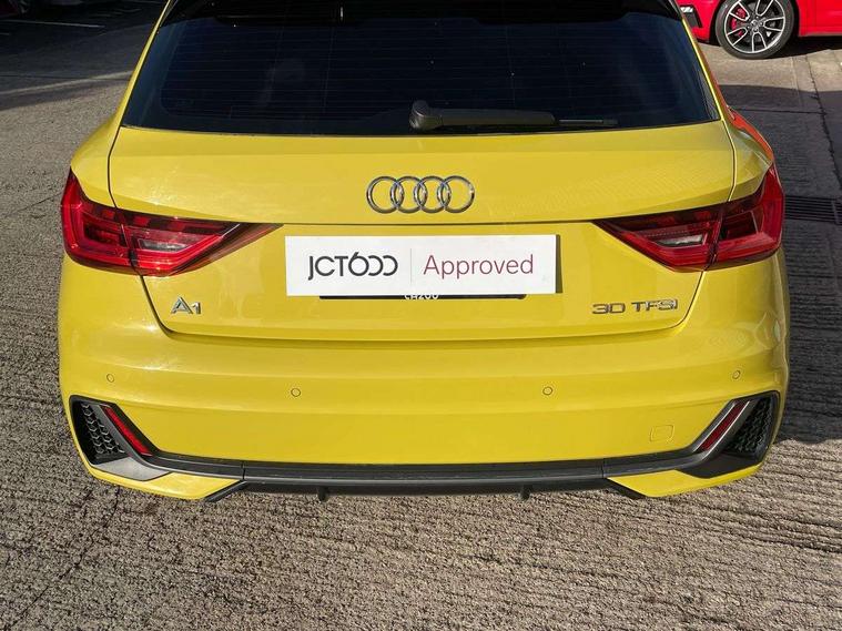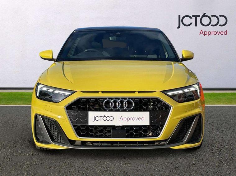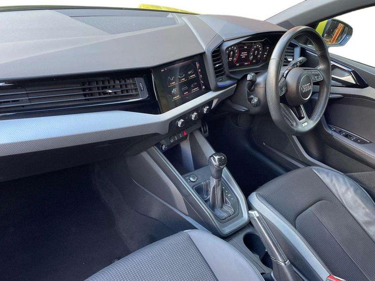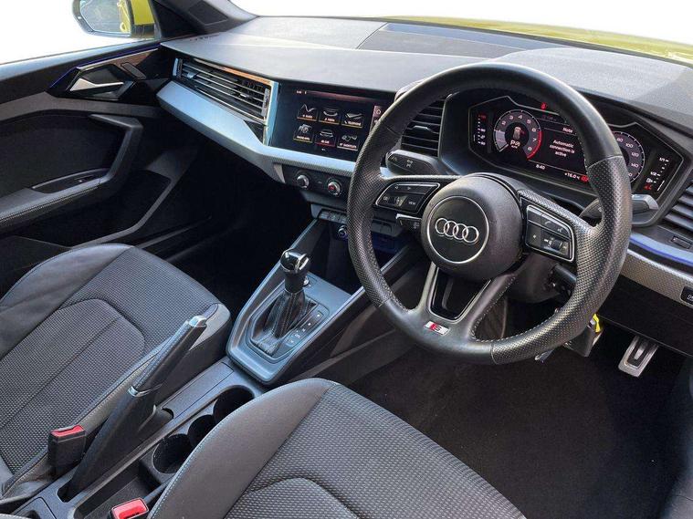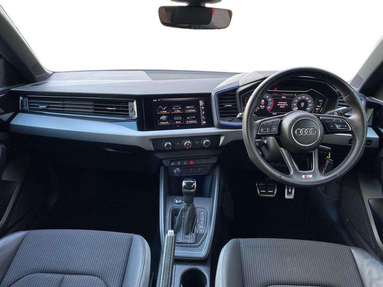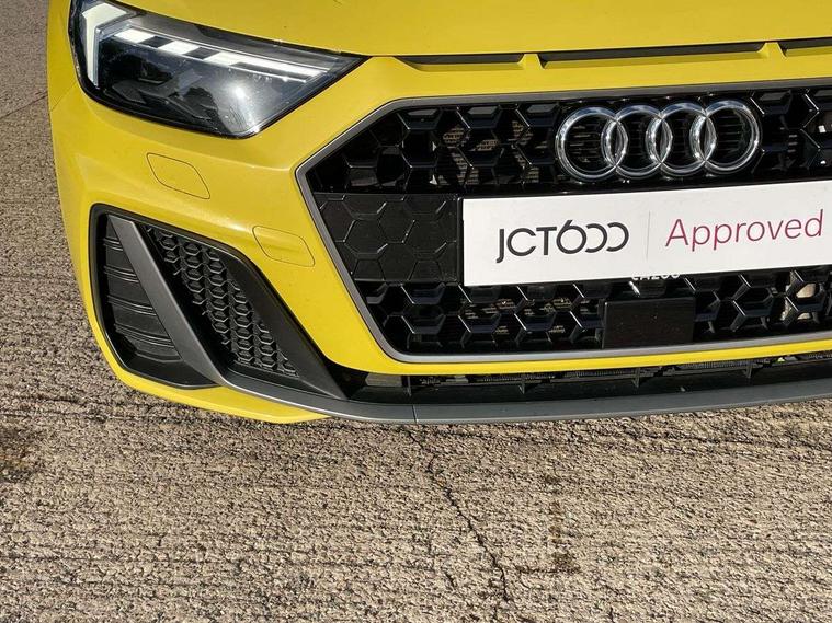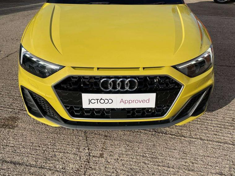 10.25" Digital instrument cluster display screen, Audi connect safety emergency and service including E-call, Audi drive select, Audi smartphone interface, Automatic start/stop system, Bluetooth interface, Driver's information system, Electromechanical power steering, Lane departure warning system, Service interval indicator, Speed limiter, Voice control system, Washer fluid level indicator, Sports suspension, 1 x SDXC card reader, 1 x USB type C and 1 USB type A charging points, Audi music interface, Bluetooth audio streaming, DAB Digital radio, MMI radio plus with 8.8" colour MMI display screen and MMI touch, Auto dimming rear view mirror, Body colour side sill mouldings, Body coloured bumpers, Body coloured door mirrors, Door sills with aluminium inlays and S Line logo, Electric front and rear windows, Front side air inlets in grained matt black and C frame in titanium black, Heat insulating glass windscreen and side windows, Heated rear windscreen, LED headlights with LED rear lights + dynamic rear indicators, Matt aluminium silver tailpipe trim, Matt black radiator grille frame, Matt platinum grey in front spoiler clip and rear diffuser clip, Rain and light sensors, Rear fog lights, Rear wiper, S line badges on front wings, S line exterior bumpers, S line roof spoiler, Side air inlet frames titanium black, Side front spoiler lips in grained matt black, 12V socket in centre console with two cup holders, 3 rear seats, Black cloth headlining, Driver and passenger seat with manual height adjust with forward and backwards adjustment, Front and rear black floor mats with contrast stitching in fine silver, Front head restraints, Height and reach adjustable steering wheel, ISOFIX child seat mounting in front passenger and rear outer seats, Leather gear knob with aluminium trim, Leatherette handbrake grip, Luggage compartment light with front and rear reading lights, Lumbar adjustment for front seats, Rear head restraints, Split folding rear seats, Stainless steel pedals, 3x3 point rear seatbelts, Audi pre-sense front with pedestrain and cyclist recognition, Brake assist function, Driver and front passenger airbag with front side and head airbags, Electronic Stability Control including ABS, EBD, ASR and EDL, Front and rear seatbelt reminder, Front passenger airbag deactivation switch, Hill hold assist, Seatbelt height adjustment for front seats, Seatbelt monitoring, Tyre pressure warning light, Warning triangle and first aid kit, Anti theft alarm, Anti theft wheel bolts and loose wheel warning, Immobiliser, Remote central locking with 2 remote folding keys, Aluminium trim for control switches, air vents and digital instrument cluster, Silver grey inlays polygon structure in diamond paint finish, Structured grey accent areas including air vents, door handle recesses and centre console in quartz paint finish,