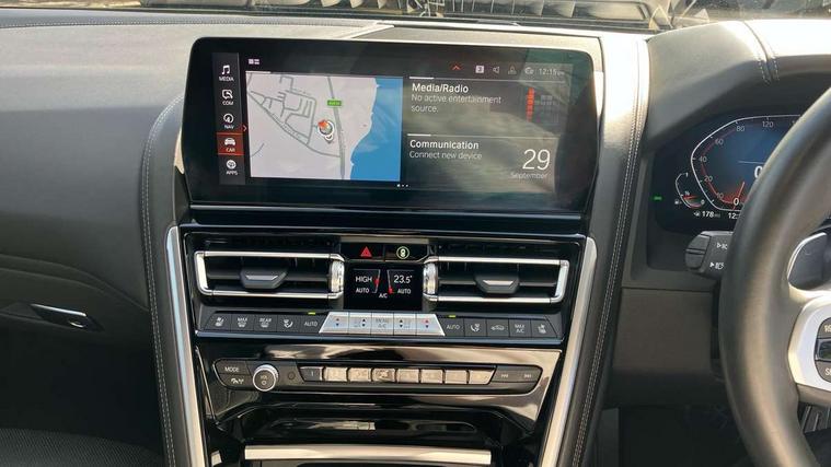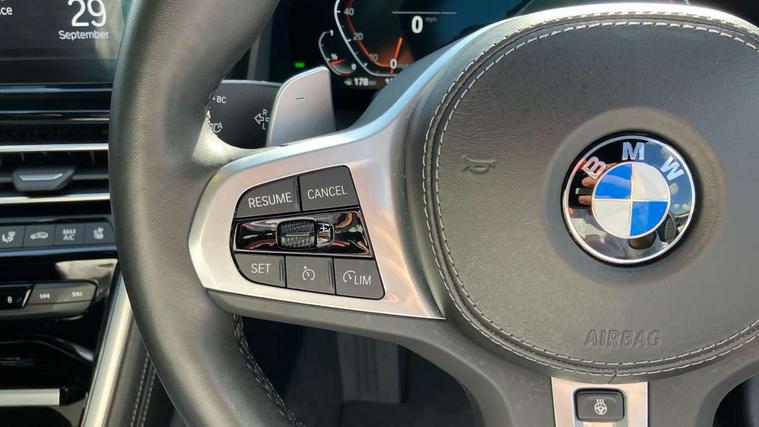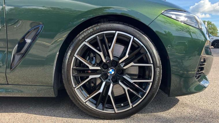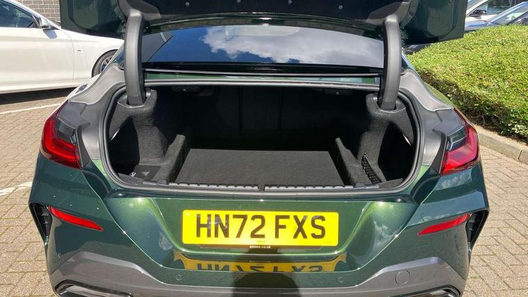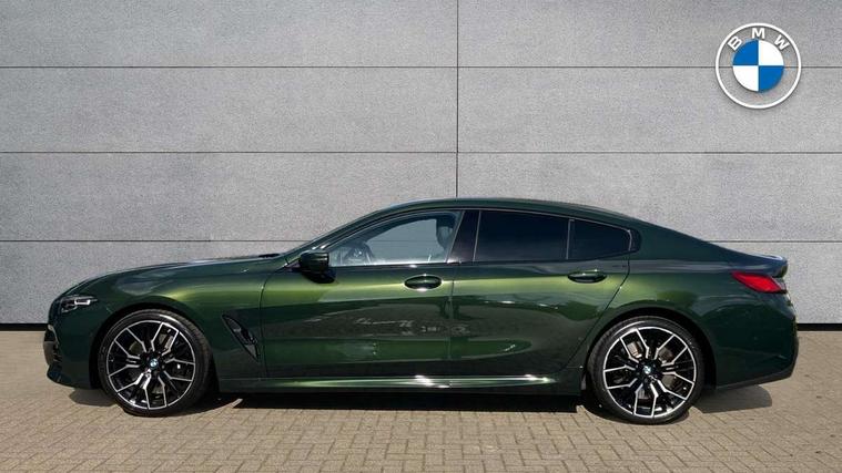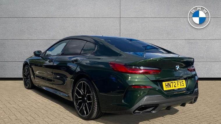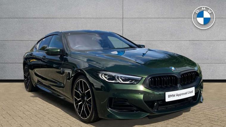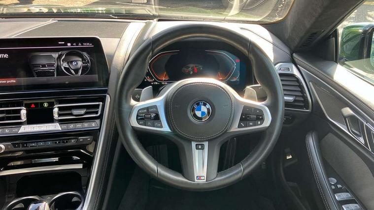Automatic tailgate operation, remote opening with key, closing by tailgate button or remote control including tailgate in LED technology, Bluetooth hands free facility with USB audio interface, voice control and enhanced bluetooth + Wireless charging, BMW ConnectedDrive online services, BMW legal emergency call, BMW Teleservices, Brake pad wear indicator, Check control system, Condition based service, Drive experience control with Sport, Comfort, Eco Pro and Adaptive modes, Electric bootlid, Head up Display, iDrive controller with shortcut buttons, Instrument and upper door panel in walknappa leather, Integrated owners handbook, Light on warning, Oil sensor for level and grade, On board computer, Outside temperature display, Run flat indicator, Service interval indicator, Servotronic system, Speed limiter, Wi-Fi hotspot, Adaptive M suspension, Double wishbone front axle, Dynamic Damper Control, Eight speed sport automatic transmission, M Sport differential, Petrol Particulate Filter, Sport exhaust system, DAB Digital radio, Favourite buttons, Air breather inlay in pearl chrome, frame in black high gloss, Automatic windscreen wipers and automatic headlight, Carbon core, Climate comfort windscreen, Daytime driving lights front and rear active, Dynamic brake lights, Exterior mirrors - Floating design mirror, electric adjust/heated/folding, aspherical, Follow me home headlight function, Frameless interior mirror, Front and rear bumper system with replaceable deformation elements, Front electric windows, Front ornamental grille with kidney grille bars, Heated rear window, glass, Heated windscreen washer jets, High beam assistant, Illuminated door handles, LED rear lights, M emblem on front side panel in light chrome, Model logo on right tailgate, Radiator grille frame in pearl chrome, Radiator grille struts in aluminium matt, Rain sensor and automatic driving lights control, Rear boot, Rear side wing doors, sDrive designation on left tailgate, Sun protection glass, Thermally insulated windscreen, Third LED technology brake light in rear window, Welcome lights in interior and door handle area, Window frame and mirror base in black high gloss, 2 cup holders in front, 2 rear head restraints, 2 X front 12v power sockets, 3 spoke M sport leather multifunction steering wheel with shift paddle, 4 zone control automatic air conditioning, 5 seats, 50/50 split folding rear seat, Ambient light with dynamic interior light, BMW ID, Front and rear seat heating, Front centre armrest with light, 12V socket and USB and storage compartment, Front door pockets, Front entry lights doors, Front reading lights, Front sun visors with ticket holder and illuminated mirror, Interior lighting - Interior light front centre above interior mirror, luggage compartment light, automatic interior light system soft on/soft off, Lashing eyelets, Lockable glove compartment with light, Microfilter and active carbon filter, Steering column with adjustable height and length and activation via control on the steering column, Through loading function, BMW Live cockpit professional pack - 8 Series, Connected professional pack - 8 Series, Exterior items pack - 8 Series, M sport exterior styling aerodynamics pack - 8 Series, 18" M Sport braking system with blue painted brake calipers, 3x3 point rear seatbelts, ABS/EBD, Active protection, Airbags - Driver and front passenger airbag with seat occupancy detection, knee, side and front passenger seat airbag deactivation, Brake discs, compound structure, Child locks on rear doors, Cornering brake control (CBC), Crash sensor activating central locking release, hazard warning lights, fuel cut off, interior lighting, safety battery terminal clamp and airbags, DSC - Dynamic Stability Control, Dynamic brake control, Dynamic Traction Control - DTC, Electromechanical parking brake with automatic drive away release and auto hold function, Front three point with pyrotechnical belt latch tensioner seat belts, belt force limiter and belt stopper, Head airbags for 1st and 2nd seat row, Hill start assist, Integrated brake system, ISOFIX child seat mounting for the two outer rear seats, Rear three point with pyrotechnical belt latch tensioner seat belts and belt force limiter, Side impact protection, Tyre pressure monitoring system (TPMS), Warning triangle and first aid kit, Alarm system (Thatcham 1) with electronic engine immobiliser, Centre lock switch, Closing system with central locking, Comfort access system, Keyless entry with start/stop button, Locking wheel bolts, Vehicle key with exclusive M designation,