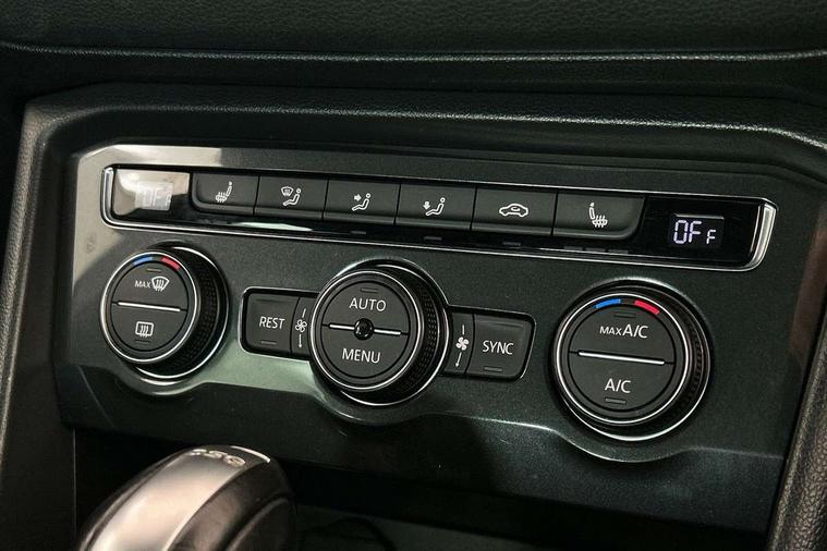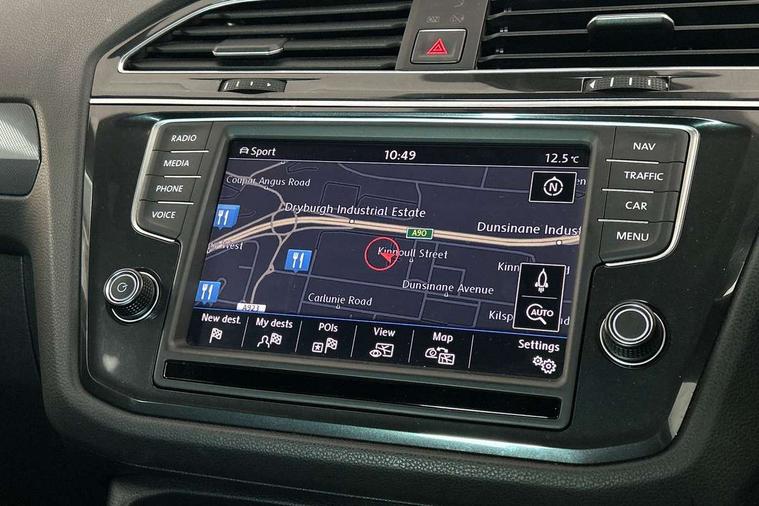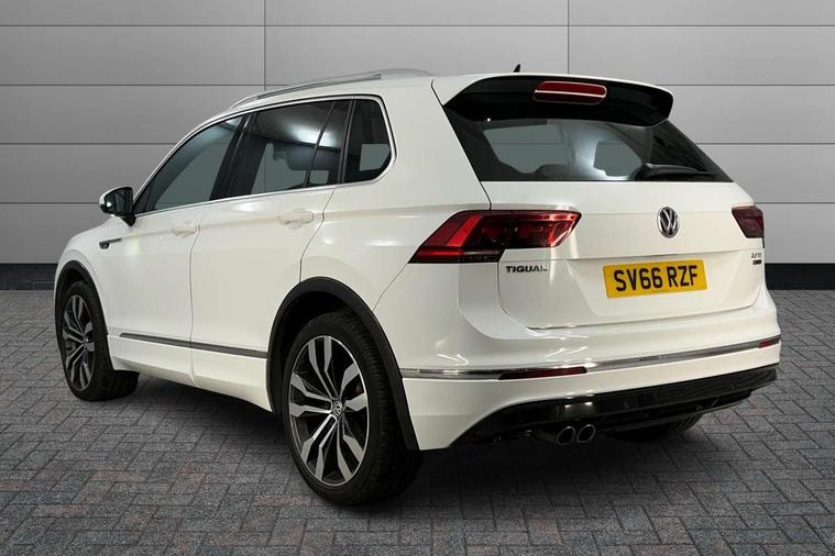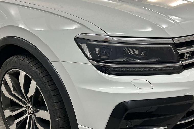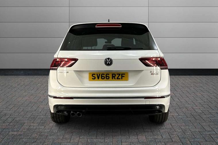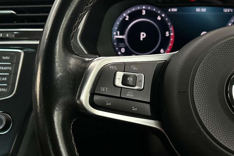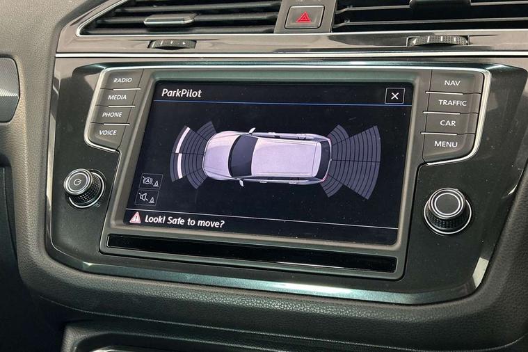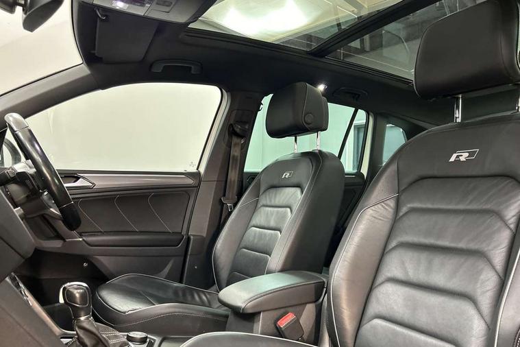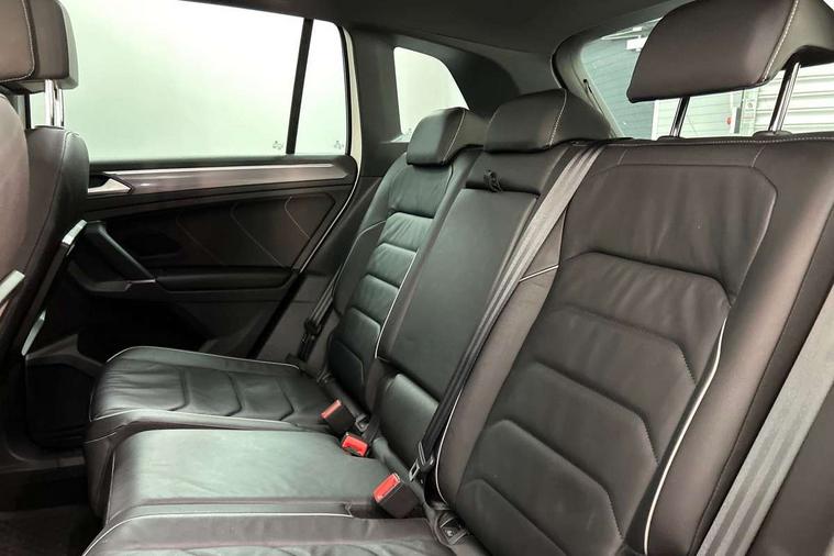 App-Connect, Active information display, Adaptive cruise control, Bluetooth phone integration system, Instrument cluster, Lane assist, Low washer fluid warning light, Outside temperature display, Service interval indicator, Warning lights, Diesel particulate filter, Sports suspension, Aux-in socket, DAB Digital radio, SD card slot, USB connection, Auto dimming interior mirror, Body colour door handles, Body colour door mirrors, Body colour rear spoiler, Body coloured bumpers, Chrome side window surrounds, Chrome trimmed radiator grille, Coming/leaving home lighting function, Dual chrome exhaust, Dusk sensor + auto driving lights, Electric folding door mirrors, Electric heated + adjustable door mirrors, Electric panoramic sunroof with sunblind, Front and rear electric windows, LED headlights with dynamic light assist daytime running lights and cornering front fog lights, Piano black rear diffuser, R Line body kit, Rain sensor windscreen wipers, Silver roof rails, Silver under body guard, Tinted windows (B pillar backwards), Twin trapezoid chrome exhaust pipes, 14 way electric adjustable front seats with drivers memory and massage function, 3 rear headrests, 3 zone climate control, 4 load lashing points, 40:20:40 split folding rear seats, Bag hook in luggage compartment, Black headlining, Driver + front passenger lumbar support, Front + rear carpet mats, Front centre armrest with 12v socket, Front centre armrest with storage + rear 2 air vents + cupholders, Front seatback folding tables, Height adjustable front seats, Height/reach adjust steering wheel, Illuminated driver/passenger vanity mirrors, Illuminated scuff plates, Interior light with delay, Isofix Preparation 2 Rear child seats, Leather gear knob, Leather multifunction steering wheel with paddle shift, Lockable cooled glovebox, Luggage compartment lighting, Map pockets on front seats, Rear cupholders, Removable luggage cover, Sliding/reclining rear seats, Stainless steel pedals, Storage compartment in driver's door, Storage compartment in passenger's door, Storage drawers under front seats, Storage tray on dashboard, Sunglasses storage, Variable boot floor, Ambient lighting pack - Tiguan, 3 rear 3 point seatbelts, ABS+EBD+Brake assist, Active bonnet, Active pedestrian safety system, Curtain airbags, Driver/Front Passenger airbags, Driver/Passenger whiplash optimised head restraints, Drivers knee airbag, Electronic parking brake with auto hold, ESP with EDL + ASR, First aid kit, Front assist including city emergency braking, Front side airbags, Head airbag system, Height adjustable front 3 point seatbelts + pretensioners, Hill hold control, Passenger airbag deactivate switch, Passenger knee airbag, Pre crash system, Rear side airbags, Seatbelt warning lamp and buzzer, Warning triangle, Alarm with interior protection, Electronic engine immobiliser, Chrome door trim inserts, Piano black interior trim, 20" Suzuka alloy wheels + anti theft wheel bolts, Steel space saver spare wheel,