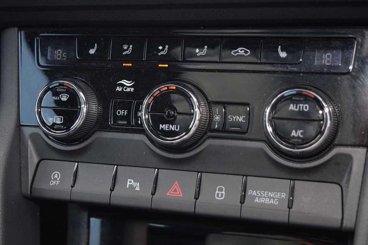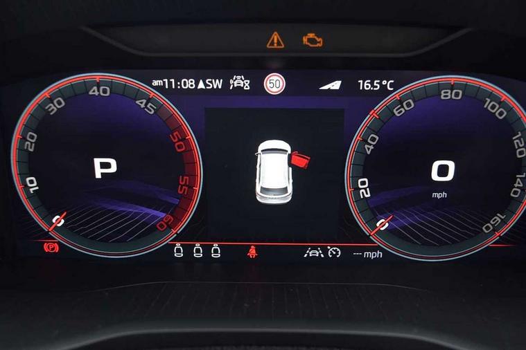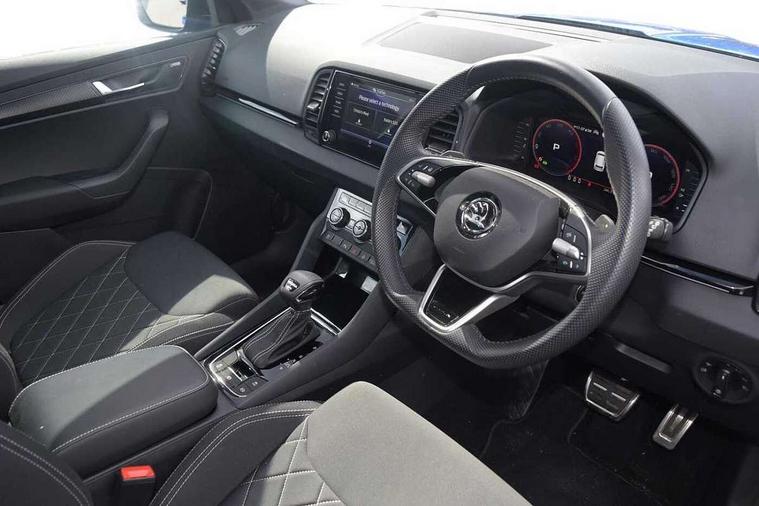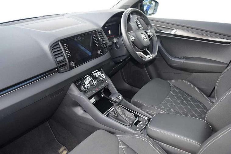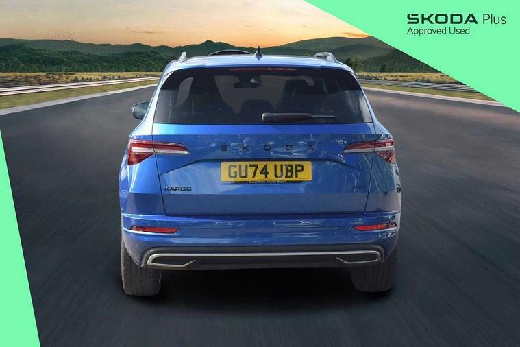 8" Digital display, Advanced driver attention and drowsiness monitor, Emergency services call system, Outside temperature gauge, Sensor for driver assistance systems, Service interval indicator, SmartLink wireless for Apple and wired for Android, Start/stop system with regenerative braking, USB C Port x 2 in front centre console, Virtual Cockpit - 10.25" digital display, Virtual pedal with electrically operated boot door, Wireless smartphone charging, Diesel particulate filter, DAB radio with Bluetooth, USB connection, Acoustic glass, Aero front windscreen wipers with intermittent function, Auto dimming rear view mirror with light and rain sensors, Black door mirrors, Black electric window control buttons, Black radiator grille, Black roof rails, Body colour door handles, Electric front and rear windows with child proof lock, Front door steps with SportLine logo, Heated rear windscreen, LED daytime running lights, LED rear lights with high functionality welcome effect and dynamic indicators, Light assistant (coming/leaving home/tunnel light), Panoramic sliding sunroof, Plastic scuff plates in door apertures, Privacy glass, Protective door side sills in body colour, Rear diffuser, Rear side wing doors, Rear spoiler, Rear window wiper with washer system and intermittent control, Safety reflectors on front doors, Skoda lettering on tailgate in black, Sportline badge on front fender, Sportline decorative inserts with badging, Sports front and rear bumpers, Third brake light, 1.5 litre bottle holders in driver and front passenger door panels, 12V socket in boot, 12v socket in front centre armrest with storage compartment and rear air vents, 2 x Tablet holder, 3 rear height adjustable headrests, 3 seat bench in 2nd row, 3 spoke sports leather heated multifunction steering wheel with DSG paddles, 4 foldable roof handles with rear coat hooks, Black floor carpet, Black roof headlining, Chrome inner door handles, Foldable hooks in the boot, Front head restraints, Height adjustable front three point seats belts with tensioners, Height/reach adjust steering wheel, Ice scraper, Illuminated glovebox, Illuminated luggage compartment, Isofix child seat preparation for front passenger seat, Isofix child seat preparation outer rear, Manual lumbar support for front seats, Pen holder, Pollen filter, Rear boot cover, Rear reading lights, Rear seats fixed folding and divided 60:40, Rubbish bin door, Safety vest holder, Single front passenger seat, Storage box in upper central dashboard closed, Sunvisors with illuminated vanity mirrors, Textile floor mats, Ticket holder, Titan black interior ceiling, Umbrella under passenger seat, Under passenger seat storage compartment, LED Interior lighting pack with Skoda welcome logo - Karoq, Light Pack - Karoq, Non Smokers pack, Automatic door unlocking in case of crash, Automatic fuel cut off in case of crash, Driver airbag, Electronic parking brake with auto hold function, Emergency rear braking signal, ESC (incl. ABS+MSR+ASR+EDS+HBA+DSR+RBS+MKB), Front side airbags, Head airbags, Hill hold control, Knee airbags, Passenger airbag with switch-off function, Pedestrian monitor, Seatbelt reminder signalisation and pretensioner for all seats, Three point seatbelts rear, Two tone horn, Tyre pressure monitor, Alarm with interior monitoring, back up horn and tilt sensor with safe function, Electronic engine immobiliser, Keyless entry and start/stop, Remote central locking with 2 remote folding keys, Black air vent surround, Black centre console, carbon door decor, Satin black dashboard, Satin black door trim, 19" Sagittarius anthracite alloy wheels, Anti-theft wheel bolts protection, Breakdown and tool kit,
