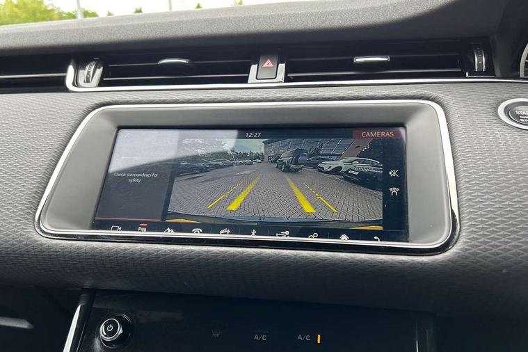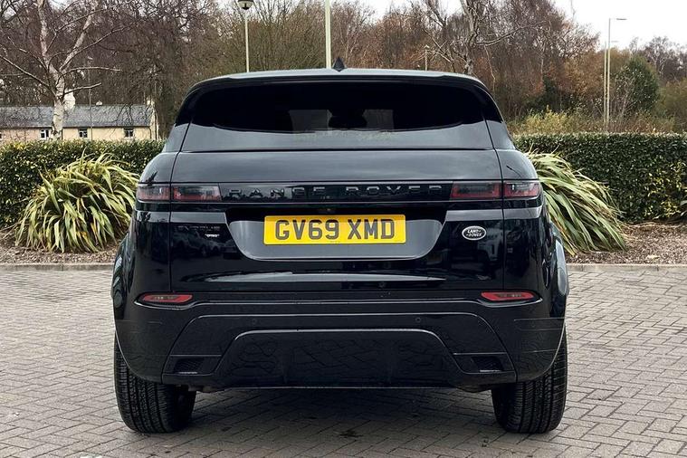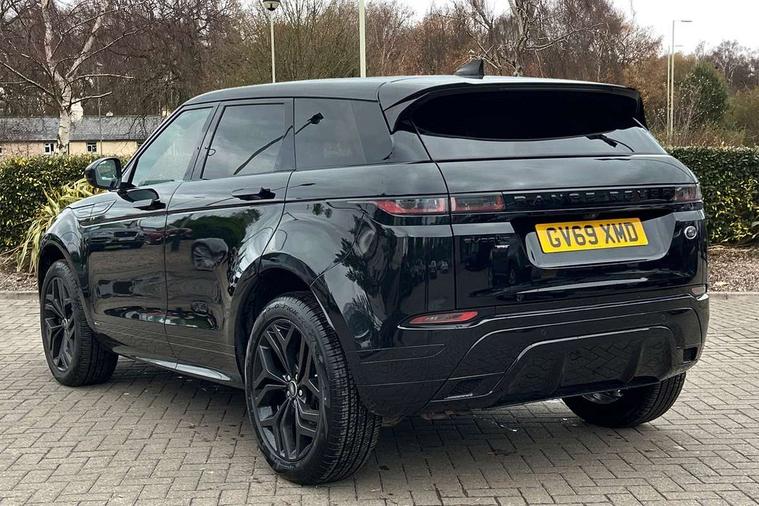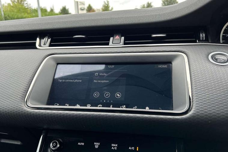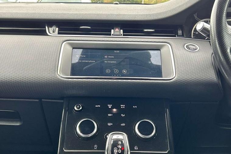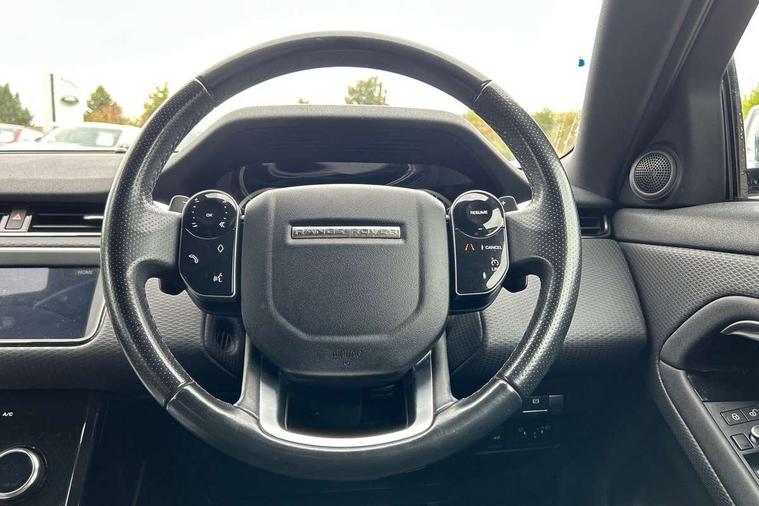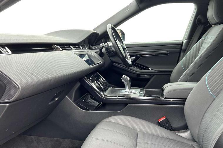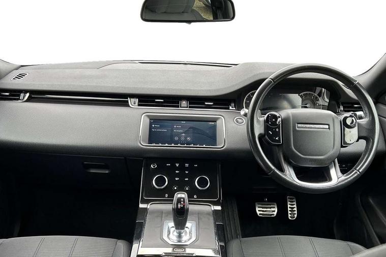 Android Auto, Apple car play, Bluetooth connectivity, Brake pad wear indicator warning light, Driver condition monitor, Electronic power assisted steering (EPAS), InControl remote, Land Rover InControl apps, Lane keep assist, Push button starter, Voice control system, All terrain progress control, Efficient Driveline, Passive suspension, Terrain Response 2 Auto, Digital Audio Broadcast radio-DAB, Steering wheel mounted controls, Electric windows with one touch open/close and anti trap, Evoque and R-Dynamic badge, Flush deployable exterior door handles, Heated rear window with timer, Heated washer jets, Heated windscreen, Rain sensing windscreen wipers, Rear fog lights, Shadow atlas bonnet and tailgate script, Tailgate spoiler, 40:20:40 split folding rear seats, Black gearshift paddles, Bright metal pedals, Isofix system on outer rear seats, Overhead lighting console, Overhead stowage for sunglasses, Passive front head restraints, Rear air vents, Rear centre headrest, Sunvisors with illuminated vanity mirrors, Twin front cupholders with cover, Twin sliding front centre armrest, 3 rear 3 point seatbelts, Anti-lock braking system (ABS), Customer configurable autolock, DSC - Dynamic Stability Control, Electronic brake force distribution, Electronic parking brake, Electronic traction control, Front and rear seatbelt reminder, Hill descent control, Hill launch assist, Low traction launch, Power operated child locks, Roll stability control, Six airbags - Driver and passenger airbags/driver knee airbag/front side airbag and curtain airbags, Torque vectoring brake, Tyre pressure monitoring system, Alarm, Immobiliser, Intrusion sensor, Locking wheel nuts,