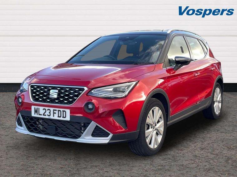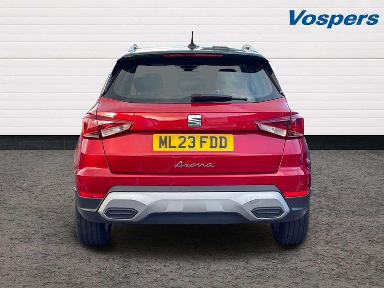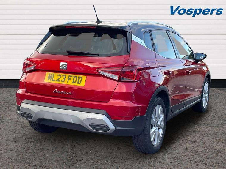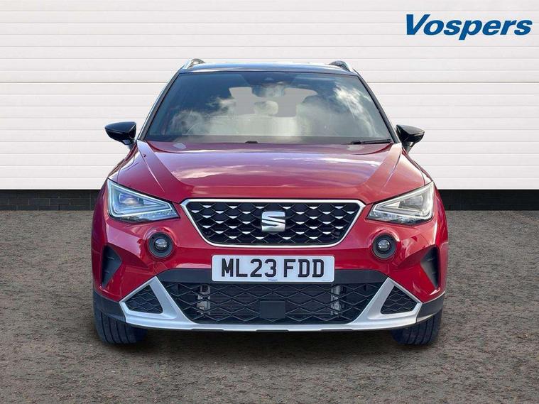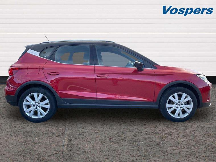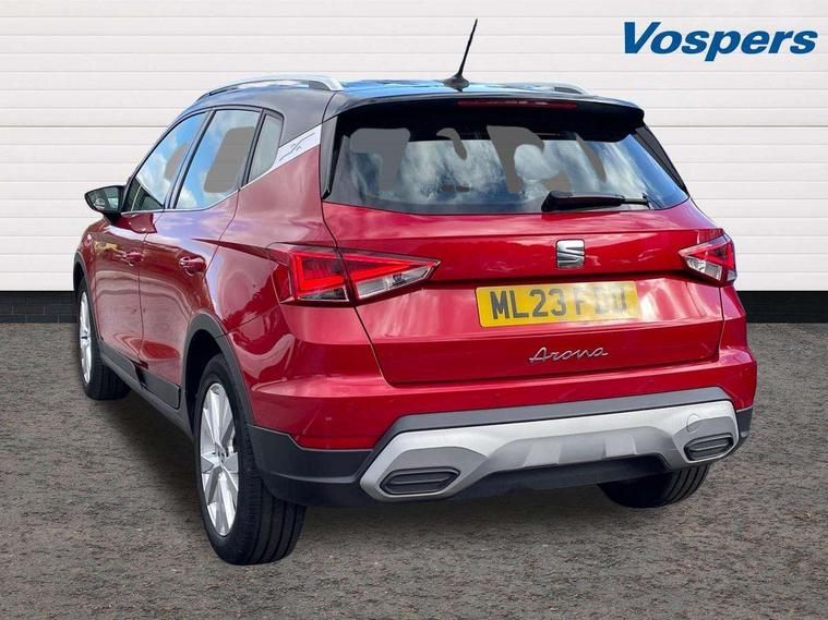'Lights On' Reminder warning buzzer, 8" Digital cockpit, Digital clock, E-call, Electric speed sensitive power steering, Full Link Smartphone Integration with Mirror Link, Apple Car Play, Google Android Auto with USB Type C cable for Apple and Android compatibility, Lane keeping system, Low fuel warning light, Outside temperature display, Rear parking sensor, RPM counter, Seat connect with safety, service, remote and online, Trip computer, Wireless phone charger, 9.2" colour touchscreen with navigation system, voice control and USB port (type c), Bluetooth interface for hands free and audio streaming, DAB digital radio and AM/FM radio, Steering wheel mounted audio controls, Anti theft roof antenna, Auto dimming interior rear view mirror, Automatic activation of hazard warning lights, Body coloured bumpers, Body coloured door handle inserts, Chrome roof rails and window surrounds, Electric front/rear windows, Electrically adjustable, heated and folding door mirrors, Front fog lights with cornering function and rear fog light, FULL LED automatic headlights with dynamic headlight range control, coming and leaving home, LED daytime running lights, Hidden exhaust pipe, LED rear tail lights and licence plate lights, Protective side mouldings, Rain sensing wipers, Rear side wing doors, Rear spoiler, Rear window wash/wipe, Roof colour door mirrors, Third brake light, Visible VIN plate, Windshield wiper with intermittent control and potentiometer, 2 cupholders, 3 seat bench in 2nd row, 60/40 split folding rear seat, Aircare filter, Black interior roof, Cloth upholstery, Double boot floor, Driver sunvisor with covered mirror + card holder, Dual zone climate control, Flat bottomed leather steering wheel/gear knob/handbrake, Front courtesy light with 2x front and 2x rear reading lights, Front seat back storage pockets, Gear shift indicator, Height adjustable front seats, Height/reach adjustable steering column, Illuminated boot, Instrument lighting with brightness control, Interior ambient lighting, Interior light in footwell, central console and door panel, ISOFIX points in outer rear seats with top tether anchorage points, Leather steering wheel/gear knob/handbrake, Passenger sunvisor with vanity mirror, Single front passenger seat, Storage net on centre console, Two front and three rear height adjustable headrests, Interior chrome pack - Arona, Safety and driving pack (M) - Arona, Storage pack - Arona, 3 point seatbelts on all rear seats, ABS, Active front headrests, Child locks on rear doors, Driver and front passenger airbags with front passenger airbag de activation, front side and curtain airbags, Electronic stability control, Emergency Brake Assist (EBA) and front assist, Front and rear seatbelt reminder, Hill hold control, Multi-Collision braking, Tiredness recognition system, Traction control, Tyre pressure monitoring system, Alarm with back-up horn, Electronic engine immobiliser, KESSY Keyless entry and go, Locking wheel bolts, Remote central locking + deadlocks, Tow away protection, Titan black dashboard, 17" Dynamic alloy wheels,