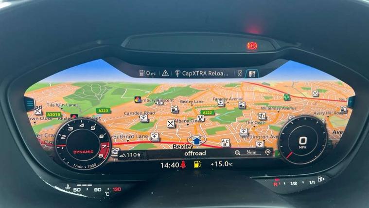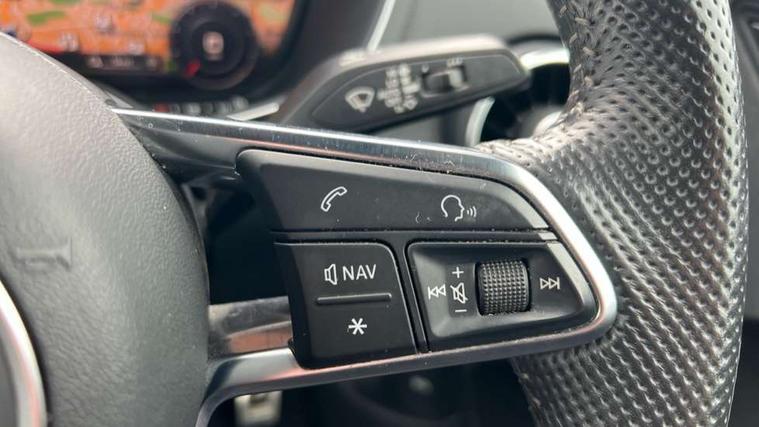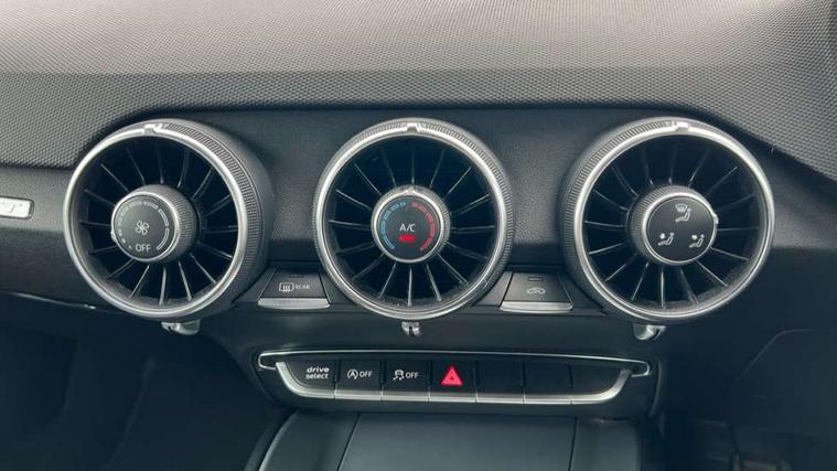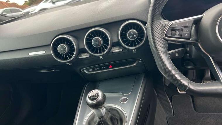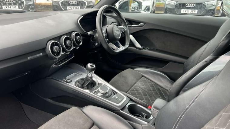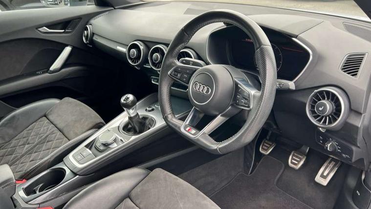 Audi active lane assist, Audi drive select with 4 Pre configured modes, Audi virtual cockpit - 12.3" high-resolution LCD display with fully customisable instrument cluster, Cruise control + speed limiter, MMI touch panel, Mobile phone preparation with bluetooth interface, Progressive power assisted steering, Service interval indicator, Start/Stop system with energy recuperation, TP memo, S line sports suspension, AM/FM radio, Audi music interface, Bluetooth audio streaming, DAB Digital radio, MMI Radio with CD player and SD/XC card slot, Auto dimming rear view mirror, Auto headlight range control, Black chrome tailpipe, Black door mirrors, Dark privacy glass from B-pillar backwards, Dynamic rear indicators, Electric folding door mirrors, Electric front windows, Front fog lights, Green tinted heat insulating glass, Headlight wash system, LED daytime running lights, LED headlights with LED rear lights + dynamic rear indicators, Light and rain sensors, Sunband for windscreen, 12V socket, 3 spoke flat bottomed multi-function leather sport steering wheel, 4 way electric lumbar support for driver and front passenger, Air conditioning, Black headlining, Extended aluminium look with stainless steel pedals, Front centre armrest, Front super sports seats, Heated front seats, Height adjustable driver's seat, Height adjustable front head restraints, Height/reach adjust steering wheel, ISOFIX child seat mounting for front passenger seat with airbag deactivation, Perforated leather gearknob, Rear head restraints, Rear top tether child seat ISOFIX attachment, Split folding rear seat, Top tether anchor plate for isofix child seat, Black styling pack - TT, Non smoking pack - TT/TT RS, 3 point front seat belts, ABS, ASR traction control, Brake energy regeneration, Curtain airbags, Driver and front passenger airbag with front passenger airbag deactivation, EDL traction control, Electromechanical parking brake, ESP, First aid kit, Front side airbags, Head airbags, Hill hold assist, Seatbelt warning, Tyre pressure warning, Warning triangle, Anti theft alarm, Anti theft wheel bolts, Immobiliser, Keyless Go, Remote central locking, Matt brushed aluminium inlays, Tool kit, Tyre repair kit,