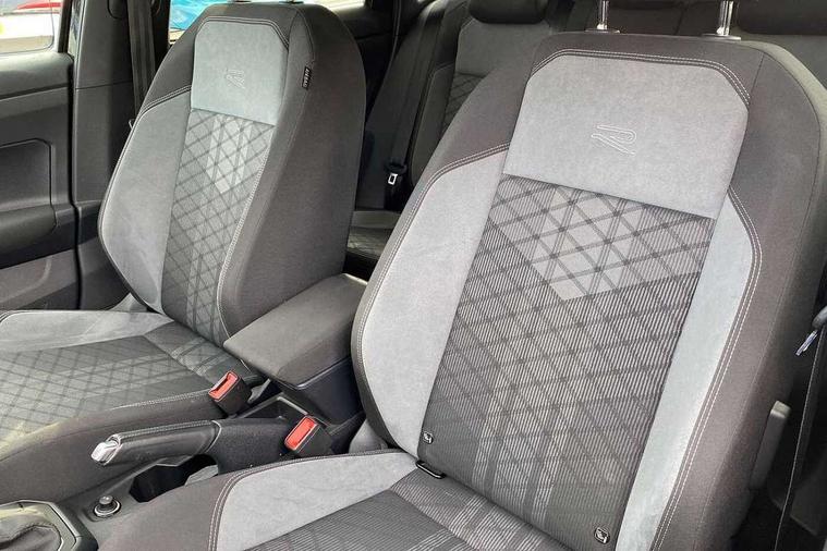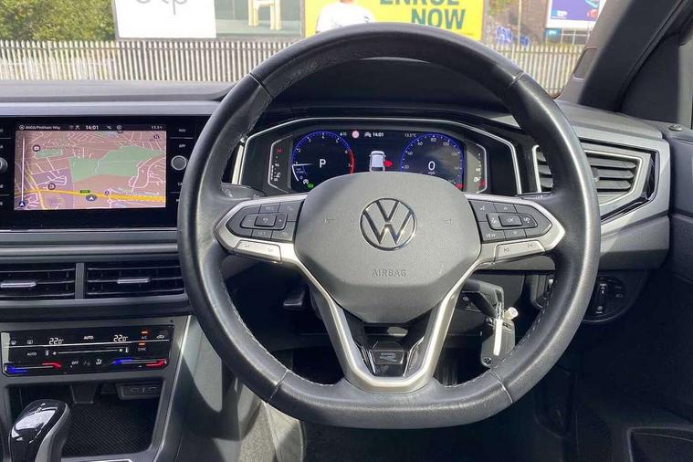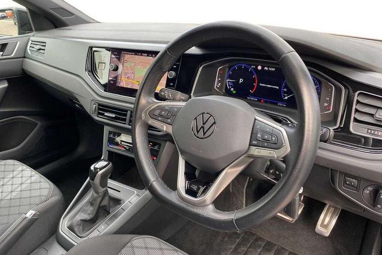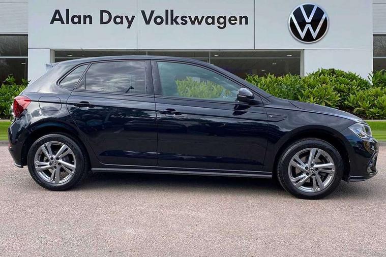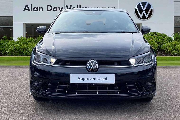 Adaptive cruise control with follow-to-stop and speed limiter, Bluetooth mobile phone interface, Digital Cockpit Pro with 10.25" Display, Driver alert system, Dynamic road sign display, Emergency call service, Power assisted speed sensitive steering, Preparation for We connect and We connect plus, Speedo and rev counter, electronic odometer, trip, service interval display and fuel gauge, Standard rear axle, Travel Assist - Lane keeping system and traffic jam assist, Travel assist including emergency assist, Trip computer, Warning signal and warning light for front and rear seatbelts not fastened, Washer fluid level indicator, Wireless app connect, Front wheel drive, Rear shock absorpion, Start-stop system with battery regeneration (recuperation - energy recovery during braking), DAB Digital radio, Diversity antenna for FM reception, Front and rear 6 speakers, Body colour bumpers, Body colour door handles, Body colour door mirrors, Electric front windows, Front fog lights with static cornering function, Front scuff plates with R-Line logo, Heat insulating darkened glass in side and rear windows, Heat insulating glass windscreen, Power folding adjustable/heated exterior mirrors and front passenger exterior mirror lowering function, Rear electric windows, Rear fog light, Rear side wing doors, Rear tinted glass from B-pillar backwards approx 65% tinted, Rear windscreen washer and wiper with interval delay, Third brake light, 12V power socket in centre console, 2 USB-C ports in the front, 2 USB-C charging sockets on the center console in the rear, 3 rear head restraints, 60/40 split folding rear seat and rear seat bench not split, Air care climatronic air conditoning system with active combination filter and 2-zone temperature control, Black roof lining, Ceramique headliner, Chrome plated radiator grille inserts, air vent surrounds and light switch surrounds, Door and side trim panel, Driver and front passenger seat height adjustment, Driver/passenger sunvisors with illuminated vanity mirrors, Front + rear carpet mats, Front centre armrest, Front footwell illumination, Front seat backrest storage pockets, Front sports comfort seats, Handbrake lever handle in leather, Isofix child seat preparation easy-fit (for two outer rear seats, and front passenger seat) compatible with I-size, Karoso artvelours cloth upholstery, Leather trimmed gear knob, LED interior light with switch off delay and dimmer, 2 reading lights front and rear, Luggage compartment cover, Luggage compartment floor, Luggage compartment lighting, Lumbar adjustment for front seats, Single front passenger seat, Stainless steel pedals, Standard pedal cluster, Three spoke leather wrapped multifunction steering wheel with shifting paddles, Light and sight pack - Polo R-Line/Black Edition, 3 point height adj front seatbelts + pretensioners, 3x3 point rear seatbelts, ABS, Driver and front passenger airbag with front passenger airbag deactivation, Drivers and front passengers safety optimised head restraints, ESC (Electronic stability control) + EDL (Electronic Differntial lock) and ASR (Traction control), Extended and predictive pedestrian/ cyclist protection, Front curtain and side airbags with center airbag, Front/rear disc brakes, Hill hold control, Manual child lock in rear doors, Single tone horn, Tyre pressure loss indicator, Alarm with interior protection, Anti-theft alarm system with interior monitoring, backup horn, and towing protection, Anti-theft wheel bolts, Electronic engine immobiliser, Chrome applications on rotary light, mirror adjustment, window regulator switches, outlet with frame in black, Dark grey anodised matt decorative inserts in dash and front door panels, Low rolling resistance tyres,