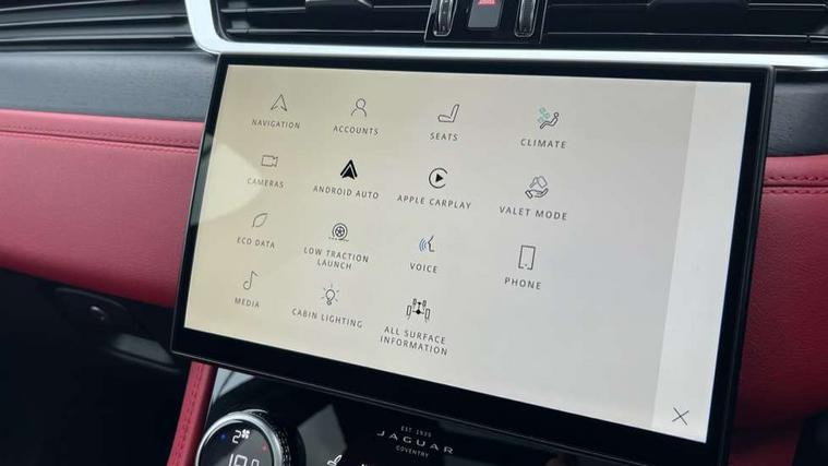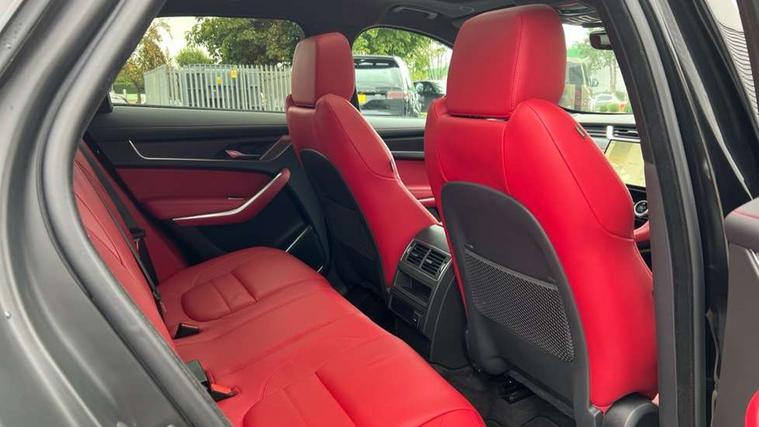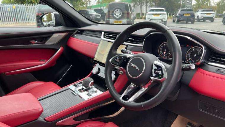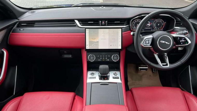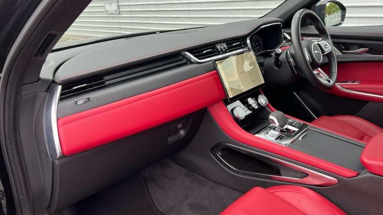 11.4" touchscreen, Android Auto, Apple car play, Blind spot assist, Bluetooth connectivity, Clear exit monitor, Driver alert system, Driver condition monitor, eCall emergency call system, Eco driving style assistant, Electric power assisted steering, InControl remote, Interactive driver display digital with 12" TFT display, Jaguar Toggle shift selector, Lane departure warning system, Lane keep assist, Outside temperature gauge, Personalisation profile management, Pivi pro connected navigation system with app interface and media storage, Pro services and wifi hotspot, Push button starter, Rear traffic monitor, Service interval indicator, Speed proportional steering, Start up sequence with movement in dials and lighting, Traffic sign recognition with adaptive speed limiter, Trip computer, Voice control system, Wireless device charging, 8 speed automatic transmission, All terrain progress control, All Wheel Drive (AWD), Open differential with torque vectoring by braking, AM/FM radio, Bluetooth streaming, DAB Radio (Digital Audio Broadcasting), Dynamic volume control, InControl apps, InControl protect, iPod integration, 3 flash lane change indicators, Animated directional indicators, Approach Illumination, Auto dimming rear view mirror, Auto high beam assist, Automatic headlights, Electric heated/power fold memory door mirrors with approach lights and auto dimming driver side, Electric windows with one touch open/close and anti trap, F-Pace and R Dynamic badge, Green tinted glass, Heated front windscreen + heated washer jets, Heated rear window with timer, Jaguar script and leaper, LED High level third brake light, LED tail lights, Metal load space scuff plates, Non acoustic front windscreen, Privacy glass, R Dynamic badge on side door, Rain sensor windscreen wipers, Rear fog lights, Rear metal tread plates, Rear side wing doors, Rear wiper, Trailer stability assist, Variable front intermittent wipers, 12V power point front, 3 rear headrests, 3 seat bench in 2nd row, Additional power sockets - Two additional USB sockets in rear centre console and one 12V socket in trunk, Air distribution speed, Bright metal foot pedals, Centre armrest console, Centre console with side storage, Configurable cabin lighting, Deletion loadspace storage rails, Door sill tread plates, Fold flat front seats, Front centre armrest with storage compartment, Front door storage space, Glovebox finisher with jaguar script, Heated steering wheel, Hooks in loadspace, Illuminated glovebox, Interior front door handles with separate locking switches, ISOFIX on outer rear seats, Jaguar sense, Leather steering wheel, Luggage tie downs in loadspace, Mist sensing, Multifunction steering wheel, Overhead lighting console, Overhead stowage for sunglasses, Passive front head restraints, Premium carpet mats, Rear air vents, Rear armrest with twin cupholders, Rear centre headrest, Rear door storage space, Reversible boot floor, Satin chrome gearshift paddles, Shopping bag hook, Single front passenger seat, Sunvisors with illuminated vanity mirrors, Twin front cupholders with cover, Online Pack with data plan - F-Pace, 355mm front brakes and 325mm rear brakes, 3x3 point rear seatbelts, ABS, All surface progress control (ASPC), Brake pad warning light, DSC - Dynamic Stability Control, Electric parking brake (EPB), Emergency brake assist, Front airbags with passenger seat occupant detector, Front and rear seatbelt reminder, Front side airbags, Full length side window curtain airbag, Hill launch assist, Power operated child locks, Traction control, Tyre pressure monitoring system, Immobiliser, Keyless entry, Keyless Start, Locking wheel nuts, Perimeter alarm, Remote central locking, Valet mode,