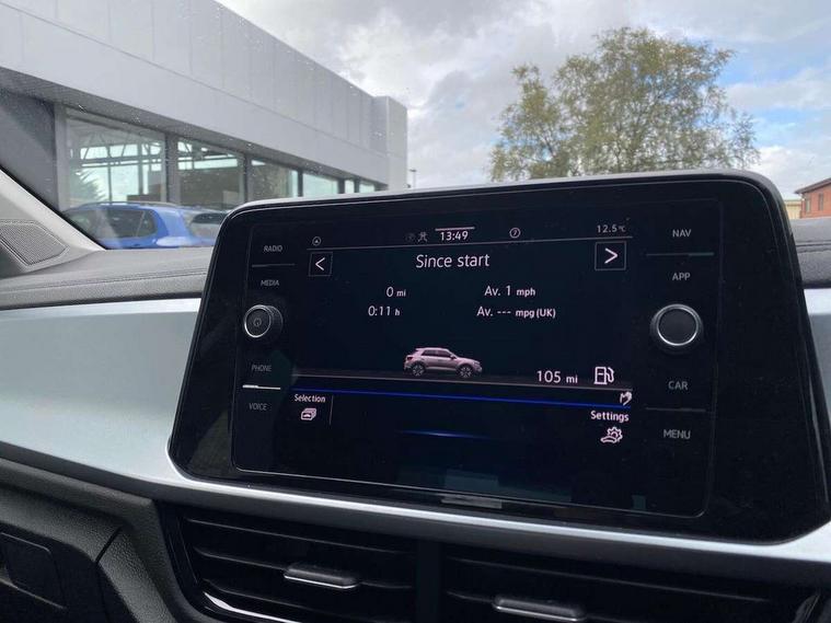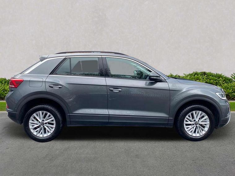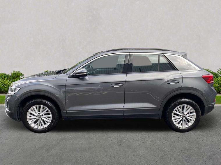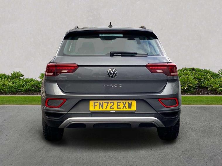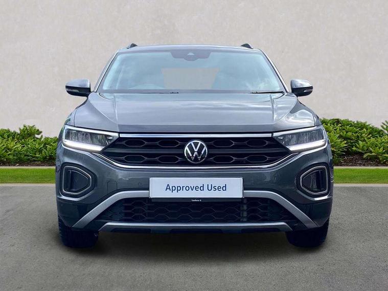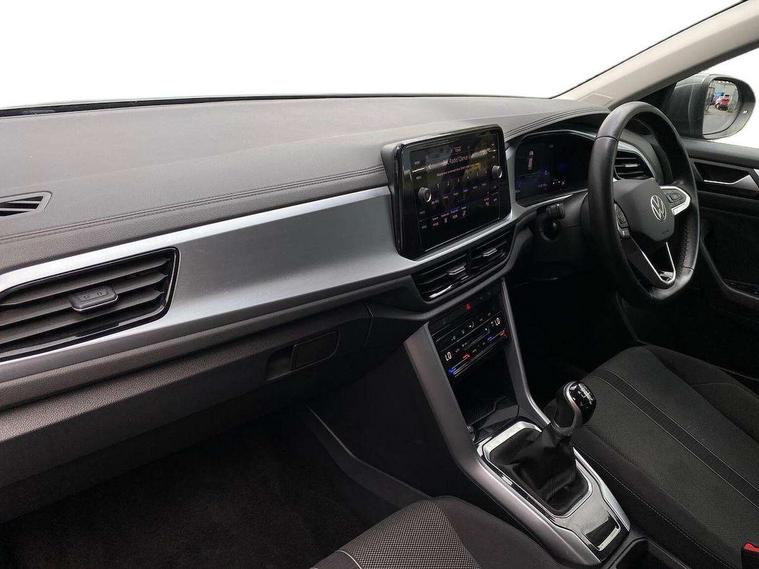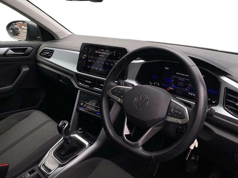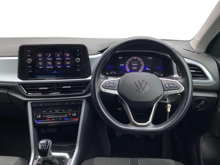 Bluetooth mobile phone interface, Driver alert system with fatigue detection, Driver tips and journey analysis, Emergency call service, Lane keeping system Lane Assist, Modified key software - reduce switch off time for key status change to Long no motion, Online services, Park assist including front and rear parking sensors, Power assisted speed sensitive steering, Service interval indicator, Tailgate/trunk lid release from outside, Think blue trainer driver tips and journey analysis, Warning sound and light for front seatbelts unfastened, Wireless app connect, Battery regeneration during braking, Front shock absorption, Rear shock absorption chassis with increased ride height, Start/stop function with battery regeneration, DAB Digital radio, Diversity antenna for FM reception, Front and rear 6 speakers, Music playback - MP3, WMA and AAC files, Premium USB cable in choice of either Apple or Android smartphone compatibility, SD card slot, Simultaneous pairing of 2 compatible mobile devices, Title and cover art display, We Connect and We Connect Plus functionality, 3rd brake light, Auto dimming interior rear view mirror, Automatic hazard lights activation under emergency braking, Automatic headlight control with LED separate daytime running lights with coming/leaving home function, Black roof rails, Body coloured bumpers and radiator grille with chrome trim and front fog lamps with chrome bezel, Body coloured exterior mirror housings and door handles, Extended roof spoiler, Exterior mirrors aspherical on driver side, convex on front passenger side, External USB type C socket and charging sockets, Front windscreen wiper with intermittent wipe and 4 position delay, Heated rear window, LED Headlights, LED rear combination lamps, LED rear number plate lights, LED tail lamp rear comination lamps, Power windows with comfort operation and circuit breaker, Rain sensor, Rear exhaust tailpipe, Rear fog light on one side and reversing lights on both sides, Rear side wing doors, Rear wash/wipe with intermittent wipe setting, Remote electrically foldable door mirrors, puddle lights and reverse activated passenger's door mirror, 12V power socket in centre console, 3 rear head restraints, 3 seat bench in 2nd row, 4 load lashing points in luggage compartment, Air care climatronic air conditoning system with active combination filter and 2-zone temperature control, Ambient lighting with mirror logo projection, Cloth upholstery, Door and side trim panel in cloth, Drawer under drivers seat, Driver/front passenger seat height adjustment, Front centre armrest, Front comfort sports seats, Front cupholders x 2, Front reading light, Instrument lighting, white adjustable panel illumination, Interior light delay, Isofix child seat preparation, Leather gearshift handle, Load-through provision with cup holder when folded down ('Unsplit rear seat bench, split folding backrest, with centre armrest), Luggage compartment lighting, Lumbar support for driver's and front passengers seat, Non-folding front passenger seat backrest, Single front passenger seat, Storage compartment in left and right luggage area, Storage compartment in rear doors, Storage compartments in driver and front passenger doors, Sunvisors with illuminated vanity mirrors, Variable boot floor, height adjustable and removable, Driver assistance pack without proactive passenger protection - T-Roc, 3 point height adj front seatbelts + pretensioners, 3 point seatbelts in outer rear with ECE label, ABS, Child locks on rear doors, Driver and front passenger airbag with front passenger airbag deactivation, Driver and front passenger safety-optimised head restraints, Drivers seatbelt reminder, Electronic parking brake, Electronic Stability Control (ESC) inc EDL (Electronic Differential Lock) and ASR (Traction Control), Front and rear passengers curtain airbag system including front side airbags, Front assist with city emergency braking and pedestrian monitoring, Front disc brakes, Front seat side impact airbags, Hill start assist, Predictive pedestrian protection, Rear disc brakes, Single tone horn, Tyre pressure loss indicator, Volkswagen roadside assistance, Alarm with interior protection, Anti-theft alarm system with interior monitoring, backup horn, and towing protection, Remote central locking with SAFELOCK, radio remote control with 2 remote control folding keys, Pewter matt decorative inserts for intrument panel, centre console and door panels at the front, Trims for alloy wheels,