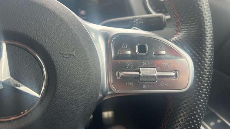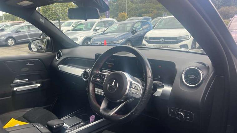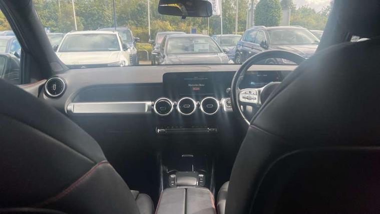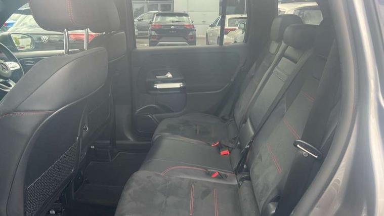 180 degree reversing camera, 7 inch digital instrument cluster display, Active lane keeping assist, Attention assist - Monitors steering behaviour and long journey fatigue, Brake pad wear indicator warning light, Car wash mode, Cruise control with limiter, DYNAMIC SELECT with a choice of driving modes (ECO, Comfort, Sport and Individual), ECO start/stop function, Fluid level warning indicator for fuel, oil, coolant and washer fluid, Hard disk navigation, Hey Mercedes Voice activation, Lamp failure indicator, Mercedes me connect including emergency call system, accident recovery, breakdown management and maintenance, Mercedes me remote services, Outside temperature gauge, Owners manual and service booklet in English, Parameter steering system, Pre-installation of private car share, Radio aerial integrated into front and rear windshields, Service indicator (ASSYST), Speed limit assist, Trip computer in multifunction display with current consumption indicator, Comfort suspension, Rear axle multi-link, 7 inch digital media screen display, DAB digital radio tuner, MBUX multimedia system with DAB digital radio and touchpad including satellite navigation, Mercedes Benz sound system (100 W) with 6 speakers, Pre installation for Mercedes Benz Link, USB (type C) port in front stowage compartment, USB (type C) ports (2) in stowage compartment, Adaptive brake lights, Aerial for GPS, AMG bodystyling door panels black grained with chrome plated inserts, AMG bodystyling front apron with chrome splitter, AMG bodystyling rear apron with diffuser optics and chrome trim element, AMG specific front and rear bumper including underride guard in high gloss chrome, Beltline strips and weather strip in chrome, Body coloured door handles, Body coloured door mirror caps, Electric adjustable and heated door mirrors with integrated LED side indicators, Exhaust system with dual flow exhaust pipes (non-functional), Front and rear electric windows, Headlamp assist automatic headlamp activation, Heated glass rear windscreen + timer control, High level LED third brake light, Interior mirror with black reading lamps and frameless, LED high performance headlamps with integrated LED daytime running lights, LED tail lamp, Polished aluminium roof rails, Privacy glass with dark tinting on rear side windows and rear window, Radiator grille with pins in chrome and single louvre with chrome insert, Rain sensor windscreen wipers, Rear fog lamp, Rear side wing doors, Rear wiper, Two visible tailpipe trim elements exhaust, 3 seat bench in 2nd row, 3 spoke multifunction sport steering wheel in nappa leather, Air conditioning - Two zone thermotronic luxury automatic climate control with display, AMG sports pedals with brushed stainless steel surfaces and black rubber studs, Artico man-made leather/Microfibre Dinamica upholstery with red contrast stitching, Automatic child seat recognition sensor, Black floor mats with AMG lettering, Black roof lining, Fore/aft adjustment rear seats, Freight packaging with tie-down hooks, Front centre armrest with stowage, Front door sills with Mercedes Benz lettering, Front passenger grab handle with brushed side silver chrome, Galvanished gear shift paddles on steering wheel, Heated front seats, Height/reach adjustable steering column, Luggage net on driver/front passenger seat backrest, Rear armrest with two integral cup holders for drinks, Rear seat easy entry, Single front passenger seat, Sports seats with adjustable head restraints, Stowage compartment in centre console, Stowage compartment with retractable cover, Third row of seats for two people on rear seat, Touchpad on center console, Twin front cup holders, Two outer rear seat isofix and top tether child seat fixing points, Interior lighting with light and sight pack - GLB, Seat comfort package - GLB, 3 rear 3 point seatbelts, Active bonnet pedestrain safety measure which detects an impact and raises bonnet by 65mm, Active brake assist includes forward collision warning system with autonomous braking, Adaptive brake assist with hold function and hill start assist, Airbags - kneebag for driver, Anti-lock braking system (ABS) with brake assist, Childproof locks manually operated for rear doors and electrically operated for rear power windows, Crash responsive emergency lighting, Curve dynamic assist, Driver and front passenger head and sidebags, Driver and front passenger windowbags, Dual stage driver and front passenger airbags, Electronic parking brake, Electronic stability programme with acceleration skid control, Front and rear seatbelt reminder, Front brake callipers with Mercedes Benz lettering, Front passenger seat occupancy sensor, Tyre pressure monitoring system, Warning triangle and first aid kit, KEYLESS-GO starting function, Remote central locking and crash sensor with emergency opening function, Thatcham category 1 alarm system with immobiliser and interior protection, Urban guard vehicle protection - Anti theft alarm system, tow away protection with visual and acoustic warning and alarm siren, Vehicle key with decorative surround in chrome, Black air vents with chrome surround, Carbon structure trim, 19" AMG 5 twin spoke light alloy wheels painted in tantalite grey with high sheen finish, Summer tyres, Tirefit tyre sealant kit,