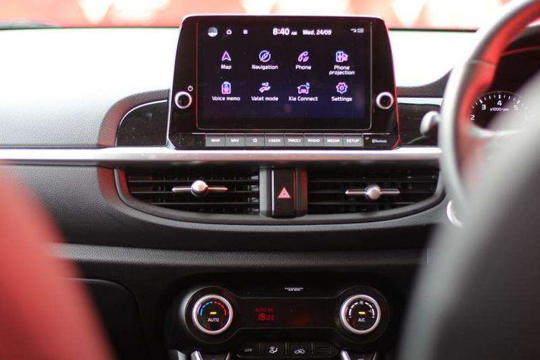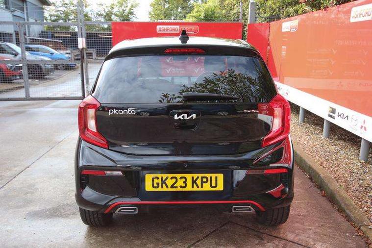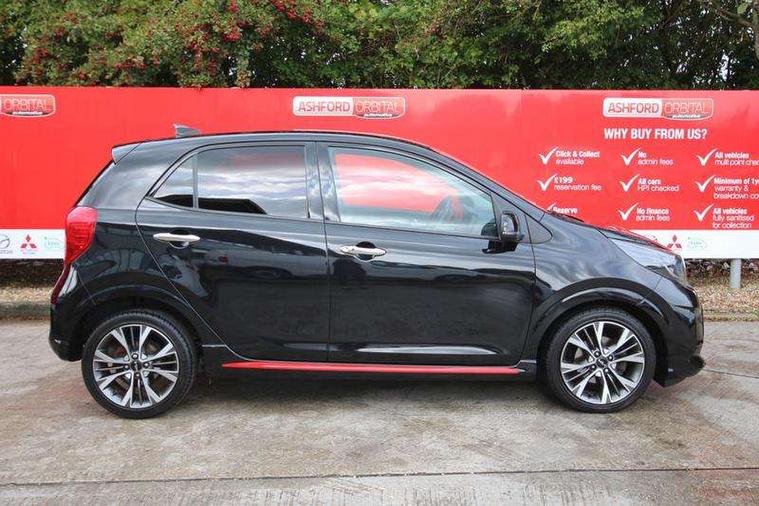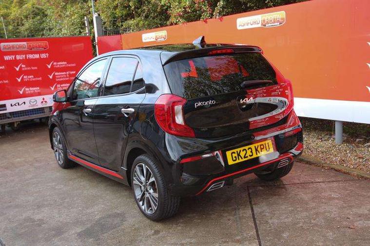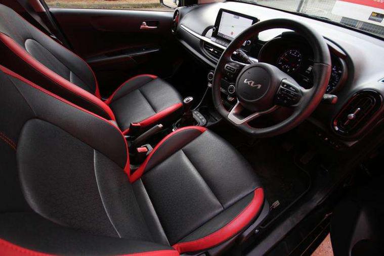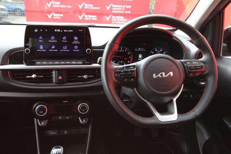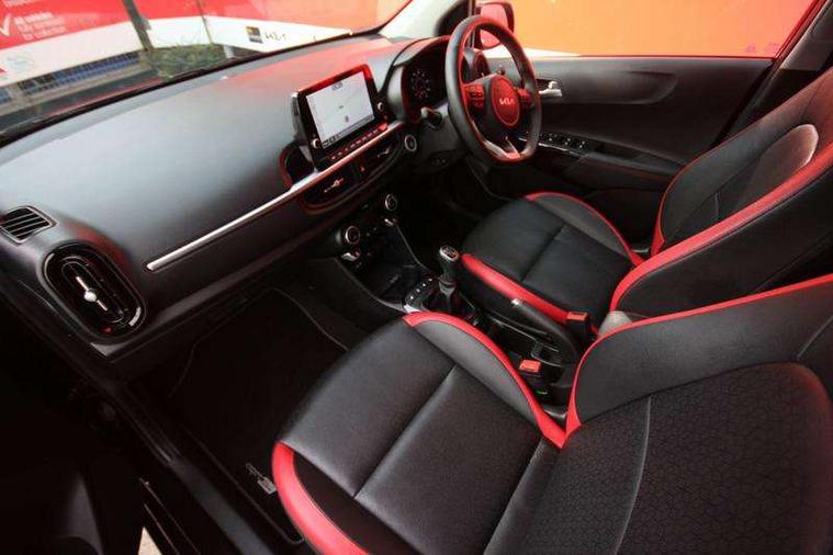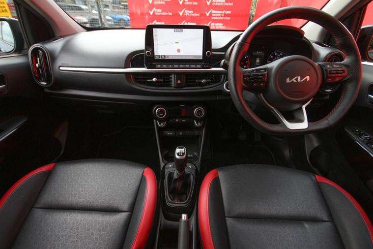 8" touch screen satellite naviagtion with RDS and DAB with telematics, Apple car play/Android Auto with voice control, Cruise control + speed limiter, Emergency call service, Emergency stop signalling system, External temperature gauge, Kia Connect (UVO), Motor driven power steering, Rear parking sensors, Reversing camera system with dynamic guidelines (Integrated into centre fascia screen), Tachometer, Trip computer, Wireless Smartphone charger, 6 speaker audio system, Bluetooth with music streaming, Steering wheel mounted controls, USB ports for connection of a media device, Automatic headlight control system, Bi-function projection headlights, Black beltline mouldings, Black grille with silver surround, Body colour B pillars, Body colour bumpers, Body colour side sill mouldings, Body coloured mirrors and chrome exterior handles, Day/night rear view mirror, Electric adjustable/heated/folding door mirrors with LED indicators lights, Front and rear electric windows with drivers's auto up/down function, Front fog lights, Headlamp levelling, Heated rear window, High mount brake light, LED daytime running lights, LED rear fog lights, Privacy glass - Rear windows and tailgate, Rain sensor, Rear side wing doors, Rear wash/wipe, Speed variable front wipers, Sports front and rear bumpers with gloss black skid plates twin exhaust, Tinted glass, Visible VIN plate, Welcome and follow-me home light functionality, 1 x rear coat hook, 12V power point front, 2 seat bench in 2nd row, 3 x passenger assist grips, 60/40 split/folding 2nd row of seats, All round height adjustable headrests, Automatic air conditioning, Black and red accents front door armrest, Centre Console with Storage Box and Sliding Armrest, Cupholders in centre console, D-cut steering wheel with red stitching, Driver and front passenger sunvisors with driver's side illuminated vanity mirrors, Driver seat height adjust, Faux leather upholstery, Front cabin lights, Glovebox, Heated front seats, Heated steering wheel, High gloss lower centre fascia trim, door armrest and air vents, ISOFIX Child seat top tethers and anchor fixings, Leather trimmed steering wheel and gearshift, Luggage area light, Luggage area parcel shelf, Passenger front seatback pockets, Satin chrome interior door handles, Single front passenger seat, Slide/reclining front seats, Tilt adjustable steering wheel, Advanced Driver Assistance Pack - Picanto, 2 x 3-point rear seatbelts, ABS/EBD, Automatic unlocking of doors in case of impact, Dual front airbags, ESC + BAS + VSM + HAC, Front passenger airbag cut-off switch, Front seatbelt height adjusters, Front seatbelt pretensioners + load limiters, Hill hold control, Knee airbags, Rear child proof door locks, Seatbelt warning, Side impact protection, Torque vectoring brake based and straight line stability (SLS), Traction control, Twin curtain airbags, Twin front side airbags, Tyre pressure monitoring system, Anti theft alarm, Engine immobiliser, Locking wheel nuts, Smart key with engine start/stop button, 16" alloy GT-Line wheels, Tyre mobility kit,