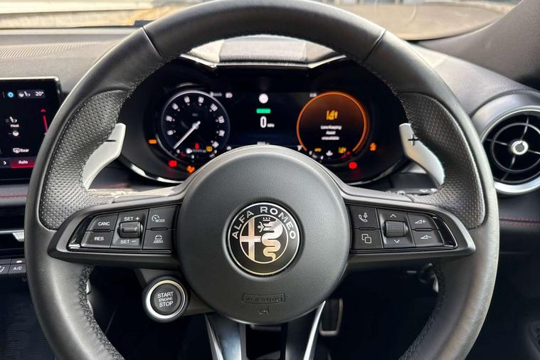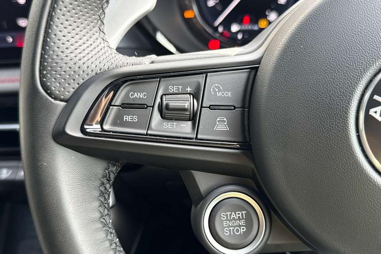 Adaptive cruise control with Stop and Go, Alfa connect box, Alfa connect services, Alfa dna with esc off (3 modes + esc off), Apple car play/Android Auto, Drowsy driver detection, e-Call (emergency call), Forward collision warning, Full tft instrument cluster - 12.3", Hands free power liftgate, Intelligent speed assist, Lane support system, PAS, Passive / keyless entry (front doors), Quick guide in english, Speed limiting device, Traffic sign recognition (w/navigation), Warranty handbook uk, Wireless charging pad, 10.25" radio touchscreen, usb, bluetooth audio streaming, voice controls with navigation, DAB digital audio broadcast, Harman Kardon sound system, 4 Interior puddle lights, Auto headlamps with dusk sensor, Auto high beam, Auto wipers with rain sensor, Auto-dimming rear internal mirror, Black painted mirror caps, Body colour door handles, Body colour painted body kit w/ Dark miron side and front inserts and skidplate, Body colour rear roof spoiler, Chrome finishing tonale badge, Electric exterior mirrors (heated), Electrical-folding exterior mirrors, Front and rear power windows with auto up/down and antipinch, Full LED rear lamps, Gloss black painted window surround, Heated washer nozzles, Italian flag on mirror caps, LED blade stop light, LED cornering projector light, LED license plate light, Matrix full led headlamps with adaptive system and fog light function, Privacy glass, Rear side wing doors, Rear wiper, Roof, hood and exterior mirrors protection, Scudetto bezel dark miron, Shark fin antenna, U shaped LED blades DRL signature and dynamic turn indicator, Welcome/leaving lighting, 12v plugs in the front and in trunk, 4 Ways electric driver and passenger lumbar adjustment, 60/40 Rear seats with ski pass, 8 way driver/passenger electrically adjustable seats with driver memory, Alfa logo embroided on headrest, Aluminium door sills, Aluminium shift paddles on steering column, Ambient lighting and backlighted film-carbon look, Black ceiling and pillars, Bottle storage 1l on door panel, Centre armrest with red stitching, Door armrest with red stitching, Dual zone air conditioning with aqs (with rear airvents), Front armrest (integrated in the central tunnel), Front headrests, Front usb plug type a + c (charge + data), Front/rear floor mats, Heated front seats, Heated steering wheel, Italian flag on headrest, Metallic pedals, Mono colour ambient light (included in domelamp), Overhead console with domelamp led and switches, Perforated leather upholstery, PTC heater, Rear central armrest and 3 headrests, Rear usb plug type a + c (charge), Scoba shark black grain PVC centre armrest, Scoba shark black grain PVC upper door panel and armrest, Seat belt height adjustment, Single front passenger seat, Sport leather steering wheel with start button, Sunvisor mirror with light (driver and passenger), 6 airbags, ABS, Alfa dual stage valve suspension (dsv), Autonomous emergency braking inter-urban, Electric parking brake with autohold, Emergency braking pedestrian and vulnerable road users - interurban, ESP, Manual rear child locks, Rear seatbelt reminder alert, Red brake calipers, Three 3 point rear seatbelts, Tyre pressure monitoring system (TPMS), Capless fuel filler, Keyless Go, Vehicle theft alarm with hood protection and intrusion sensor (thatcham), Mopar carbon graphic dashboard insert, Red stitching on dashboard, Scuba shark black grain PU dashboard, 20" Grey finish alloy wheels, Black and white alfa romeo logo center wheel caps, Fix and go puncture repair kit, Summer tires,
