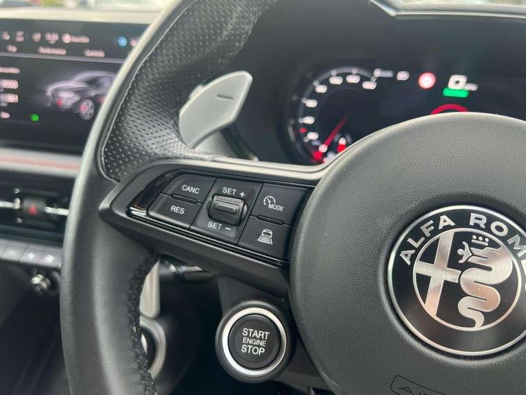 Adaptive cruise control with Stop and Go, Alfa connect box, Alfa connect services, Alfa dna with esc off (3 modes + esc off), Apple car play/Android Auto, Drowsy driver detection, e-Call (emergency call), Forward collision warning, Full tft instrument cluster - 12.3", Hands free power liftgate, Intelligent speed assist, Lane support system, PAS, Passive / keyless entry (front doors), Quick guide in english, Speed limiting device, Traffic sign recognition (w/navigation), Warranty handbook uk, Wireless charging pad, 10.25" radio touchscreen, usb, bluetooth audio streaming, voice controls with navigation, DAB digital audio broadcast, Harman Kardon sound system, 4 Interior puddle lights, Auto headlamps with dusk sensor, Auto high beam, Auto wipers with rain sensor, Auto-dimming rear internal mirror, Black painted mirror caps, Body colour door handles, Body colour painted body kit w/ Dark miron side and front inserts and skidplate, Body colour rear roof spoiler, Chrome finishing tonale badge, Electric exterior mirrors (heated), Electrical-folding exterior mirrors, Front and rear power windows with auto up/down and antipinch, Full LED rear lamps, Gloss black painted window surround, Heated washer nozzles, Italian flag on mirror caps, LED blade stop light, LED cornering projector light, LED license plate light, Matrix full led headlamps with adaptive system and fog light function, Privacy glass, Rear side wing doors, Rear wiper, Roof, hood and exterior mirrors protection, Scudetto bezel dark miron, Shark fin antenna, U shaped LED blades DRL signature and dynamic turn indicator, Welcome/leaving lighting, 12v plugs in the front and in trunk, 4 Ways electric driver and passenger lumbar adjustment, 60/40 Rear seats with ski pass, 8 way driver/passenger electrically adjustable seats with driver memory, Alfa logo embroided on headrest, Aluminium door sills, Aluminium shift paddles on steering column, Ambient lighting and backlighted film-carbon look, Black ceiling and pillars, Bottle storage 1l on door panel, Centre armrest with red stitching, Door armrest with red stitching, Dual zone air conditioning with aqs (with rear airvents), Front armrest (integrated in the central tunnel), Front headrests, Front usb plug type a + c (charge + data), Front/rear floor mats, Heated front seats, Heated steering wheel, Italian flag on headrest, Metallic pedals, Mono colour ambient light (included in domelamp), Overhead console with domelamp led and switches, Perforated leather upholstery, PTC heater, Rear central armrest and 3 headrests, Rear usb plug type a + c (charge), Scoba shark black grain PVC centre armrest, Scoba shark black grain PVC upper door panel and armrest, Seat belt height adjustment, Single front passenger seat, Sport leather steering wheel with start button, Sunvisor mirror with light (driver and passenger), 6 airbags, ABS, Alfa dual stage valve suspension (dsv), Autonomous emergency braking inter-urban, Electric parking brake with autohold, Emergency braking pedestrian and vulnerable road users - interurban, ESP, Manual rear child locks, Rear seatbelt reminder alert, Red brake calipers, Three 3 point rear seatbelts, Tyre pressure monitoring system (TPMS), Capless fuel filler, Keyless Go, Vehicle theft alarm with hood protection and intrusion sensor (thatcham), Mopar carbon graphic dashboard insert, Red stitching on dashboard, Scuba shark black grain PU dashboard, 20" Grey finish alloy wheels, Black and white alfa romeo logo center wheel caps, Fix and go puncture repair kit, Summer tires,