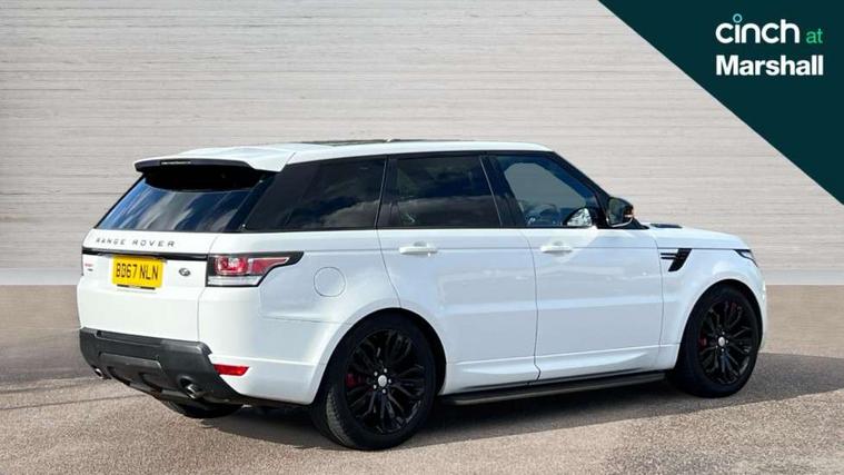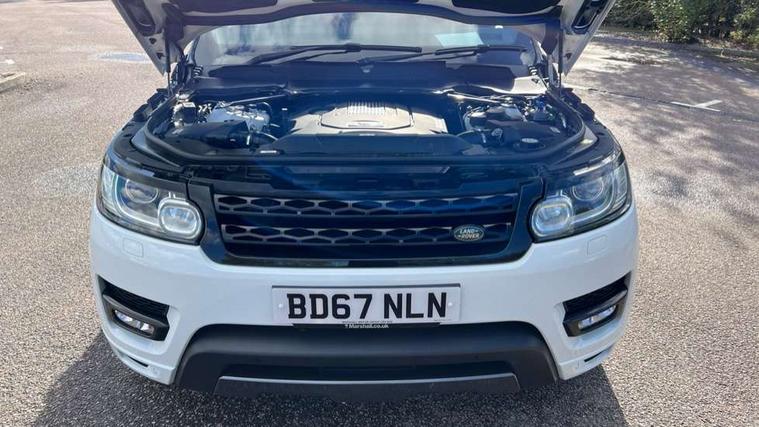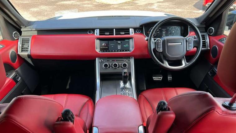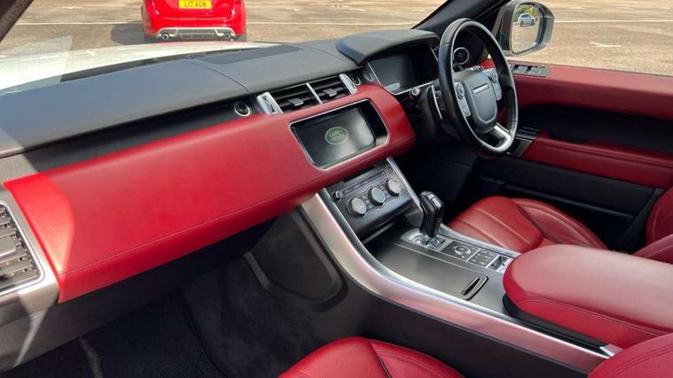 Bluetooth telephone connection, Dynamic response, Front parking aid with visual display, Gesture tailgate, HDD Premium navigation including voice control, TMC with touch screen and media storage, InControl secure, Mist sensor, Push button starter, Rear park distance control, Speed sensitive power steering, TFT Virtual Instrument Panel, Traffic sign recognition, Trip computer, Adaptive dynamics, All terrain progress control, Diesel particulate filter, Electronic air suspension, Terrain Response 2 Auto, Terrain Response 2 with dynamic program, Twin speed transfer box, Bluetooth audio streaming, DAB Digital radio, InControl protect, USB/aux input socket, Adaptive brake lights, Auto dimming rear view mirror, Daytime running lights, Door/quarter lights in toughened plate glass, Electric front/rear windows/one touch operation, Electric heated, adjustable, folding door mirrors with memory + approach lamp, Follow me home headlights, Front fog lights, Gloss black exterior trim, Headlight washers, Heated rear window, Heated washer jets, Heated windscreen, Illuminated aluminium treadplates with Range Rover lettering, Laminated front side windows, Laminated windscreen, LED rear lamps, Rain sensor windscreen wipers, Rear wash/wipe, Remote window closing, Trailer stability assist, Twin bright tailpipes, 2 way active front head restraints, 2 way rear head restraints, Auto air recirculation, Centre armrest with cubby box, Climate control memory, Driver's footrest, Front and rear cupholders, Front door storage bin, Front map lights, Front seat back map pockets, Front stowage pocket, Front/rear passenger grab handles, Glovebox, Isofix child seat preparation, Luggage compartment lighting, Multifunction steering wheel, Oxford perforated leather, Pollen filter, Premium Noble Plated Paddle Shift, Reach/rake electric adjustable steering column + entry/exit tilt away, Rear centre armrest, Roller blind loadspace cover, Sports pedals, Three 12V accessory power outlets, InControl connect Pack - Range Rover Sport, 3 point seatbelts on all seats, ABS + EBD + EBA, Auto lock system when vehicle in motion, Auto locking differential, Autonomous emergency braking, Cornering brake control (CBC), Curtain airbags, DSC - Dynamic Stability Control, Dual stage driver/passenger airbags, Electric child locks, Electronic parking brake, Electronic traction control, Front seatbelt pretensioners, Front side airbags, Height adjustable front seatbelts, Hill descent control, Low traction launch, Roll stability control, Seatbelt warning, Torque vectoring brake, Tyre pressure monitoring system, Keyless entry, Locking wheel nuts, Perimetric and volumetric anti theft alarm, Remote locking,