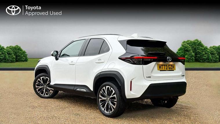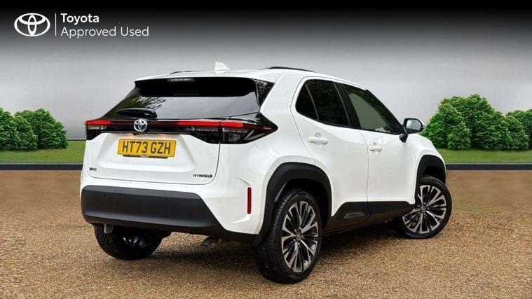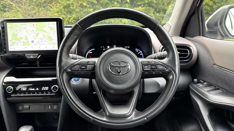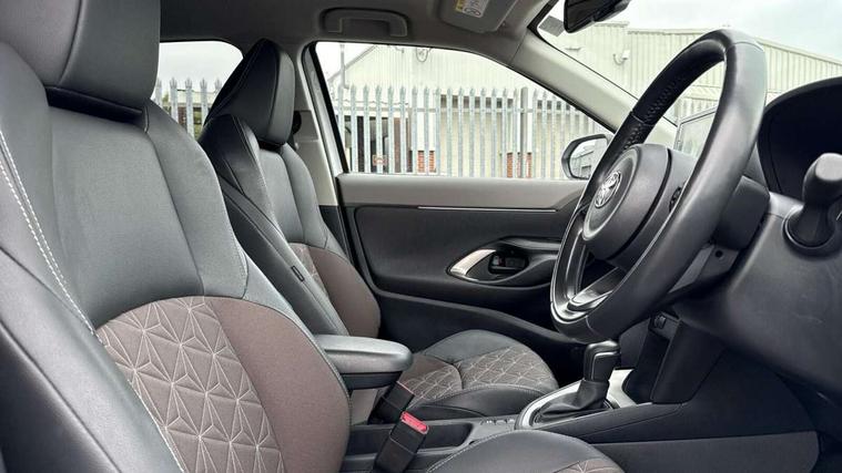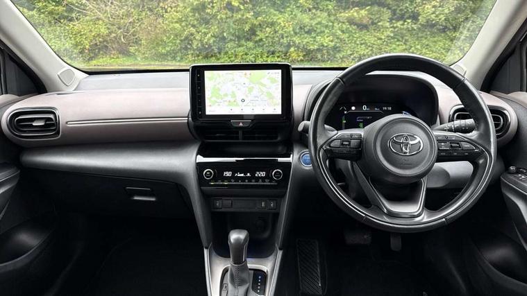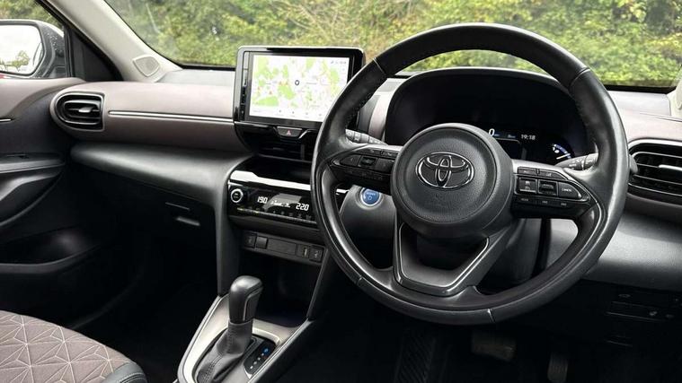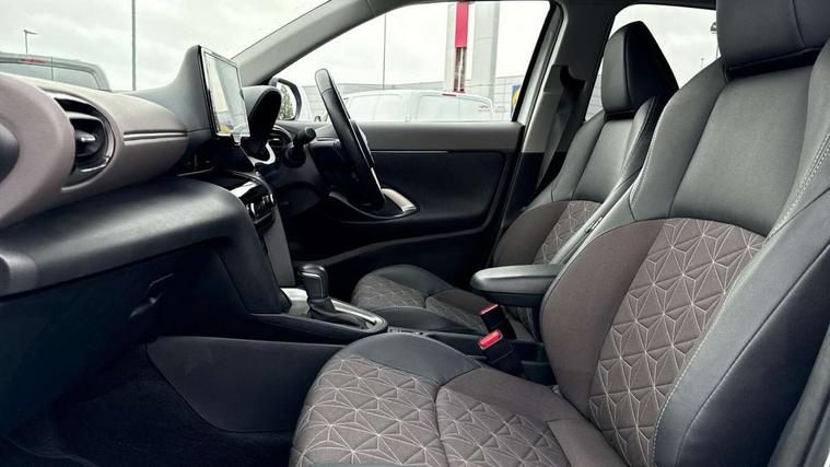 10.5" Multimedia display screen, 10.5" Toyota smart connect+ with navi multimedia system with wireless Smartphone integration incl Apple CarPlay, 360 degree panoramic view monitor, 7" Multi information display screen, Adaptive cruise control, multi info switches on steering wheel, Adjustable speed limiter, Advanced parking assist, Blind spot monitoring, Bluetooth connectivity, Color multi-information display, Digital speedometer, Digital tachometer, Drive mode selector, Driver attention alert system, Dynamic guide lines on reversing camera, eCall emergency system, Electric power steering, Emergency driving stop system, Full range intelligent adaptive cruise control, Hybrid system indicator, Intelligent front and rear parking sensors with clearance sonar and automatic braking, Intersection turn assist, Key reminder warning, Lane change assist, Lane departure warning, Lane trace assist, My T Connected services, Power tailgate, Pre-collision system enhanced with emergency steering assist, Rear cross traffic alert with brake assist, Remote boot door release in cabin, Road sign assist - RSA, Safe exit assist, Telephone switch on steering wheel, Wireless Mobile Phone Charger, Steering assisted vehicle stability control, 6 speakers, DAB Digital radio, Front USB Type-C connector, Front USB-C device charger, 3rd brake light, Acoustic windscreen glass, Anti-jam protection on power windows, Auto dimming rear view mirror, Auto high beam [AHB] with on/off switch, Auto intermittent windscreen wipers, Automatic headlights, Automatic headlights cut-off, Automatically retractable door mirrors, Black door moulding, Black lower front grille, Black protection moulding on side doors, Black roof rails, Black wheel arch mouldings, Body colour door handles, Body colour front bumper, Body colour rear bumper, Electric adjustable heated door mirrors, Follow me home headlights, Front and rear electric windows with auto up/down function, Gloss black upper front grille, Headlight cut off reminder, Indicators integrated on door mirrors, Intermittent rear wiper, Kick activated power back door, LED daytime running lights guide, LED front fog lights, LED front light guide, LED Indicators, LED projector headlights, LED rear lights with sequential indicators, Manual headlight levelling, Meshed upper front grille, Noise reduction layer on windscreen, Privacy glass, Rain sensor, Rear side wing doors, Rear spoiler, Rear window defogger, Shark fin antenna, 12v power outlet - front, 12V power point in boot, 2x Rear coat hooks, 3 seat bench in 2nd row, 3 spoke leather steering wheel, 40/60 split deckboard, 40:20:40 split folding rear bench seat, Adjustable rear headrests, Adjustable speed limiter switch on steering wheel, Boot light, Central armrest, Driver and front passenger personal lights, Driver and front passenger Whiplash injury Lesseing seats, Driver and passenger seatback pockets, Dual zone automatic air conditioning, Fabric door trim, Front console box, Front cup holders, Front door pockets, Front head restraints, Front sport seats, Front/rear assist grips, Gear shift indicator, Grey roof lining, Heated driver and passenger seats, Heated steering wheel, Height adjustable driver's seat, Height adjustable front passenger seat, Hooks for luggage holding belts, ISOFIX child restraint system, Lane departure alert switch on steering control, Leather gearshift, LED centre room light, Light on driver and passenger sun visor, Manual telescopic and tilting steering wheel, Mirror on driver and passenger sun visor, Nanoe-X air purifier, Partial synthetic leather upholstery, Pollen air filter, Power adjustable lumbar support on driver seat, Rear cup holders, Rear door pockets, Rear head restraints, Remote air-conditioning system, Single compartment glovebox, Single front passenger seat, Soft tonneau cover, Storage box under boot floor, Voice recognition switch on steering wheel, White ambient lighting in centre console, White ambient lighting in footwell, White ambient lighting on front doors, Yaris cross floor mats, Tech pack - Yaris Cross, 3x3 point rear seat belts, ABS+EBD+Brake assist, Downhill Assist Control (DAC), Driver and passenger central airbags, Driver and passenger front airbags, Driver and passenger side airbags, Electronic parking brake, Emergency brake light system (EBS), Front seat belt reminder, Hill start assist control (HAC), Passenger airbag on/off switch, Pre-collision system with pedestrian and cyclist detection, Rear door child safety locks, Rear passenger side airbags, Rear seat belt reminder, Traction control, Tyre pressure warning system, Immobiliser, Intrusion alarm, Keyless smart entry with push button start, Power door locks, Power passenger window lock, Remote door lock, Gloss black side air vent surrounds, Tyre repair kit,