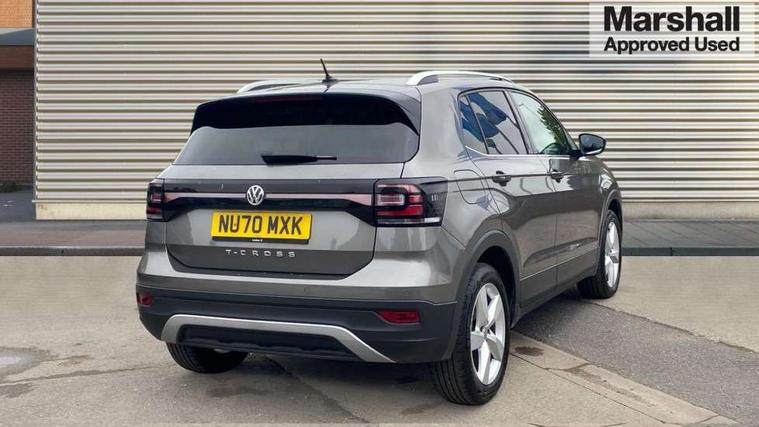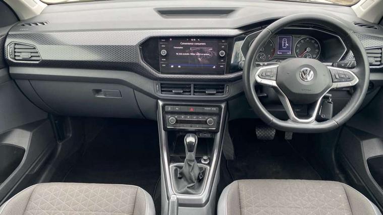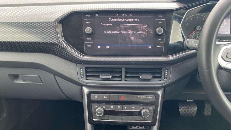 'Lights On' Reminder warning buzzer, Adaptive cruise control including front assist, forward collision warning, autonomous emergency braking, speed limiter, Discover media navigation system with 8" display including streaming and internet, Driver alert system, eCall emergency call system, Lane assist, Multifunction computer with visual gear change recommendation for fuel consumption, Power assisted speed sensitive steering, Speedo, rev counter, electronic odometer, trip, service interval display, exterior temperature and fuel gauge, Stop/start system, Warning sound and light for doors and tailgate open, Warning sound and light for front seatbelts unfastened, We Connect Go Dongle, Wireless Car net app connect with Apple CarPlay, combined functionality of Apple CarPlay/Android Auto and MirrorLink, Battery regeneration during braking, Misfuel prevention device, 2x USB connection with USB charging sockets and in rear centre console, Diversity antenna for FM reception, Premium USB cable for Apple or Android smartphone compatibility, Automatic dimming interior rear view mirror, Automatic hazard lights activation under emergency braking, Body colour door handles, Body coloured bumpers, Dusk sensor + automatic driving lights, Front and rear electric windows, Front fog lights with static cornering function, Galvanised body, Heated rear window, High level 3rd brake light, LED dipped and main beam headlights with automatic range adjustment including separate unique signature LED daytime running lights, Lower door sills and door pillars in black, Manual coming/automatic leaving home lighting function, Radiator grille with high gloss surface and chrome strip, Rain sensor, Rear lights incorporating LED technology, Rear window aerial, Rear windscreen washer and wiper with interval delay, Reflectors in all doors, Silver roof rails, Tailgate with integrated roof spoiler, Windscreen wipers/ intermittent wipe + 4 position delay, 12V Accessory socket in centre console, 2 Front and rear reading lights incorporating LED technology, 2 Zone electronic climate control with automatic air recirculation, 3 rear head restraints and 3 rear three point seat belts with ECE label, 60/40 split folding rear seat backrest, Drawer under drivers seat, Driver and front passenger sunvisor with vanity mirror, Driver's sunvisor with ticket holder, Dust and pollen filter, Front + rear carpet mats, Front centre armrest with storage compartment, Front seat back storage pockets, Glovebox, Heating and fresh air system with 4 stage blower, Height/reach adjust steering wheel, Instrument lighting white adjustable panel illumination, Interior light with delay, Isofix child seat preparation for 2 rear child seats, Luggage compartment cover, Luggage compartment lighting, Moveable and foldable Rear bench seat, Storage compartment in drivers and front passengers door, Variable boot floor, Composition Media infotainment system pack - T cross, Anti-lock Braking System (ABS) with Hydraulic Brake Assist (HBA), Automatic post collision braking system, Driver and front passenger safety-optimised head restraints, Drivers and Front Passengers airbags with front passengers airbag deactivation switch, ESC with EDL, ASR, EDTC and trailer stabilisation function, Extended and proactive pedestrian protection, Front and rear curtain airbags, Front seat side impact airbags, Height adjustable 3 point automatic front seatbelts with pretensioners, Hill start assist, Pre crash preventive occupant protection, Rigid safety cell with front and rear crumple zones, Tyre pressure loss indicator, Volkswagen roadside assistance, Alarm with interior protection and deactivation via infotainment system, Child security locks in rear doors, Remote tailgate unlocking using key fob,