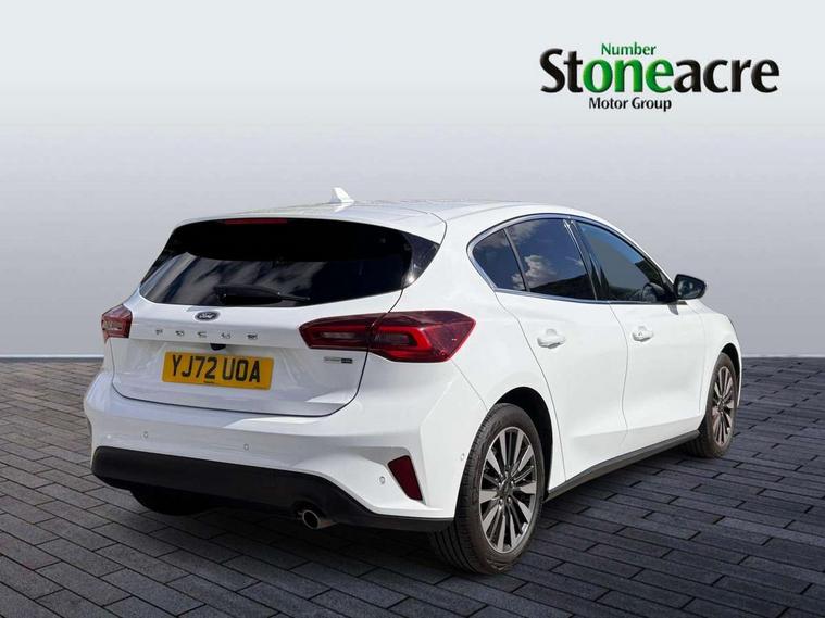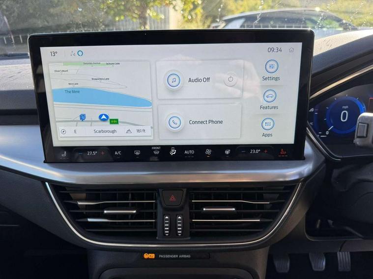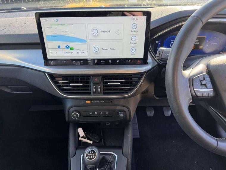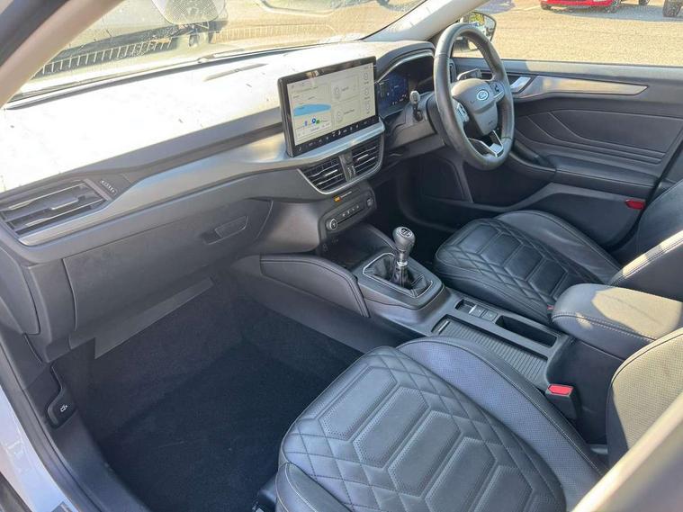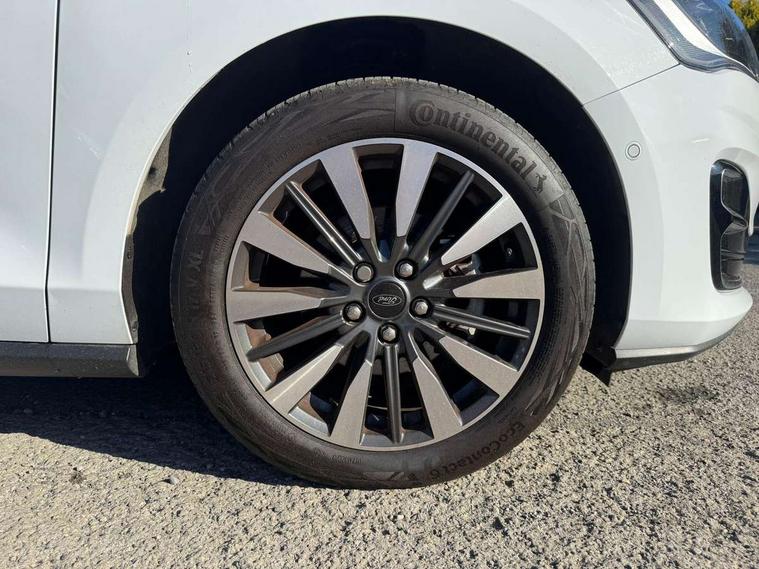12.3" Digital instrument cluster, Bluetooth system, Digital clock, Easy fuel capless refuelling system, Eco mode, Ford SYNC4 Nav with 13.2'' touchscreen, DAB, Emergency Assistance, Apple Carplay & Android Auto, B&O Premium Audio with 10 speakers, FordPass Connect, Lane keeping system - lane keeping alert and lane keeping aid, PAS, Rev counter, Selectable drive mode, Service interval indicator, Trip computer, Wireless charging pad, 2 USB ports, Auto headlamps (on/off), Body coloured door handles, Electrically operated front and rear windows with one touch opening and closing, Electrically operated heated power fold door mirrors with puddle lamp with side indicators, Front variable intermittent wipers with electric wash, Grille with chrome bars and self colour surround, Heated rear window, LED daytime running lamp, LED rear lamps, LED third brake light, Privacy glass, Quickclear heated windscreen, Rain sensor, Rear side wing doors, Tailgate wash/wipe, 3 rear headrests, 3 seat bench in 2nd row, Dual zone electronic air temperature control, Full sensico premium upholstery, Height adjustable front headrests, Isofix child seat preparation, Load through ski hatch, Manual 2-way passenger seat adjust, Power 4-way driver seat adjust, with power lumbar adjust, Reach + rake adjustable steering column, Single front passenger seat, Winter pack - Focus, 3x3 point rear seatbelts, ABS+Electronic Brake force Distribution, Auto hold function, Driver airbag, EDL traction control, Electronic parking brake, Electronic stability control, Front and rear seatbelt reminder, Front inertia reel height adjustable seatbelts with pre-tensioners, Front passenger airbag, Front side airbags, Passenger airbag deactivate switch, Post collision braking, Pre collision assist with autonomous emergency braking and pedestrian/cyclist detection, Remote/power child rear door locks, Side curtain airbags, Three rear inertia reel lap/diagonal seatbelts, Tyre pressure monitoring system, Keyless entry and keyless start, MyKey system, Remote central locking & engine immobiliser, Thatcham alarm with power door dead locks, 17" 5x3 spoke alloy wheels with Pearl grey machined finish with mini spare wheel,
