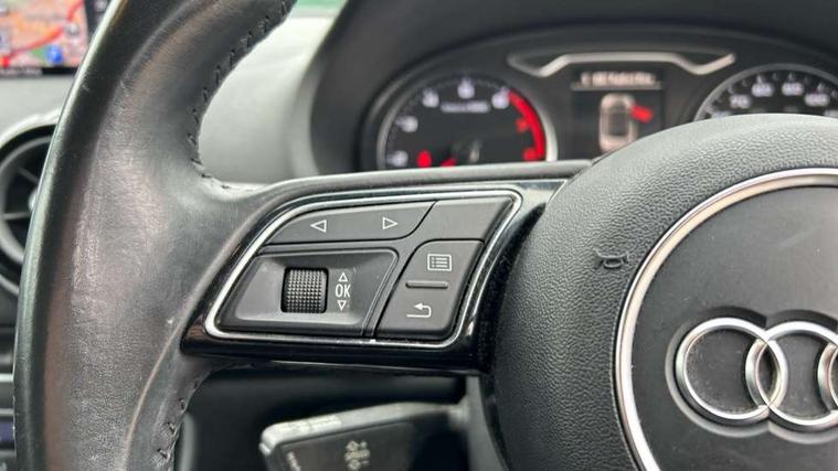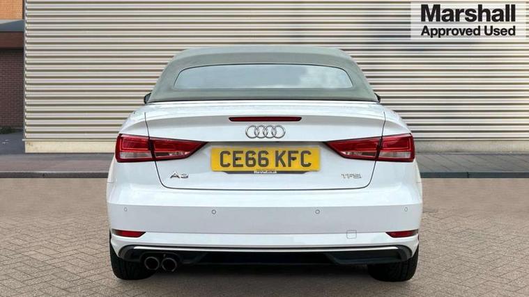 Audi connect, Audi smartphone interface, Bluetooth interface, Colour driver's information system display, Rear parking sensors, Service interval indicator, 2 USB ports, Audi music interface, DAB Digital radio, Aluminium side window trim, Automatic lights and wipers, Body colour bumpers, Body colour door mirrors with integral indicators, Chrome exhaust tailpipes, Electric operated/heated door mirrors, Front and rear electric windows, Fully automatic acoustic hood, Heated rear window, Heated windscreen washer jets, LED daytime running lights, Sport specific side air inlet grille and diffuser insert, 2 height adjustable rear headrests, 4 lashing points to secure luggage, 50/50 split folding rear seat, Adjustable front armrest, Aluminium door sill trims, Driver/passenger sunvisors, Dual zone electronic climate control, Front sports seats, Front/rear floor mats, Height adjustable front seats, Height/reach adjustable steering column, Illuminated glovebox, Illuminated luggage compartment, ISOFIX child seat preparation+airbag deactivation, Storage compartment in centre console, Storage compartments in doors, Light and rain sensor pack - A3 Cabriolet, 3 point seatbelts on all seats, ABS/EBD, Active bonnet, Active front headrests, ASR, Automatic roll over protection, Driver and passenger side airbags, Driver/Front Passenger airbags, Drivers knee airbag, EDL, Electromechanical parking brake, ESC - Electronic Stability Control + traction control, Front passenger airbag deactivation, Seatbelt warning, Tyre pressure monitor, Warning triangle and first aid kit, Anti theft alarm, Anti-theft wheel bolts, Immobiliser, Remote control central locking, Aluminium air vent surrounds, Aluminium trim elements, Space saver spare wheel,
