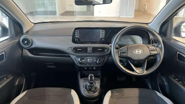 Apple car play/Android Auto, Bluelink mobile remote connectivity, Bluetooth connectivity with voice recognition, Cruise control, Driver attention alert system, eCall emergency call system, Forward Collision-Avoidance Assist (FCA) - Pedestrian/Cyclist, Front USB-C charging and USB-A data, Full-width 4.2" LCD instrument cluster, Intelligent speed limit assist, Lane departure warning system with lane keep assist - LKAS, Lane follow assist, PAS, Rear parking sensors, Rear view camera with guidelines, Roadside assistance, Start/Stop function, Tailgate, Trip computer, 2 front/2 rear speakers, Rear USB-C device charger, Steering wheel audio, phone and cruise controls, 1 speed non intermittent rear windscreen wiper, Black finish on B pillars, Body colour door handles, Body coloured bumpers, Body coloured door mirrors, Electric front windows, Electric rear windows, Electrically adjustable and heated door mirrors, Flat metal emblem, Front grille in matte black, Front intermittent wipers, Halogen daytime running lights, Halogen headlights, Headlights inner with Black Blade design, Heated rear window, High beam assist, Indicator light on door mirrors, Rear roof spoiler with integrated LED brake light, Rear side wing doors, 12v power outlet - front, 3 seat bench in 2nd row, 60/40 split folding flat to floor rear seats, Air conditioning, Auto light control, Bottle holders in front/rear doors + front centre console, Cabin and luggage compartment interior lighting, Cloth upholstery, Driver + passenger vanity mirrors, Driver's seat height adjustment, Driver/passenger sunvisors with ticket holders, Floor mats, Front door pockets, Front Head Restraints - Vertical and Horizontal Adjustment, Glove compartment, Height adjustable steering column, Isofix child seat preparation, Leather multifunction steering wheel, Rear door pockets, Single front passenger seat, Vertical adjustment rear head restraints, 3x3 point rear seatbelts, Airbags - front, front side and curtain airbags, Anti-lock brake system (ABS), Autonomous emergency braking (AEB) with forward collision warning system, Brake assist function, Childproof rear door locks, Electronic stability control, Front and rear seatbelt reminder, Front seatbelt pretensioners, Hill start assist control (HAC), Passenger airbag deactivate switch, Traction control, Tyre pressure monitoring system, Immobiliser, Perimeter alarm, Rear occupant alert, Remote central locking, Second remote key, Speed sensitive auto door locking, 15" Alloy wheels, Tyre repair kit,