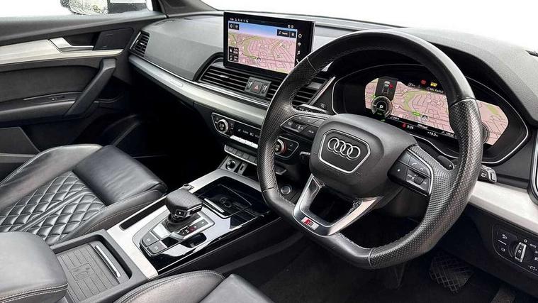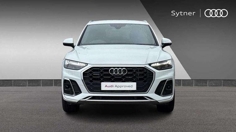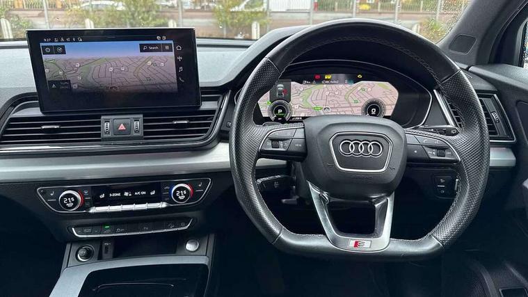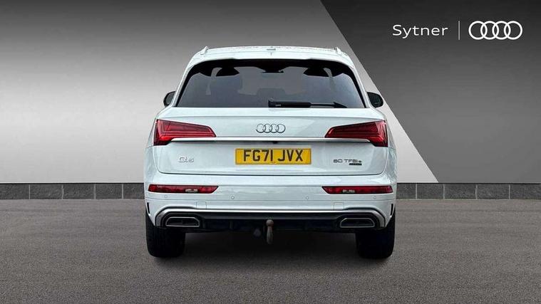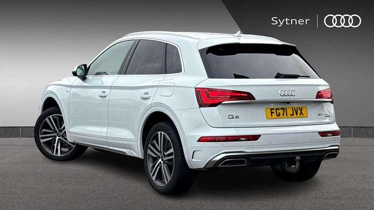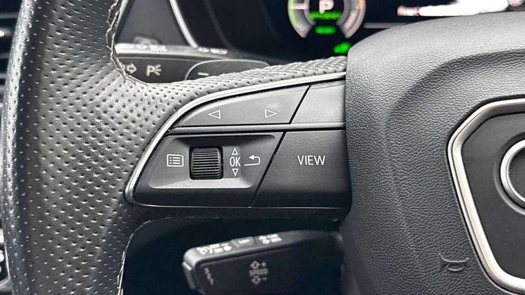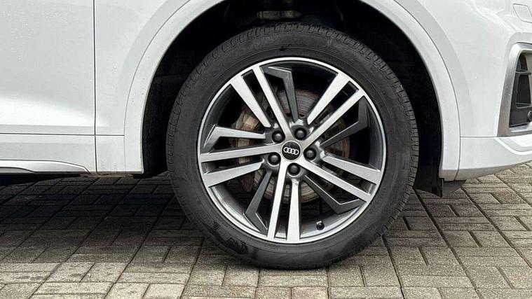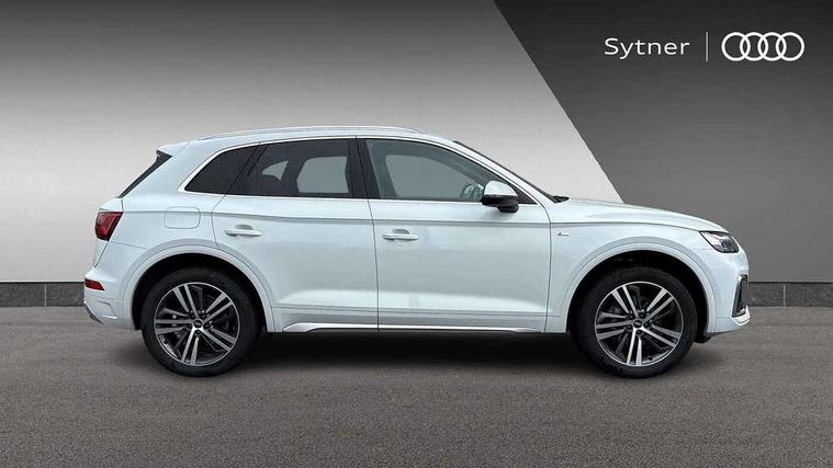 Audi connect safety and service (e-call), Audi connect with Amazon Alexa Integration, Audi drive select, Audi virtual cockpit plus with 12.3" screen and three different layout designs, Audi wireless smartphone interface, Automatic start-stop system with coasting functionality and efficiency programme, Bluetooth interface, Electro - mechanical power assisted steering, MMI navigation plus with 10.1" touch screen, Power tailgate, Reversing camera, Service interval indicator, Voice control system with Audi hotword activation "Hey Audi", 3 pin 10 amp domestic charging cable, Dynamic suspension, Quattro on demand, Type 2 mode 3 22kW 32 amp charging cable, Type 2 socket for AC charging, 2 x USB charging port with aux input socket, DAB Digital radio, Acoustic windscreen, Aluminium roof rails, Audi matrix LED headlights with dynamic front and rear indicators, Auto dimming rear view mirror, Automatic headlights and windscreen wipers, Body colour bumpers, Body colour door mirrors, Body colour rear diffuser with matt aluminium silver surrounds, Body colour underbody protection, Chrome plated exhaust trims, Door sills in Selenite silver, Electric adjustable/heated/folding door mirrors, Front air inlet surrounds in aluminium, Front and rear electric windows, Front radiator grille in honeycomb design, Headlight washers, Lower bumpers painted in contrast Manhattan grey, Rear chrome trim strip below lights, Rear privacy glass and rear side windows, Rear spoiler, Rear wiper, Roof bars, S Line badges on the front wings, S Line front and rear bumpers, S Line side skirts, 3 rear headrests, 40:20:40 split folding rear seat with rear centre armrest, Black cloth headlining, Comfort front centre armrest, Contrast stitching on seats, steering wheel and gear lever gaiter, Deluxe 3 zone electronic climate control, Front/rear floor mats, Gear lever in black leather, Heated front seats, Height adjustable front head restraints, Height/reach adjustable steering column, Illuminated door sill trims with S logo, ISOFIX child seat mounting and top tether, Manual seat adjustment with 4-way electric lumbar support, Rear seat bench plus, Sunvisors with vanity mirrors, Trunk roller cover, High gloss pack - Q5, LED interior light pack - Q5, 3 point seatbelts on all seats, 6 airbags - Driver, front passenger, curtain and side airbags, Electrically operated child locks on rear doors, Electromechanical parking brake, Electronic stabilisation control including ABS, ASR and EDL, Front passenger airbag deactivation, Hill descent control, Hill hold assist, Multi collision brake assist, Pop-up bonnet for pedestrian protection, Pre sense city, Seat belt force limiter, Seatbelt monitoring, Tyre pressure warning, Warning triangle and first aid kit, Anti theft alarm, Anti-theft wheel bolts, Keyless Go access/ignition system, Matt brushed aluminium inlays, Tool kit, Tyre repair kit,
