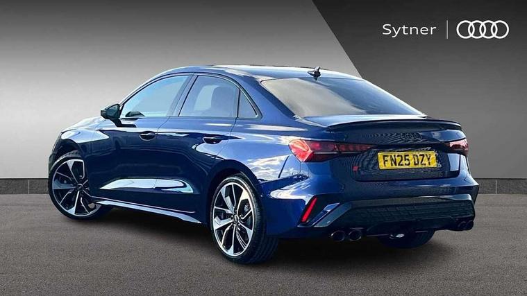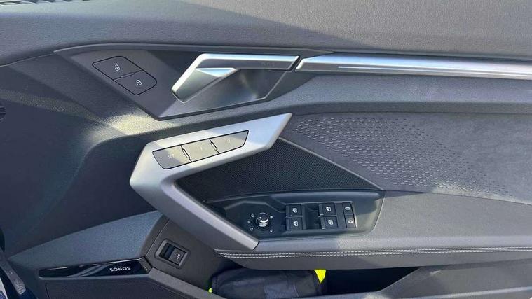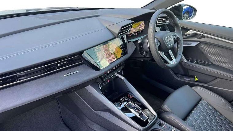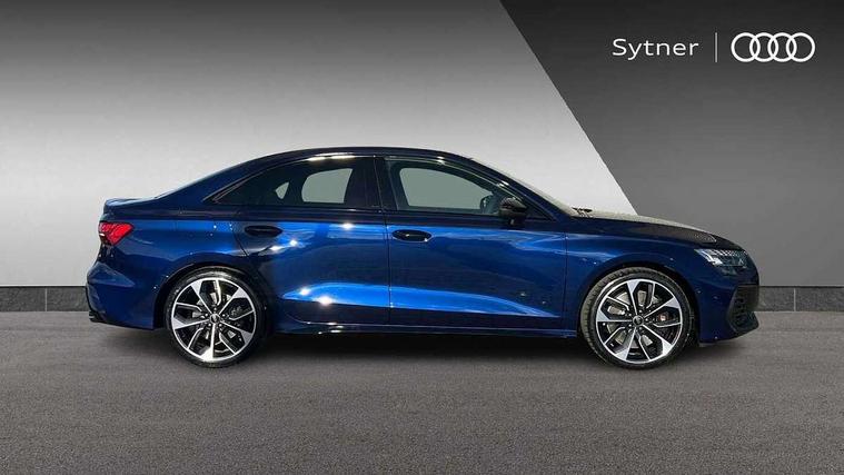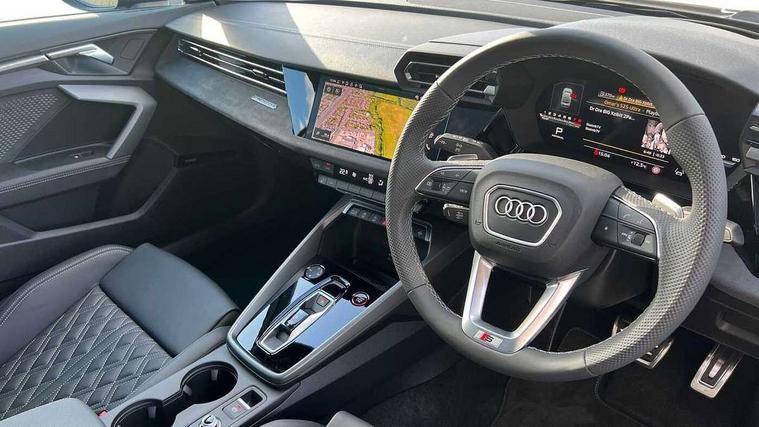 Adjustable speed limiter, Audi drive select, Audi smartphone interface with app store includes wireless Apple carplay, Android auto and Amazon alexa integration, Audi virtual cockpit plus - 12.3" full HD resolution dynamic digital instrument cluster, Automatic start/stop system with recuperation, Bluetooth interface, Camera based traffic sign recognition, Collision avoidance assistant, Distraction and Fatigue warning, e-Call (emergency call), Lane departure warning system, MMI Navigation Plus with high resolution 10.1" colour touch screen display, Park Assist with parking system Plus, Progressive steering, Service indicator, Trip computer, Voice control system with natural language interaction, quattro permanent all-wheel drive with torque splitter, S sport suspension with spring damper adjustment and lowering by 15mm, Audi Phonebox light with wireless charging, DAB Digital radio, USB ports with charging function in the rear, Anthracite grey Audi rings (front and rear), Audi Beam uses LEDs to project the rhombus S logo onto the ground as you exit your S3, Auto dimming frameless rear view mirror, Black accents front and rear bumpers including air inlets, Black accents in front grille and frame, Black accents window trims strips, Electrically adjustable/heated/folding/auto dimming door mirrors with integrated LED indications + kerb view function for passenger side, Exterior model badging, Front electric windows, Headlight washers, Heat insulating glass windscreen, Illuminated door sills with aluminium inserts at the front with S logo, LED 3rd brake light, LED daytime running lights, LED headlights with LED rear lights and dynamic rear indicators, Light and rain sensors, Privacy glass - dark tinted rear window, rear door and side windows, Rear boot, Rear electric windows, Rear side wing doors, S grille, S3 front bumper with S specific air intake grilles, 12V socket and storage compartment in front centre console, 3 seat bench in 2nd row, 3 spoke flat bottomed leather multifunction sport steering wheel with gear shift paddles, 3-zone deluxe automatic air conditioning, 4 way electrically adjustable lumbar support for driver and front passenger, 40/20/40 split folding rear seat bench, Black cloth headlining, Fine Nappa leather upholstery with front sports seats S embossed logo, Front and rear centre armrest in artificial leather, Front and rear centre armrest in artificial leather with contrasting stitching on armrests and instrument panel, Front and rear headrests, Front/rear floor mats, Heated front seats, Height and reach adjustable steering wheel, Manual boot compartment lid, Manually adjustable front seats, Rear cup holders, S badging on the steering wheel, Seat side bolsters, Single front passenger seat, Stainless steel pedals and front footrest in black, Aluminium interior elements pack - A3, Extended ambient lighting package Pro - S3 Black edition, Storage package - A3 Saloon, Technology package - A3, 3x3 point rear seat belts, Driver and front passenger airbag with passenger airbag deactivation, Electronic Stabilisation Control (ESC) including ABS, ASR and EDL, First aid kit with warning triangle and 2 safety vests, Front side airbags with head airbags and interaction airbag, Hill hold assist, Pre-sense front with pedestrian and cyclist detection, Seatbelt monitoring, Tyre pressure loss indicator, Anti theft alarm, Anti-theft wheel bolts, Electronically operated child locks, Immobiliser, Remote central locking with safelock, Inlays in black dynamica microfibre, Tyre repair kit,