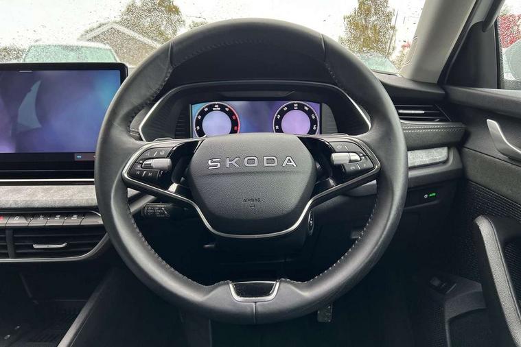 1x USB Typc C port in rear view mirror, 4x USB Type C ports - 2x in front centre console and 2x in rear (45W), Drive mode selection, Driver fatigue sensor, eCall emergency system, Electro-mechanical power steering, Front assist system, Traffic jam assist, Traffic sign recognition, Turn Assist, Virtual Cockpit - 10.25" digital display, Voice control system, Wireless charging (15W) with cooling function, Wireless SmartLink for Apple CarPlay and Android Auto, 13" touchscreen display with navigation, DAB Digital radio, Aero front windscreen wipers with intermittent function, Auto dimming rear view mirror, Body colour bumpers, Body colour door mirrors and handles, Chrome grille surround, Chrome roof rails, Chrome strip in lower front bumper, Chrome window surrounds, Electric front and rear windows, Heated rear windscreen, High level third brake light, Ice scraper in fuel cap, LED daytime running lights, LED Headlights, Logo projection in front doors, Rain and light sensors, Rear fog light on one side, Rear privacy glass, Rear side wing doors, Rear spoiler, Rear window wiper, 12 volt socket in boot, 3 rear headrests, 3 seat bench in 2nd row, 4 foldable roof handles, Electric auxiliary air heater, Front head restraints, Heated front seats, Illuminated glovebox, Interior door handles in dark chrome, Jumbo Box storage, Luggage compartment lighting x2 lights, Mechanical rear seat release from boot, Single front passenger seat, Steering wheel in black leather with black stitching, Storage compartments in left and right of boot, Sun visors with mirrors, Sunglasses storage, Ticket holder, Umbrella in door panel, Unsplit rear bench seat, split folding backrest with centre armrest with cupholder, Comfort package - Octavia Estate, Simply clever package premium with Storage compartment under passenger seat - Octavia, 3x3 point rear seat belts, Alarm with interior monitoring, tilt sensor and back up horn, Curtain airbags and front side airbags, Driver and front passenger airbags, Drivers knee airbag, Electronic parking brake, ESC including ABS, EBV, MSR, ASR, EDS, HBA, DSR, Front central airbag, Hill hold assist, ISOFIX on front passenger seat and outer rear seats, Passenger airbag deactivate switch, Three point seat belts in front and rear, Two tone horn, Tyre pressure monitor, Visual and acoustic seat belt reminder, Warning reflectors in front door, Anti-theft wheel bolts, Keyless start/stop, Remote central locking, Chrome air vent surrounds,