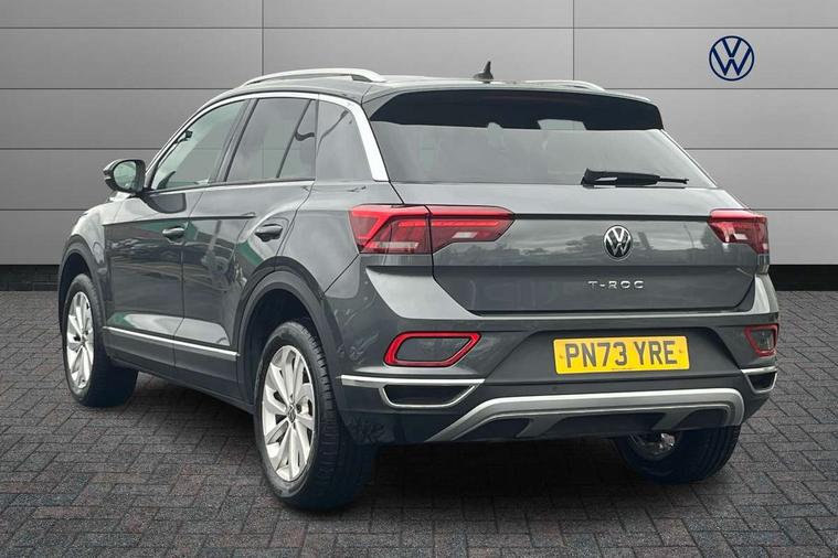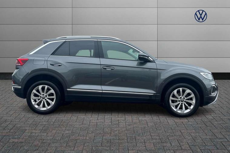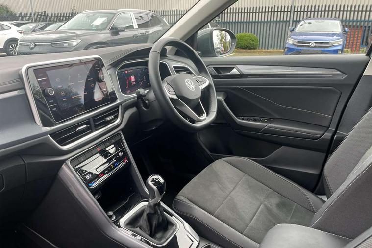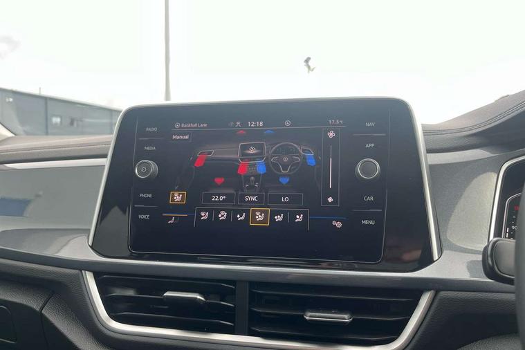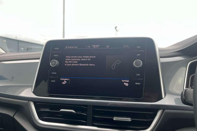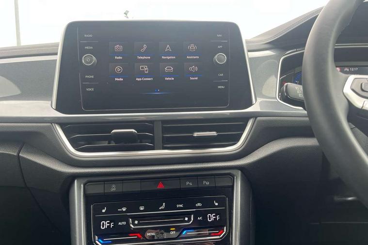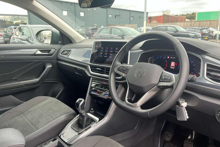 10.25" Digital cockpit pro, Bluetooth mobile phone interface, Driver alert system with fatigue detection, Driver tips and journey analysis, Emergency call service, Lane keeping system Lane Assist, Modified key software - reduce switch off time for key status change to Long no motion, Online services, Park assist including front and rear parking sensors, Service interval indicator, Tailgate/trunk lid release from outside, Think blue trainer driver tips and journey analysis, Warning sound and light for front seatbelts unfastened, Wireless app connect, Battery regeneration during braking, Start/stop function with battery regeneration, Diversity antenna for FM reception, Music playback - MP3, WMA and AAC files, Premium USB cable in choice of either Apple or Android smartphone compatibility, SD card slot, Simultaneous pairing of 2 compatible mobile devices, Title and cover art display, We Connect and We Connect Plus functionality, 3rd brake light, Auto dimming interior rear view mirror, Automatic hazard lights activation under emergency braking, Automatic headlight control with LED separate daytime running lights with coming/leaving home function, Body colour sports bumpers with silver metallic underbody fascia, Dynamic headlight range control with self adjusting whilst driving, Extended roof spoiler, Exterior mirrors aspherical on driver side, convex on front passenger side, External USB type C socket and charging sockets, Front windscreen wiper with intermittent wipe and 4 position delay, Heated rear window, LED rear combination lamps, LED rear number plate lights, LED tail lamp rear comination lamps, Light mode for poor weather, rain, fog or snow, Power windows with comfort operation and circuit breaker, Rain sensor, Rear exhaust tailpipe, Rear fog light on one side and reversing lights on both sides, Rear side wing doors, Rear wash/wipe with intermittent wipe setting, Remote electrically foldable door mirrors, puddle lights and reverse activated passenger's door mirror, 12V power socket in centre console, 3 rear head restraints, 3 seat bench in 2nd row, 4 load lashing points in luggage compartment, Air care climatronic air conditoning system with active combination filter and 2-zone temperature control, Chrome plated radiator grille inserts, air vent surrounds and light switch surrounds, Door and side trim panel with leatherette insert, Drawer under drivers seat, Front + rear carpet mats, Front centre armrest, Front comfort sports seats, Front cupholders x 2, Front footwell illumination, Instrument lighting, white adjustable panel illumination, Interior ambient lighting and surround lighting, Interior light delay, Isofix child seat preparation, Leather gearshift handle, LED interior light with switch off delay/dimmer and 2 front/rear LED reading lights, Load-through provision with cup holder when folded down ('Unsplit rear seat bench, split folding backrest, with centre armrest), Luggage compartment lighting, Non-folding front passenger seat backrest, Single front passenger seat, Storage compartment in left and right luggage area, Storage compartment in rear doors, Storage compartments in driver and front passenger doors, Sunvisors with illuminated vanity mirrors, Variable boot floor, height adjustable and removable, Driver assistance pack without proactive passenger protection - T-Roc, 3 point height adj front seatbelts + pretensioners, 3 point seatbelts in outer rear with ECE label, ABS, Child locks on rear doors, Driver and front passenger airbag with front passenger airbag deactivation, Driver and front passenger safety-optimised head restraints, Drivers seatbelt reminder, Electronic parking brake, Electronic Stability Control (ESC) inc EDL (Electronic Differential Lock) and ASR (Traction Control), Front and rear passengers curtain airbag system including front side airbags, Front assist with city emergency braking and pedestrian monitoring, Front seat side impact airbags, Predictive pedestrian protection, Rear disc brakes, Single tone horn, Tyre pressure loss indicator, Volkswagen roadside assistance, Anti-theft alarm system with interior monitoring, backup horn, and towing protection, Remote central locking with SAFELOCK, radio remote control with 2 remote control folding keys, Trims for alloy wheels,