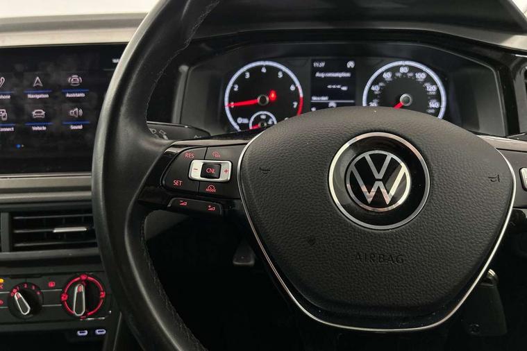 Cruise control + speed limiter, Digital clock, Driver alert system, Emergency call service, Multifunction computer plus, Power assisted speed sensitive steering, Speedo and rev counter, electronic odometer, trip, service interval display and fuel gauge, Start/stop system, Volkswagen connect, Warning buzzer and light for front seatbelts unfastened, Wireless app connect, Battery regeneration during braking, Galvanished body, Diversity antenna for FM reception, Front and rear 6 speakers, Black grille with chrome surround, Black radiator grille with chrome louvres, Body colour bumpers, Body colour door handles, Body colour rear spoiler, Body coloured side sills, Electric front windows, Electrically adjustable and heated door mirrors with reverse activated kerb view adjustment on passenger's side, Front windscreen washers and wipers with 4 speed intermittent delay, Heated rear window with auto timer, High level 3rd brake light, LED daytime running lights, LED rear number plate lights, Rear electric windows, Rear windscreen washer and wiper with interval delay, reverse activated, 2 bag hooks in luggage compartment, 2 front and 2 rear reading lights, 2 front cupholders and 12 V socket with cover, 3 rear head restraints, 4 grab handles, 60/40 split folding rear seat, Centre console storage with open storage compartment, Chrome interior door handles, Driver and front passenger seat height adjustment, Driver and front passenger sunvisors with illuminated vanity mirrors, Dust/pollen filter, Folding rear seat backrest, Front head restraints, Front seat backrest storage pockets, Gear lever gaiter in black trim surround, Glovebox, Handbrake grip button in chrome effect, Height/reach adjustable steering column, Instrument lighting, adjustable panel illumination, Interior light with delay, Isofix Preparation 2 Rear child seats, Leather gear knob and handbrake grip, Leather multifunction steering wheel, Luggage compartment cover, removable, Luggage compartment lighting, Luggage compartment with variable load floor, Storage compartment in front doors, Storage compartment in rear doors, Storage compartment under front seats, Sunglasses holder, 3 point height adj front seatbelts + pretensioners, 3x3 point rear seatbelts, ABS, Automatic post collision braking, Driver/front passenger airbag, Drivers and front passengers safety optimised head restraints, ESP with EDL + ASR, Front and rear passenger curtain airbags, Front disc brakes and rear drum brakes, Front passenger airbag deactivation, Front seat side impact airbags, Hill hold control, Hydraulic Brake Assist (HBA), Single tone horn, Tyre pressure monitoring system, Alarm with interior protection and deactivation via infotainment system, Electronic engine immobiliser, Remote central locking with 2 remote folding keys, Air vents in High gloss black, Limestone grey decorative inserts,