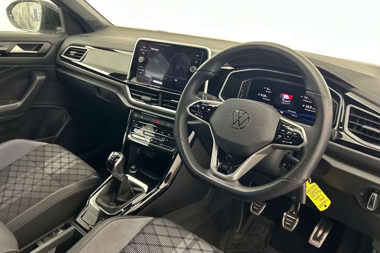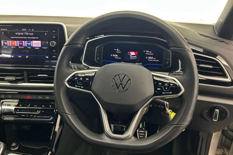 10.25" Digital cockpit pro, Bluetooth mobile phone interface, Driver alert system with fatigue detection, Driver tips and journey analysis, Emergency call service, Lane keeping system Lane Assist, Modified key software - reduce switch off time for key status change to Long no motion, Online services, Park assist including front and rear parking sensors, Service interval indicator, Tailgate/trunk lid release from outside, Think blue trainer driver tips and journey analysis, Warning sound and light for front seatbelts unfastened, Wireless app connect, Battery regeneration during braking, Start/stop function with battery regeneration, Diversity antenna for FM reception, Front and rear 6 speakers, Music playback - MP3, WMA and AAC files, Premium USB cable in choice of either Apple or Android smartphone compatibility, SD card slot, Simultaneous pairing of 2 compatible mobile devices, Title and cover art display, We Connect and We Connect Plus functionality, 3rd brake light, Auto dimming interior rear view mirror, Automatic hazard lights activation under emergency braking, Automatic headlight control with LED separate daytime running lights with coming/leaving home function, Extended roof spoiler, Exterior mirrors aspherical on driver side, convex on front passenger side, External USB type C socket and charging sockets, Front windscreen wiper with intermittent wipe and 4 position delay, Heated rear window, LED Plus headlamps, LED rear combination lamps, LED rear number plate lights, LED tail lamp rear comination lamps, Power windows with comfort operation and circuit breaker, R-Line design body coloured bumpers, Rain sensor, Rear exhaust tailpipe, Rear fog light on one side and reversing lights on both sides, Rear side wing doors, Rear wash/wipe with intermittent wipe setting, Remote electrically foldable door mirrors, puddle lights and reverse activated passenger's door mirror, 12V power socket in centre console, 3 rear head restraints, 3 seat bench in 2nd row, 4 load lashing points in luggage compartment, Air care climatronic air conditoning system with active combination filter and 2-zone temperature control, Black roof lining, Chrome plated radiator grille inserts, air vent surrounds and light switch surrounds, Door and side trim panel with leatherette insert, Drawer under drivers seat, Front + rear carpet mats, Front centre armrest, Front cupholders x 2, Front footwell illumination, Front reading light, Front scuff plates with R logo, Instrument lighting, white adjustable panel illumination, Interior ambient lighting and surround lighting, Interior light delay, Isofix child seat preparation, Leather gearshift handle, Load-through provision with cup holder when folded down ('Unsplit rear seat bench, split folding backrest, with centre armrest), Luggage compartment lighting, Single front passenger seat, Stainless steel pedals, Storage compartment in left and right luggage area, Storage compartment in rear doors, Storage compartments in driver and front passenger doors, Sunvisors with illuminated vanity mirrors, Variable boot floor, height adjustable and removable, Driver assistance pack without proactive passenger protection - T-Roc, 3 point height adj front seatbelts + pretensioners, 3 point seatbelts in outer rear with ECE label, ABS, Child locks on rear doors, Driver and front passenger airbag with front passenger airbag deactivation, Driver and front passenger safety-optimised head restraints, Drivers seatbelt reminder, Electronic parking brake, Electronic Stability Control (ESC) inc EDL (Electronic Differential Lock) and ASR (Traction Control), Front and rear passengers curtain airbag system including front side airbags, Front assist with city emergency braking and pedestrian monitoring, Front seat side impact airbags, Hill start assist, Predictive pedestrian protection, Rear disc brakes, Single tone horn, Tyre pressure loss indicator, Volkswagen roadside assistance, Alarm with interior protection, Anti-theft alarm system with interior monitoring, backup horn, and towing protection, Remote central locking with SAFELOCK, radio remote control with 2 remote control folding keys, Trims for alloy wheels,
