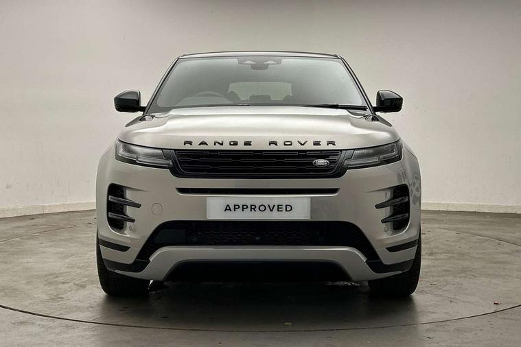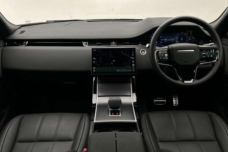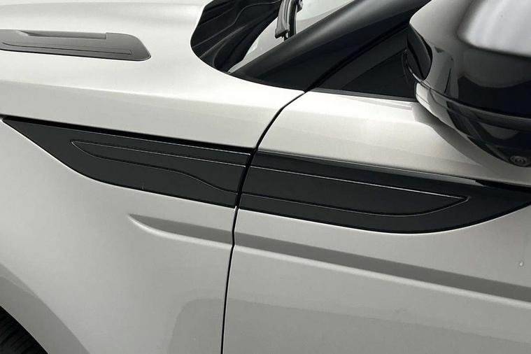 11.4" touch screen, 3D 360 degree surround camera with wade sensing, Adaptive cruise control, Android Auto, Apple car play, Blind spot assist, Bluetooth connectivity, Brake pad wear indicator warning light, Driver condition monitor, eCall emergency system, Eco mode, Electronic power assisted steering (EPAS), Front and rear parking aid, InControl remote, Interactive driver display, Land Rover InControl apps, Lane keep assist, Pivi pro connected includes diamond pivi variant, smart settings, connected navigation pro, nuance speech licence, Powered tailgate/boot lid, Rear collision monitor, Rear traffic monitor, Tailgate, Traffic sign recognition with adaptive speed limiter, Voice control system, Wireless device charging, All terrain progress control, Electric rear axle drive, Home charging cable, Large fuel tank, Passive suspension, Public charging cable, Terrain Response 2, Digital Audio Broadcast radio-DAB, Meridian sound system with 400W subwoofer and 11 speakers, Steering wheel mounted controls, Acoustic laminated windscreen, Auto dimming interior rear view mirror, Auto headlights, Auto high beam assist, Automatic headlight levelling, Black contrast roof, Electric windows with one touch open/close and anti trap, Fixed panoramic sunroof with powered sunblind, Flush deployable exterior door handles, Front and rear recovery eyes, Heated rear window with timer, Heated washer jets, Heated windscreen, LED headlights with signature DRL and LED tail Lights, Metallic paint, Power fold, auto-dimming, heated door mirrors with approach lights and auto dimming driver side, Privacy glass, Rain sensing windscreen wipers, Rear animated directional indicators, Rear fog lights, Rear side wing doors, Rear wiper, Tailgate spoiler, Third brake light, Winter wiper park position, 12 way driver memory and 10 way passenger electric front seats with 2 way manual headrest + 4 way lumbar support, 40:20:40 split folding rear seats with centre headrest and armrest, Bright metal pedals, Cabin lighting, Carpet mats, Chrome tread plates with range rover branding Includes stainless steel loadspace scuff plate with etched graphic, Customer configurable single point entry, Front and rear cupholders, Grained Leather upholstery, Heated front seats, Heated steering wheel, Isofix system on outer rear seats, Manually adjustable steering column, Overhead lighting console, Overhead stowage for sunglasses, Passive front head restraints, Rear air vents, Rear head restraints, Satin chrome gearshift paddles, Single passenger seat, Standard steering wheel with Moonlight Bezel, Sunvisors with illuminated vanity mirrors, Twin sliding front centre armrest, Two zone climate control, Black exterior styling pack - Evoque, Power socket pack 2 - Evoque, 3 rear 3 point seatbelts, Anti-lock braking system (ABS), Black brake calipers, Brake hold function, Customer configurable autolock, DSC - Dynamic Stability Control, Electronic brake force distribution, Electronic parking brake, Electronic traction control, Emergency braking, Front and rear seatbelt reminder, Hill descent control, Hill launch assist, Low traction launch, Occupant protection assist, Passenger seat occupant detector, Power operated child locks, Roll stability control, Six airbags - Driver and passenger airbags/driver knee airbag/front side airbag and curtain airbags, Torque vectoring brake, Tyre pressure monitoring system, Alarm, Immobiliser, Intrusion sensor, Keyless entry, Locking wheel nuts, Secure tracker pro, Black brushed aluminium finisher, 19" gloss black alloy wheels - Style 5136, All season tyres, Tyre repair system,