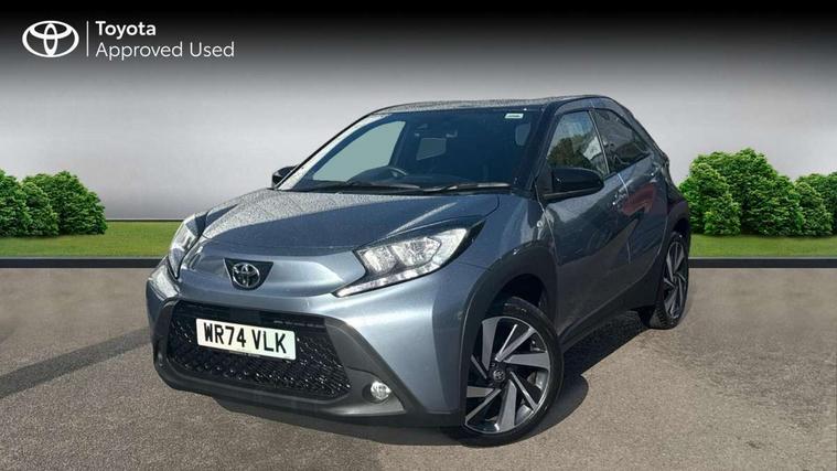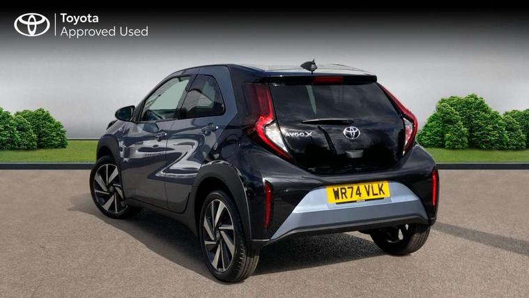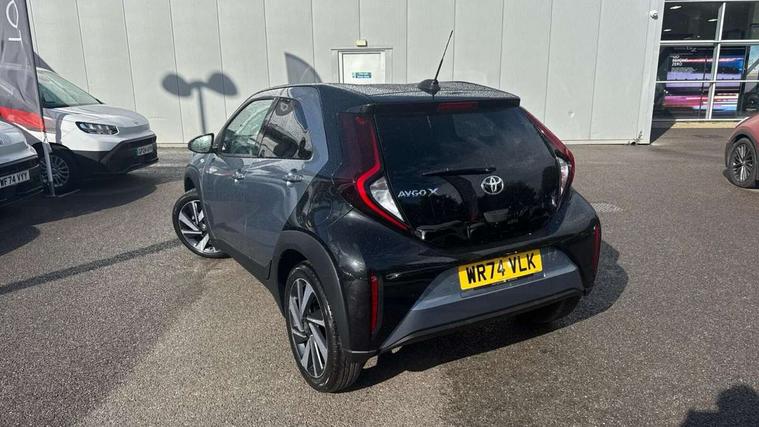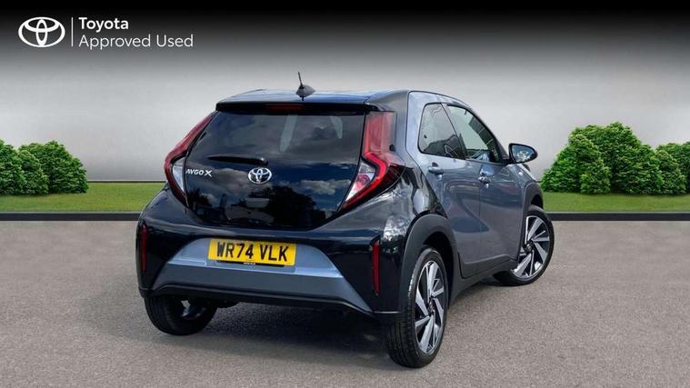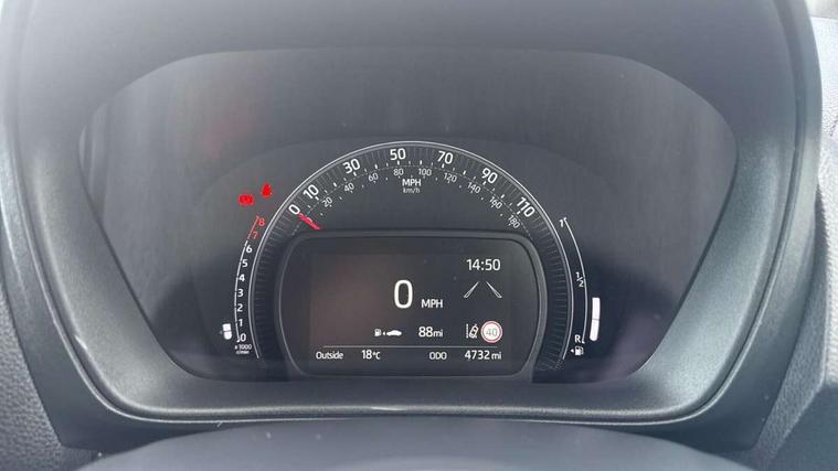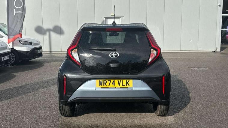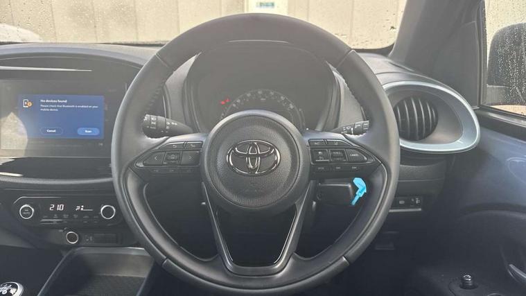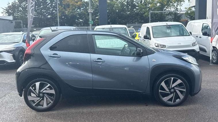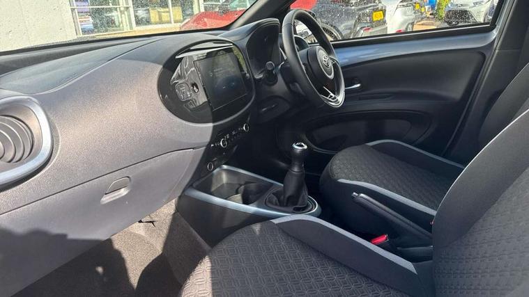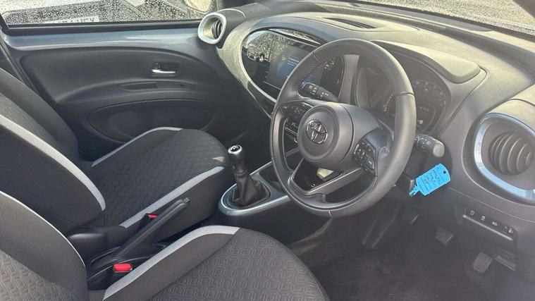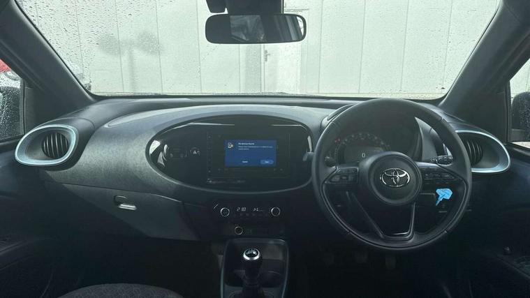 4.2" TFT colour screen, Adjustable speed limiter, Analogue speedometer, Bluetooth connectivity, Digital tachograph, Driver attention alert system, eCall emergency call system, Electric power steering, Intersection turn assist, Key reminder warning, Noise reduction kit, Pre collision system with emergency steering assist, Reversing camera with static guide lines, Smart phone integration with Apple car play/Android Auto, Speed limit display, Start and stop, Vehicle Stability Control (VSC), 4 speakers, 9" HD multimedia display touch screen with Toyota smart connect, DAB digital audio broadcast, USB connector, Auto headlights, Auto wipers, Automatic headlights cut-off, Bicycle towing hook, Black contrast roof, Black side protection mouldings, Black wheel arch mouldings, Body colour door handles, Body coloured front bumper, Boot door scuff plate, Eclipse black rear bumper, Electric heated door mirrors, Follow me home headlights, Front fog lights, Front power windows, Gloss black door mirrors, Gloss black upper front grille, Headlight cut-off reminder, LED daytime running lights, LED front light guide, LED High mounted stop lamp, Manual day/night rear view mirror, Manual headlight levelling, Pagoda roof, Power adjustable door mirrors, Power back door, Privacy glass, Projector halogen headlights, Rain sensor, Rear combination lights LED bulb type, Rear side wing doors, Rear windscreen defogger, Rear windscreen wiper, Short antenna, Variable intermittent windscreen wipers, 12v power outlet - front, 2 seat bench in 2nd row, 3 spoke leather steering wheel, 50/50 split folding rear seat, Adhesive roof headlining, Adjustable speed limiter switch on steering wheel, Audio and telephone switches on steering wheel, Auto air conditioning, Black insert on steering wheel, Black roof lining, Boot light, Centre room light, Chrome interior door handles, Chrome surround on air conditioning buttons, Clean air filter, Console box storage in body color, Fabric upholstery, Floor mats, Front and rear cup holders, Front head rest deco art, Front head restraints, Height adjustable driver seat, Intelligent adaptive cruise control switch on steering wheel, ISOFIX child restraint system on rear seats, Lane departure alert switch on steering wheel, Leather gearshift knob, Manual tilt steering wheel, Manually reclining and sliding driver seat, Manually reclining and sliding front passenger seat, Multimedia switches on steering wheel, Pollen filter, Rear door pockets, Rear head restraints, Satin silver insert on gear shift knob, Single compartment glovebox with lights, Single front passenger seat, Soft tonneau cover, Sun visors with mirror on driver and passenger side, Voice recognition switch on steering wheel, Toyota safety sense pack - Aygo X, Anti lock braking system + Electronic brake force distribution, Child safety door lock, Emergency brake light signal (EBS), Hill start assist control (HAC), Passenger airbag on/off switch, Seat belt reminder for front and rear seats, Supplement restraints system (SRS) - 6 airbags, Traction control, Tyre pressure warning system, Immobiliser, Remote power door locks, Black wheel centre caps, Tyre repair kit,