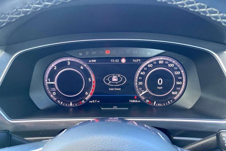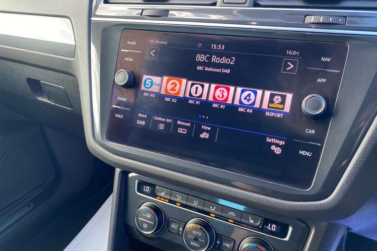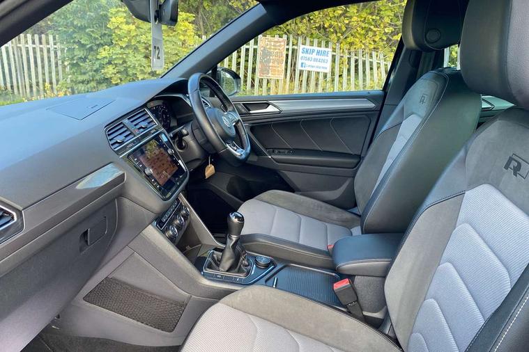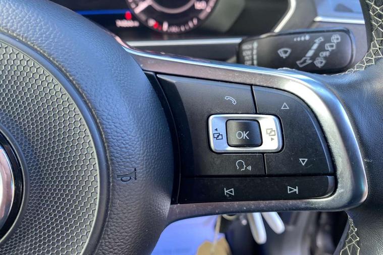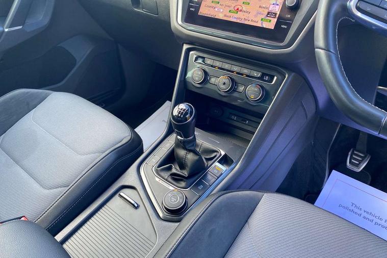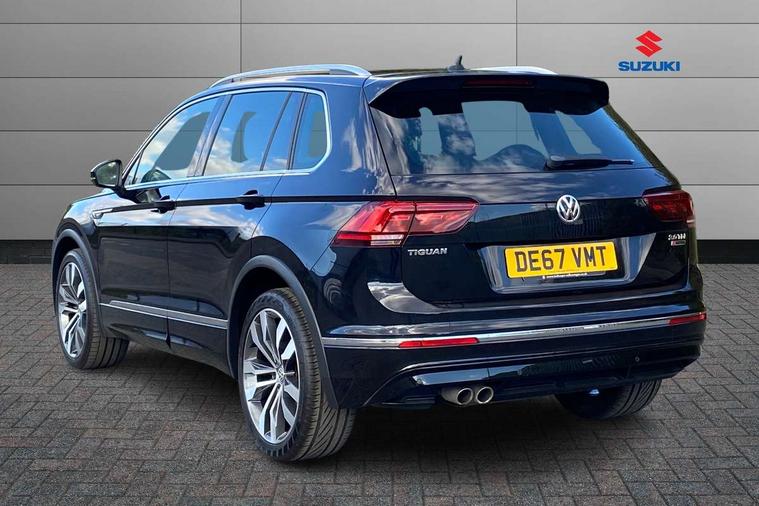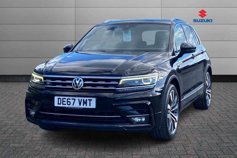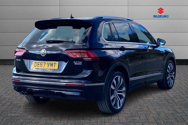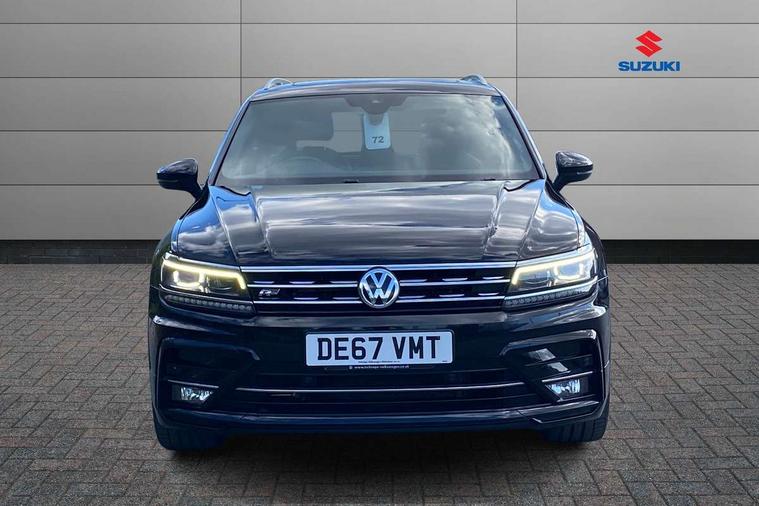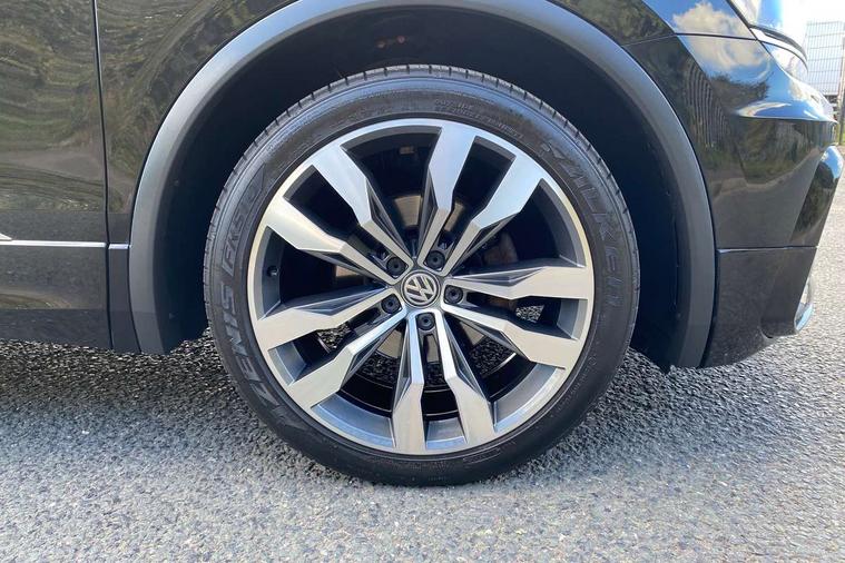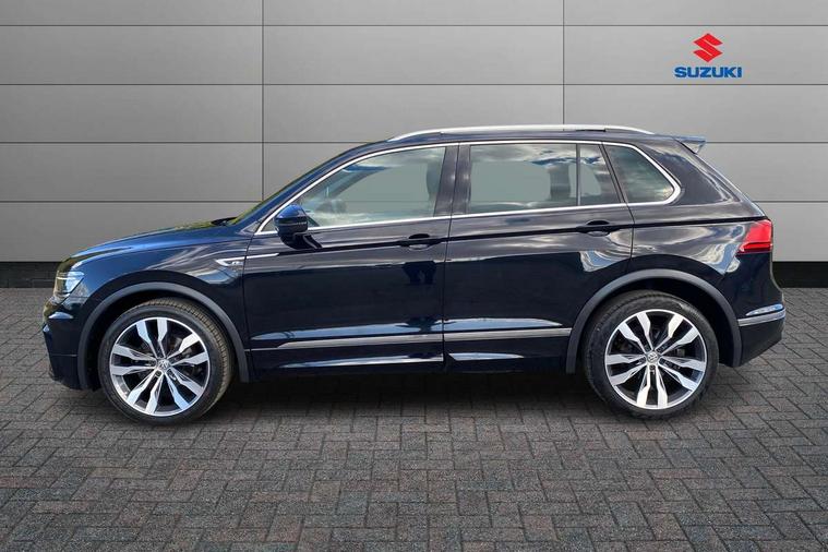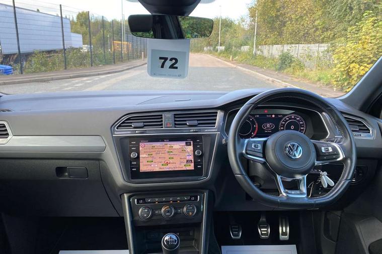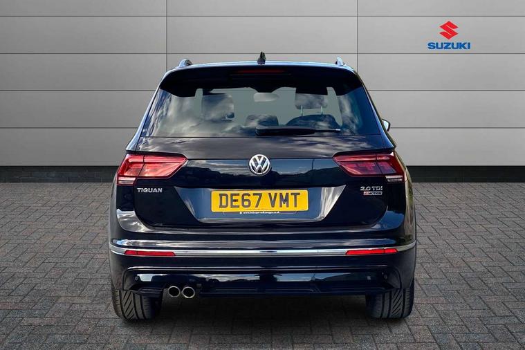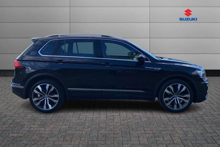 Active information display, Adaptive cruise control, App-Connect, Bluetooth phone integration system, Instrument cluster, Lane assist, Low washer fluid warning light, Outside temperature display, Service interval indicator, Speed limiter, Warning lights, Diesel particulate filter, Sports suspension, XDS electronic differential lock, Aux-in socket, DAB Digital radio, SD card slot, USB connection, Auto dimming interior mirror, Automatic activation of hazard warning lights, Black roof rails, Body colour door handles, Body colour door mirrors, Body colour rear spoiler, Body coloured bumpers, Chrome side window surrounds, Chrome trimmed radiator grille, Coming/leaving home lighting function, Dual chrome exhaust, Dusk sensor + auto driving lights, Electric folding door mirrors, Electric heated + adjustable door mirrors, Electric panoramic sunroof with sunblind, Front and rear electric windows, Heated rear window, LED headlights with dynamic light assist daytime running lights and cornering front fog lights, LED rear lights, Piano black rear diffuser, R Line body kit, Rain sensor windscreen wipers, Rear windscreen washer and wiper with interval delay, Silver under body guard, Tinted windows (B pillar backwards), Twin trapezoid chrome exhaust pipes, 12V Accessory socket in centre console, 3 rear headrests, 3 zone climate control, 4 load lashing points, 40:20:40 split folding rear seats, Bag hook in luggage compartment, Black headlining, Driver + front passenger lumbar support, Foldable passenger seatback, Front + rear carpet mats, Front centre armrest with 12v socket, Front centre armrest with storage + rear 2 air vents + cupholders, Front seatback folding tables, Height/reach adjust steering wheel, Illuminated driver/passenger vanity mirrors, Illuminated scuff plates, Interior light with delay, Isofix Preparation 2 Rear child seats, Leather gear knob, Lockable cooled glovebox, Luggage compartment lighting, Luggage compartment side storage, Map pockets on front seats, Passenger seat height adjuster, Rear cupholders, Removable luggage cover, Sliding/reclining rear seats, Stainless steel pedals, Storage compartment in driver's door, Storage compartment in passenger's door, Storage tray on dashboard, Sunglasses storage, Variable boot floor, Ambient lighting pack - Tiguan, 3 rear 3 point seatbelts, ABS+EBD+Brake assist, Active bonnet, Active pedestrian safety system, Curtain airbags, Driver/Front Passenger airbags, Driver/Passenger whiplash optimised head restraints, Drivers knee airbag, Electronic parking brake with auto hold, ESP with EDL + ASR, First aid kit, Front assist including city emergency braking, Front side airbags, Head airbag system, Height adjustable front 3 point seatbelts + pretensioners, Hill hold control, Passenger airbag deactivate switch, Passenger knee airbag, Pre crash system, Rear side airbags, Seatbelt warning lamp and buzzer, Two tone horn, Warning triangle, Alarm with interior protection, Electronic engine immobiliser, Remote central locking with 2 remote folding keys, Chrome door trim inserts, Piano black interior trim, 20" Suzuka alloy wheels + anti theft wheel bolts, Steel space saver spare wheel,