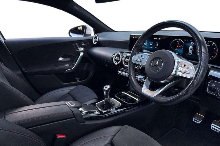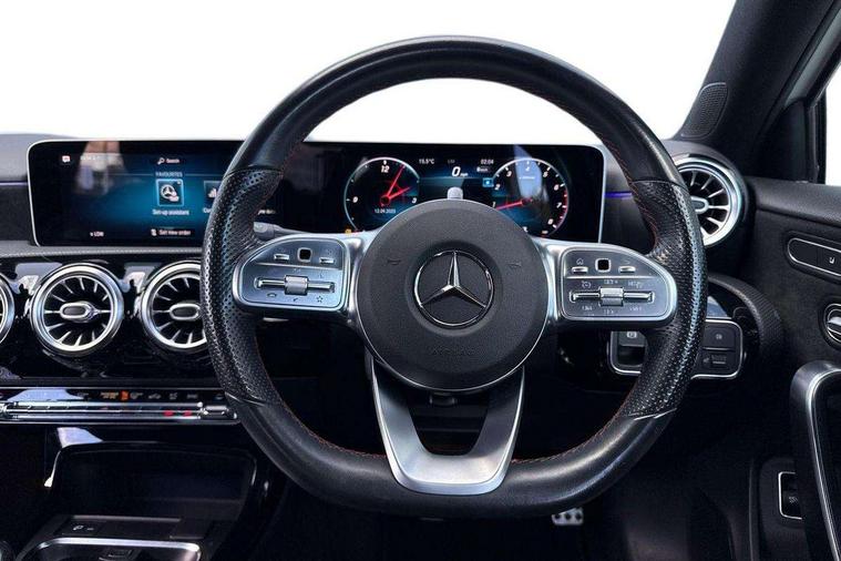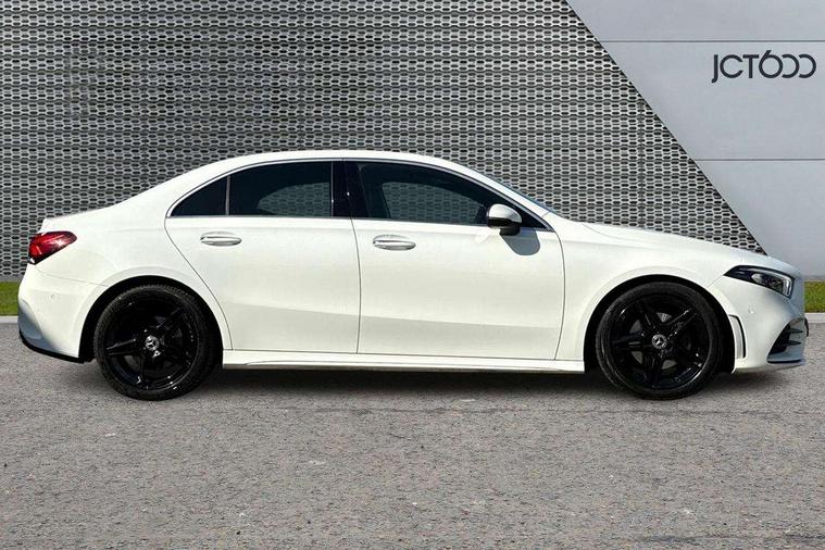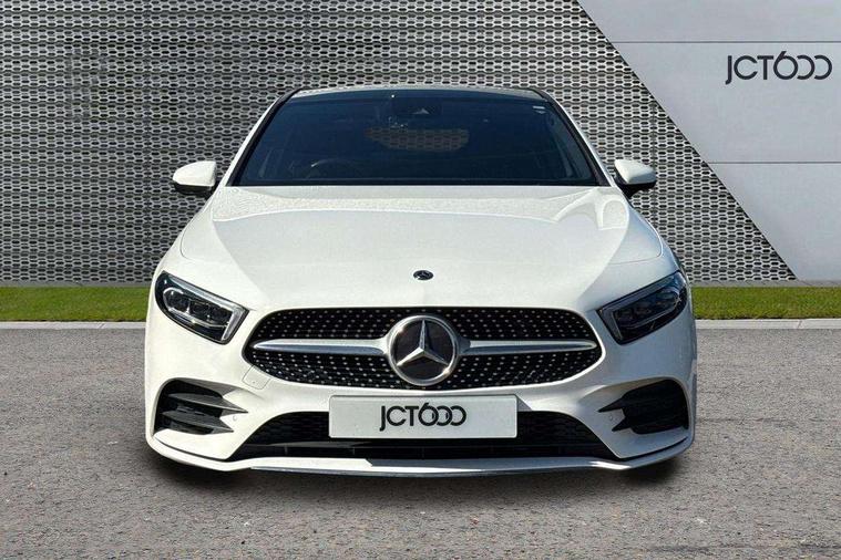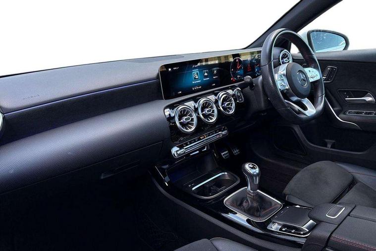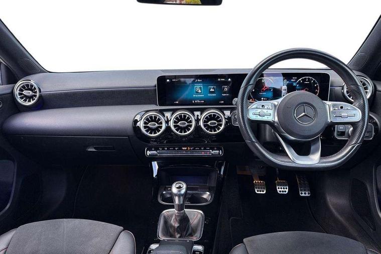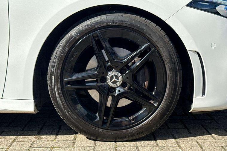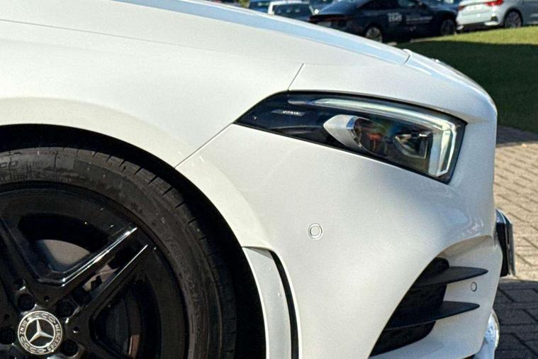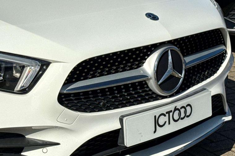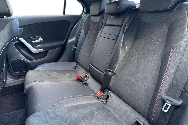 10.25" Digital instrument cluster display screen, 10.25" media display, 180 degree rear view camera with parking guidelines, Active lane keep assist, Active park assist with parktronic system including front and rear parking sensors, Attention assist, Brake pad wear indicator warning light, Cruise control + speed limiter, Direct steering, Dual bluetooth interfaces, DYNAMIC SELECT with a choice of driving modes (ECO, Comfort, Sport and Individual), ECO start/stop function, Fluid level warning indicator for fuel, oil, coolant and washer fluid, Hard-disk navigation, Hey Mercedes Voice activation, Lamp failure indicator, Mercedes me connect including emergency call system, accident recovery, breakdown and maintenance management, Outside temperature gauge, Owners manual in English, Pre-installation for private car sharing, Pre-installation for Vehicle Monitoring, Pre-installation for Vehicle Setup, Preinstallation for Mercedes Benz link, Service indicator (ASSYST), Smartphone integration with Apple CarPlay and Android auto, Speed sensitive power steering, Traffic sign assist, Trip computer, Wireless charging, Lowered comfort suspension, Rear axle multi-link, 10 speakers, 2 USB ports (type C) in rear stowage compartment and one in front of center console, DAB Digital radio, MBUX multimedia system with DAB digital radio and touchpad including satellite navigation, Mercedes-Benz advanced sound system - 225W, 4 Electric Front and Rear windows, Adaptive brake lights, AMG bodystyling - Front apron with splitter in chrome, rear apron with chrome trim and chrome visible trim elements in tailpipe, Black weather strip, Body colour bumpers, Body colour door handles, Body colour side skirt, Body coloured door mirrors, Chrome beltline trim, Diamond radiator grille with chrome pins and silver louvre + chrome insert, Electric adjustable and heated door mirrors with integrated LED side indicators, Exhaust system - Twin visible tailpipes in polished stainless steel, Headlamp assist automatic headlamp activation, Heated glass rear windscreen + timer control, Illuminated front door sill panels with Mercedes-Benz lettering, LED high performance headlamps with integrated LED daytime running lights, LED tail lamp, LED third brake light, Multibeam LED with adaptive highbeam assist plus, Panoramic sliding sunroof, Privacy glass, Radio aerial, Rain sensing windscreen wipers with two sensitivity settings, Rear fog lights, Window line trim strip in chrome, 3 Spoke flat bottom leather multi function steering wheel with perforated leather in grip area, 40:20:40 split folding rear seats, Artico man-made leather/Microfibre Dinamica upholstery with red contrast stitching, Auto Mercedes-Benz child seat recognition sensor, Black air vents with surround in silver chrome, Black roof lining, Brushed stainless steel sports pedals with rubber studs, Controller on centre console with chrome surround, Electrically adjustable front memory seats including lumbar support, Floor mats with stitched edging and AMG lettering, Front centre armrest with storage compartment, Front seat backs luggage nets, Front seat cushion length adjustment, Heated front seats, Height/reach adjustable steering column, Interior lighting - 64 colour Ambient lighting, Rear armrest with 2 cupholders, Rear head restraints, Seat occupancy sensor for front passenger seat, Spectacles compartment for driver, Sports seats with adjustable head restraints, Sunvisors with illuminated vanity mirrors, Touchpad on center console, Twin front cupholders, Two zone thermotronic luxury automatic climate control, Light and sight pack - A Class, Mirror package - A Class, Seat comfort pack - A Class, 3 rear 3 point seatbelts, ABS with Brake Assist, Active bonnet, Active brake assist includes forward collision warning system with autonomous braking, Adaptive brake assist with hold function and hill start assist, Black seatbelts, Childproof locks manually operated for rear doors and electrically operated for rear power windows, Crash responsive emergency lighting, Driver and passenger head and side airbags, Drivers knee airbag, Dual stage driver/passenger airbags, Electronic parking brake, ESP curve dynamic assist, ESP with ASR, Front and rear seatbelt reminder, Front brake callipers with Mercedes Benz lettering, ISOFIX and top tether child seat fixing points in two outer rear seats, Tyre pressure monitoring system, Warning triangle and first aid kit, Window airbags, Alarm system/interior protection/immobiliser, Keyless entry lock/unlock, Keyless Go, Remote central locking and crash sensor with emergency opening function, Light aluminium with longitudinal grain interior trim, 18" AMG 5 twin spoke light alloy wheels in titanium grey with highsheen finish, Summer tyres, Tirefit sealant kit,