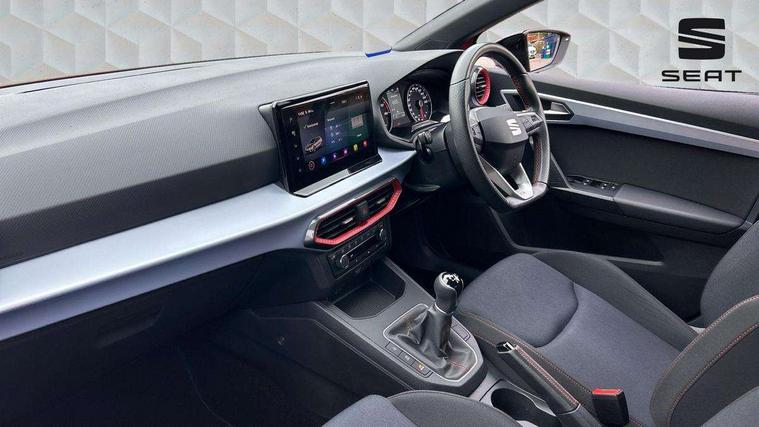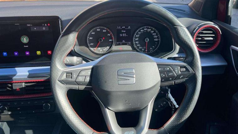 'Lights On' Reminder warning buzzer, 9.2" touchscreen navigation system with type C USB socket, Voice control and DAB/AM/FM radio, Auto start and stop system, Bluetooth audio streaming with handsfree system, Digital clock, Full link smartphone integration with mirror link, wireless apple carplay, Google android auto + USB Type C cable for apple and android devices, Lane assist, Low fuel warning light, Outside temperature gauge, Power Steering, Seat connect with safety, service, remote and online, SEAT drive profiles and ECO function, SEAT logo boot release, Speed limiter, Trip computer, Sports suspension, Auxiliary input socket, Radio/MP3 player, SD card slot, Steering wheel mounted controls, Anti theft roof antenna, Auto dimming rear view mirror, Automatic rain sensing wipers, Black door mirrors, Body colour bumpers, Body colour door handles, Brilliant black window surrounds, Dark tinted rear windows, Electric adjustable/heated/folding door mirrors, Electric front windows, Electric headlight adjustment, Electric rear windows, Front/rear fog lights, FULL LED automatic headlights with dynamic headlight range control, coming and leaving home, LED daytime running lights, LED tail lights, Rear roof spoiler with FR twin exhausts, 60/40 split folding rear seat, Ambient interior lighting, Chrome detailing and black headlining, Cloth upholstery, Dual zone climate control with combination filter, Front courtesy lights, Front cupholders x 2, Front reading lights, Gear shift indicator, Glovebox, Height adjustable front and rear headrests (five), Height adjustable front seats, Height/reach adjust steering wheel, Illuminated air vent surrounds, Illuminated boot, Instrument lighting with brightness control, Isofix, Leather multifunction flat bottomed sports steering wheel, Passenger sunvisor, Sports seats, Sunvisors with mirror and driver side card holder, 3 point seatbelts on all 3 rear seats, ABS, Active front headrests, Child locks on rear doors, Electronic stability control, Energy recovery system, Front assist forward collision warning and autonomous emergency braking, Front driver and passenger side airbags with curtain airbag and front passenger airbag deactivation, Hill hold control, Multi-Collision braking, Seat belt reminder for front and rear seats, Tiredness recognition system, Tyre pressure monitoring system, Electronic engine immobiliser, Locking wheel bolts, Perimeter alarm and interior monitoring with backup horn and tow away protection, Remote central locking + deadlocks, 17" Alloy wheels in Brilliant silver,