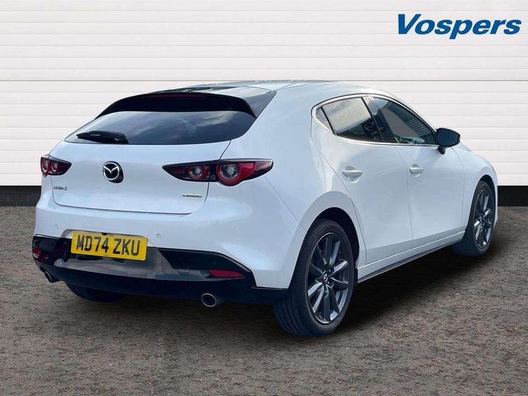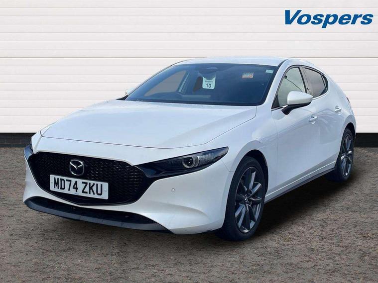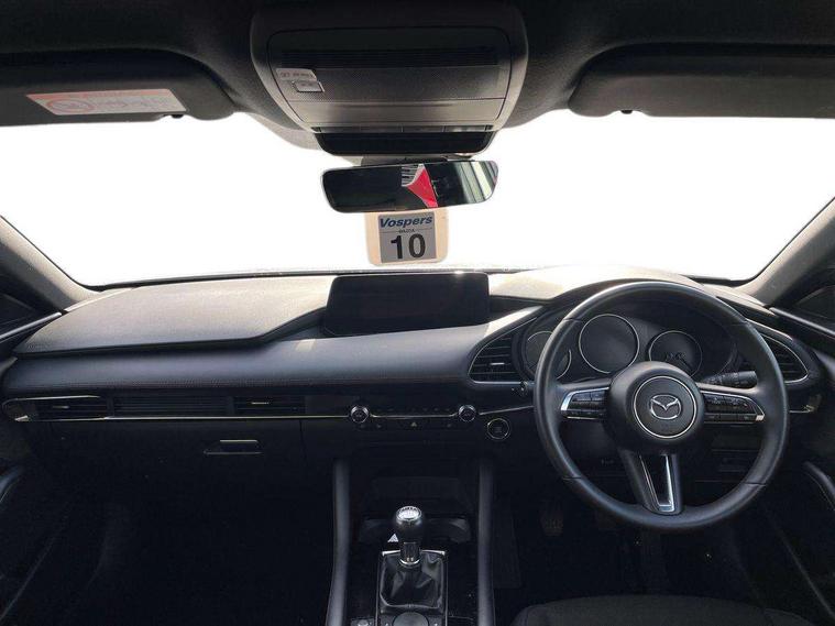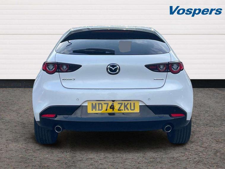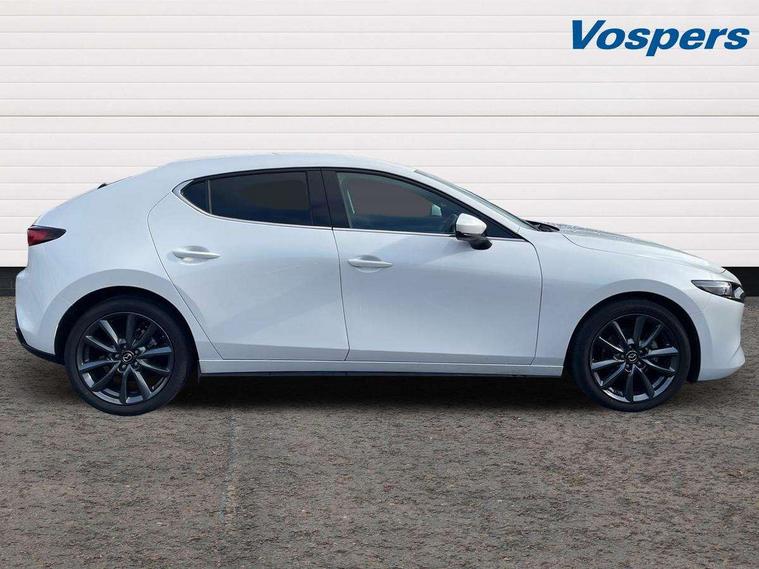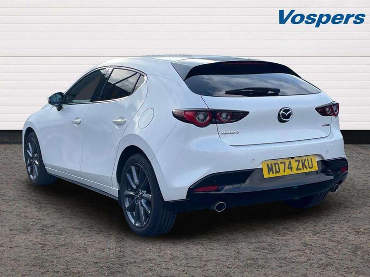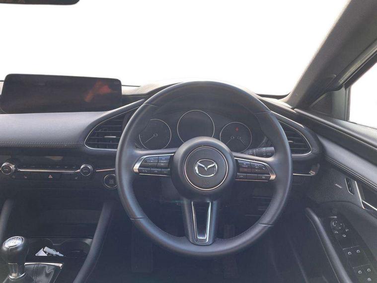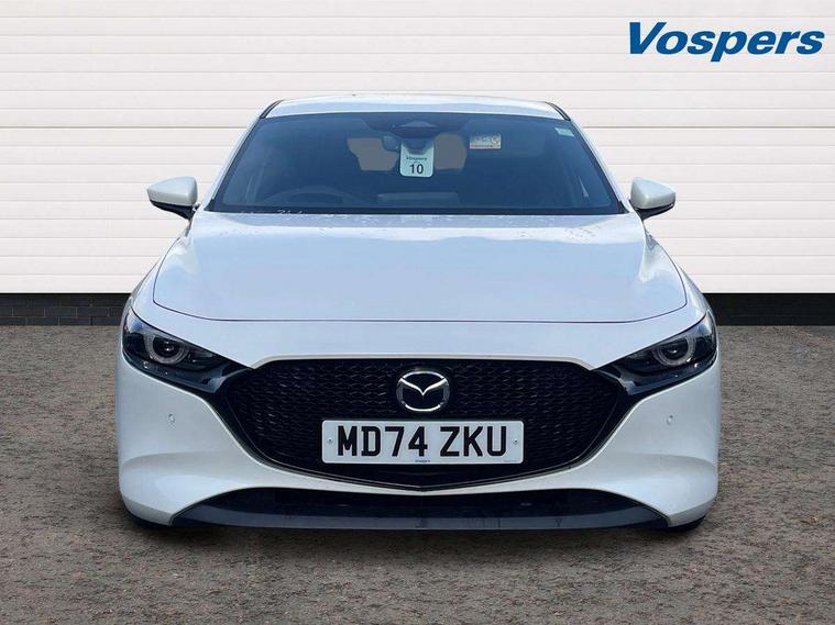 10.25" display with Mazda Connect infotainment, 7" colour TFT display, Adjustable speed limiter, Advanced E-call with GPS, Alexa in-car voice assistant, Audio transfer from bluetooth devices, Blind spot monitoring with rear cross traffic alert, Car finder, Colour active driving display inc Windscreen projected, Traffic Sign Recognition, turn-by- turn navigation and Mazda Radar Cruise Control information, Digital instrument cluster, Driver attention alert system, Emergency stop signalling system, Engine start/stop button, Front and rear parking sensor with audible and visual warning, Head up Display, Integrated bluetooth with steering wheel mounted controls, Intelligent speed assist, Lane keep assist system (LAS) with Lane departure warning system (LDWS), Mazda connected services, Mazda Navigation System with european mapping, Mazda Radar Cruise Control, Mobile App interface, Multimedia Commander, PAS, Qi wireless charging, Reversing camera, Service indicator, Tailgate, Traffic sign recognition (TSR), Trip computer, Wireless Apple CarPlay/Android Auto, Cylinder Deactivation, i-stop, 2 USB-C ports in the front, Mazda Multimedia System with AM / FM / DAB radio with 12 Speaker Bose sound system, bose centerpoint, bassmatch+audiopilot technology, Adaptive LED Headlights, Auto dimming driver's door mirrors, B-pillar garnish in piano black, Body coloured door mirrors, Coming/leaving home lighting function, Dark metallic finish signature wing, Dual chrome tailpipes tip, Dusk sensing headlights, Electric front/rear windows with one touch/auto up/down, Electrically adjustable, heated auto power folding door mirrors, Frameless auto dimming interior rear view mirror, Front body coloured bumper with black lower bezel, Front kodo turn signal, Gloss black finish front grille, Gloss black rear roof spoiler, LED auto headlight levelling, LED indicator lights, LED third brake light, Privacy glass with dark tinting on rear side windows and rear window, Rain sensing front wipers with adjustable sensitivity and speed, Rear colour coded bumper with gloss black lower moulding, Rear fog lights, Rear side wing doors, Signature LED daytime running lights, Signature LED rear combination lights, Speed adjustable rear wash wiper with intermittent wipe, 12v electrical power outlet, 3 seat bench in 2nd row, 60/40 split fold down rear seats, Chrome interior trim accents with steering wheel centre bezel, surround of engine start / stop button and glove box handle, Cloth upholstery, Dark cloth door panel inserts, Dark roof headlining, ceiling and pillars, Driver seat manual slide, recline, height and seat tilt adjust, Driver, front passenger and two rear door pockets, Driver, Front passenger and two rear grab handles with coathooks, Driver/passenger sunvisors + vanity mirrors (drivers side with ticket holder), Dual zone climate control air conditioning, Folding rear centre armrest with two cup holders, Front and rear courtesy lamps, Front armrest, Front centre storage with two cupholders, Front head restraints, Front passenger seatback pocket, Front passengers seat manual slide, recline and height adjustment, Gear shift indicator, Heated front seats with 3 stage setting, Illuminated glovebox, Interior colouration dashboard and doorcards in black with dark stitching, ISOFIX child seat anchorage points attached on outer rear seats, Leather wrapped gear shift knob, Leather wrapped steering wheel, LED interior light, LED light in luggage compartment, Power outlet in luggage compartment, Roof mounted sunglasses holder, Single front passenger seat, Three height adjustable rear head restraints, Tilt/height adjustable steering wheel, 3 point ELR front seatbelts with pretensioners, 3 rear 3 point seatbelts with ELR, Anti-lock braking system (ABS), Drivers knee airbag, DSC - Dynamic Stability Control, Dual stage driver and single stage passenger airbags, EBD - Electronic brakeforce distribution, Electronic parking brake with auto disengage function and auto hold function, Front and rear curtain airbags, Front passenger airbag cut-off switch, Front side airbags, Front smart city brake support, G-Vectoring control plus, Hill launch assist, Intelligent Traction Control system, Manual child lock in rear doors, Mild Hybrid system with regenerative braking, Seatbelt reminder audible warning for driver, passenger and rear seats, Tyre pressure monitoring system (TPMS), Auto door lock when driving, Remote central locking + deadlocks, Smart keyless entry, Thatcham accredited alarm and immobiliser, 18" Grey alloy wheels, Emergency tyre repair kit,
