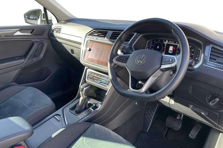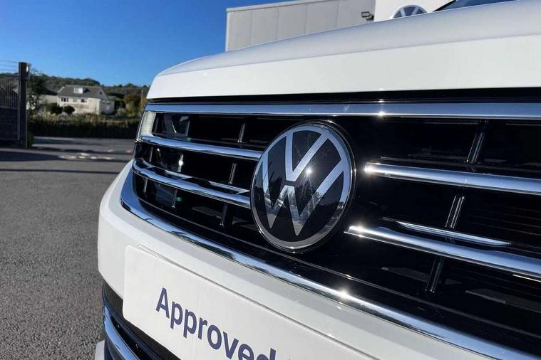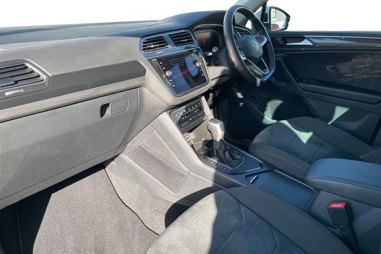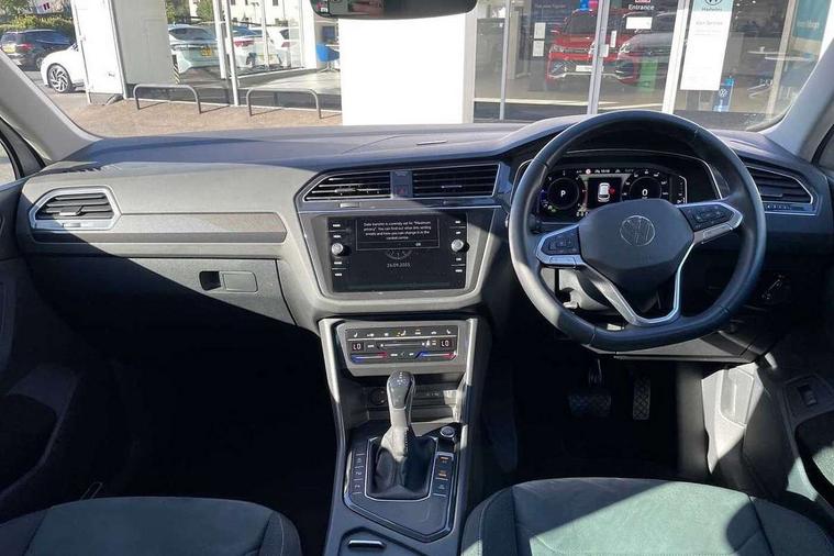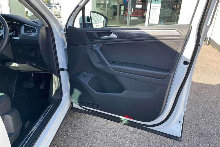 Adaptive cruise control ACC stop and go including speed limiter, App-Connect incl. App-Connect Wireless for Apple CarPlay and Android Auto, Bluetooth phone integration system, Distance control assist, Driver alert system, Driver profile selection, Dynamic road sign display, eCall emergency call system, Electromechanical speed sensitive power steering, Engine start/stop button, Lane keeping system Lane Assist, Lights on warning, Motorised electric tailgate operated via key fob, drivers door and foot movement under tailgate, Multifunction front facing camera, Outside temperature display, Premium multifunction display with multi colour display, Remote control boot opening, Rev counter, Revision / skills operating concept travel assistant, Service interval indicator, Speed limit display, Start/stop system with regenerative braking, Tailgate/trunk lid unlocking from outside, Trip computer, Warning sound and light for doors and tailgate open, Battery regeneration during braking, Diesel particulate filter, Misfuel prevention device for diesel engine, Selective Catalytic Reduction, XDS electronic differential lock for improved traction and handling, 4 X 20 watt output, 8 Speakers, Diversity antenna for FM reception, Radio, SD card slot, Simultaneous pairing of 2 compatible mobile devices, SMS functionality - read, compose and send SMS messages using touch-screen display, Title and cover art display, USB C ports, Aluminium door sill protectors, Auto dimming interior rear view mirror, Automatic headlight control system, Body colour door handles, Body coloured bumpers, Body coloured door mirrors with integrated indicators, Coming/leaving home lighting function, Dynamic headlight range control, Front and rear electric windows, Heated rear window, High level 3rd brake light, IQ light-Adv high beam, Dynamic light assist for LED matrix headlamp+LED separate DRL+DCL, dark red rear LED tech, Poor weather light+ cornering light, Laminated safety glass windshield, heat and sound insulating, LED rear number plate lights, Poor weather light and cornering light, Privacy glass for rear side windows and rear window, Rain sensor windscreen wipers, Rear exhaust tailpipe, Rear fog lamp, Rear side wing doors, Rear windscreen washer and wiper with interval delay, Side and rear windows in heat insulating glass, Tilting and sliding panoramic sunroof with rear panoramic sunroof, Trailer Stability Programme, Windscreen wipers/ intermittent wipe + 4 position delay, 12V outlet in center console rear and in luggage compartment, 12V outlet in front and tray, 2 cup holders in front, 2 LED front reading lights, 2 LED rear reading lights, 3 bench rear seats in 2nd row, 3 rear headrests, 4 load lashing points, 40:20:40 split folding rear seats, Air Care Climatronic 3 zone automatic climate control with enhanced air filter and controls in the rear, Backrest release for left front seat, Climate control unit rear with touch function, Door and side trim panel in foam film and woven fabric, Front centre armrest, Front footwell illumination, Front seats head restraints (x-adjustment), Height adjustable front seats, Height/reach adjust steering wheel, Instrument lighting white adjustable panel illumination, Interior light with delay, Isofix Preparation 2 Rear child seats, Leather gear knob, Lockable cooled glovebox, Luggage compartment lighting, Luggage net, Rear bench seat asymetrically split folding, longitudinally movable and folding with load-through hatch and center armrest, Remote unlocking for rear seat backrest, Removable luggage cover, Removable rear headrests, Safety optimised front head restraints, Single front passenger seat, Sliding/reclining rear seats, Standard rear seat release, Storage compartment in driver's door, Storage compartment in passenger's door, Storage compartment in rear doors, Storage compartments in luggage area left and right, Storage tray on dashboard, Sun visors with illuminated vanity mirrors, Top front comfort seats, Variable boot floor, height adjustable and removable, Easy open and close pack with safelock - Tiguan, 3 point seat belt for centre rear seats, 3 point seat belts with seat belt pretensioners for the outer rear seats, Active bonnet, Curtain airbags for front and rear passengers, Driver/Front Passenger airbags, Drivers knee airbag, Electronic parking brake with auto hold, Electronic Stability Control with driver steering recommendation, ABS, ASR, EDL, EDTC and trailer stabilization, Front assist with autonomous emergency braking (for Adaptive Cruise Control ACC up to 130 mph), Front disc brakes, Front passenger airbag deactivation, Front side airbags, Height adjustable front 3 point seatbelts + pretensioners, Hill hold control, Manual child proof rear door locks, Pedestrian monitoring system, Power assisted brakes, Proactive passenger protection system in combination with front assist, Rear disc brakes, Rigid safety cell with front and rear crumple zones, Two tone horn, Warning sound and light for front seat belts if unfastened, Anti theft alarm system with interior monitoring, backup horn and towing protection, Anti theft wheel bolts, Central locking system with safelock radio remote control and 2 remote control folding keys, Electronic engine immobiliser, Tool kit,