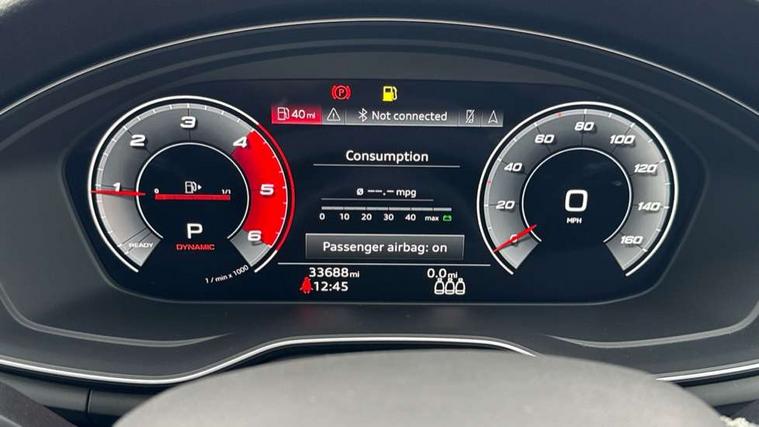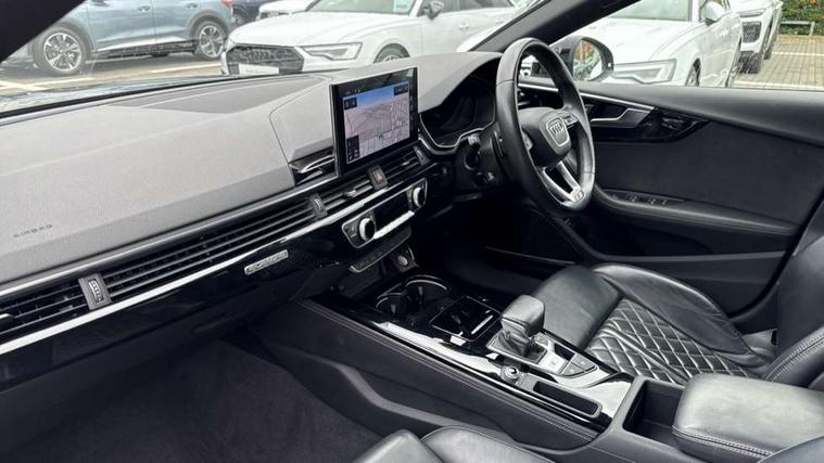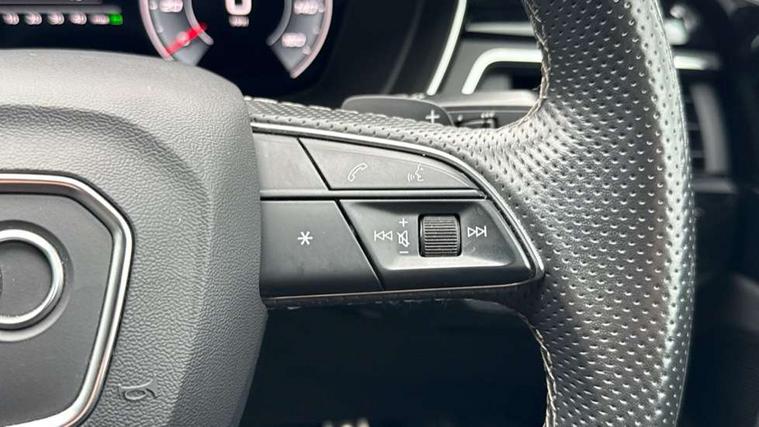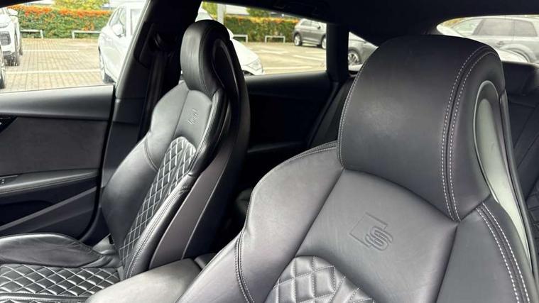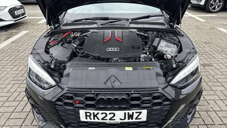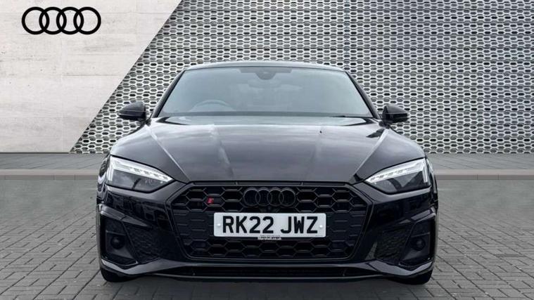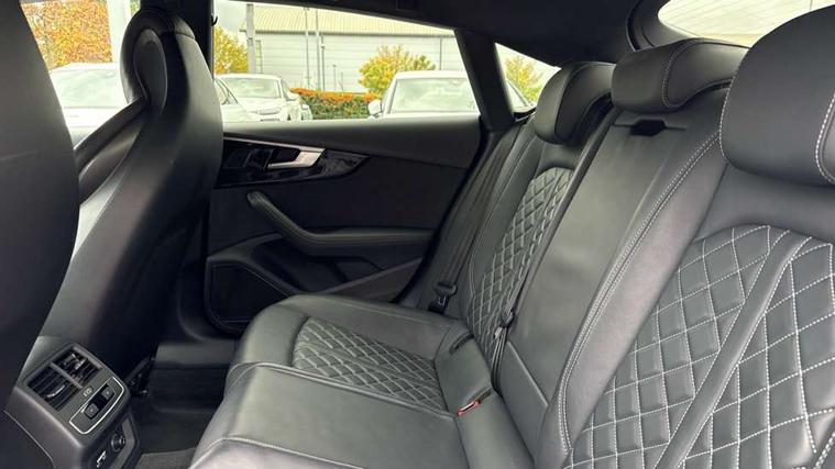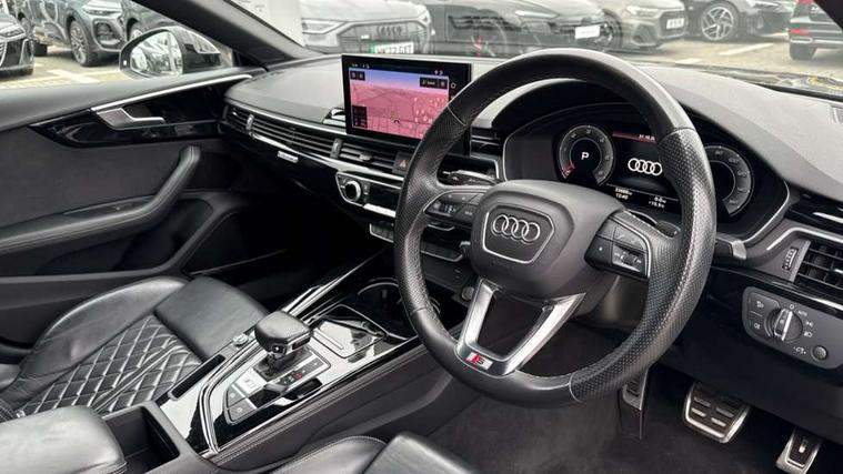 Audi connect safety and service (e-call), Audi connect with Amazon Alexa Integration, Audi drive select (Auto, Comfort, Dynamic, Efficiency and Individual), Audi parking system plus with front and rear sensors, Audi smartphone interface, Audi virtual cockpit - 12.3" full colour digital instrument cluster, vehicle/engine speed, Radio/media information+Driver assistance systems, Automatic start-stop system with coasting functionality and efficiency programme, Bluetooth interface, Electro-mechanical power steering, Email, calendar and text messages displayed via MMI, MMI nav+ with MMI touch - 10.1" high resolution MMI display, touch sensitive, 3D map, route/country info, dynamic route guide, personal route assist, Power operated tailgate, Rear view camera, S instrument dials, Service interval indicator, Voice control system, Diesel particulate filter, S sports suspension, Audi sound system with 10 loudspeakers, CD player, DAB digital radio reception, Two additional USB ports for rear passenger in rear centre console, Two SDXC card slots, Audi Beam uses LEDs to project the Audi logo, Audi matrix LED headlights with LED rear lights + dynamic front and rear indicators, Auto dimming rear view mirror, Black door mirror housings, Body colour door handles, Body colour front spoiler lip, Body colour side sill trim, Electric adjustable heated door mirrors, Electric folding door mirrors, Electric front windows, Front fog lights, LED daytime running lights, LED third brake light, Privacy glass, Rain and light sensors, Rear side wing doors, S model rear spoiler in black, S radiator grille in twilight grey matt with dual struts in aluminium and S5 logo, S rear diffuser in twilight grey matt and honeycomb grille in black, S specific dual branch chrome tailpipes with twin oval pipes on left and right, S specific side air inlets in titan black with chrome inlays in unique S design, Sport front and rear bumpers with side skirts, Variable front intermittent wipers, Windscreen with acoustic glazing, 3 Spoke flat bottom high multi-function leather steering wheel with shift paddles, 40/20/40 split folding 3 seater rear bench seat, Adjustable steering column, Black cloth headlining, Black leather gear lever knob, Contrast stitching on seats, steering wheel and gear lever gaiter, Deluxe 3 zone electronic climate control, Electrically adjustable front seats, Fine nappa leather upholstery with S embossed logo + super sports seats, Front centre armrest, Front head restraints, Front/rear floor mats, Gear lever with diamond S badge, Heated front seats, Illuminated door sill trim with S logo, ISOFIX child seat mounting and top tether, Key with S5 logo, Luggage compartment mat, Pneumatically adjustable lumbar support with massage function, Rear headrests, Single front passenger seat, Stainless steel pedals, Sunvisors with vanity mirrors, Tool kit, Black styling pack - A5 Coupe/Sportback, Extended leather pack - A5, LED interior light pack - A5/RS5, 3x3 point rear seatbelts, 6 airbags - Driver, front passenger, curtain and side airbags, Electromechanical parking brake, Electronic Stabilisation Control (ESC) including ABS, ASR and EDL, Front brake calipers painted in black with S5 logo, Front passenger airbag deactivation, Height adjustable front seatbelts, Hill hold assist, Multi collision brake assist, Pop-up bonnet for pedestrian protection, Pre sense city, S model enhanced braking system, Seatbelt monitoring, Tyre pressure warning, Variable restraint system, Warning triangle and first aid kit, Anti theft alarm system, Anti theft wheel bolts, Immobiliser, Keyless Go, Remote central locking, 20" 5 twin spoke polygon design alloy wheels in gloss anthracite black and gloss turned finish, Tyre repair kit,