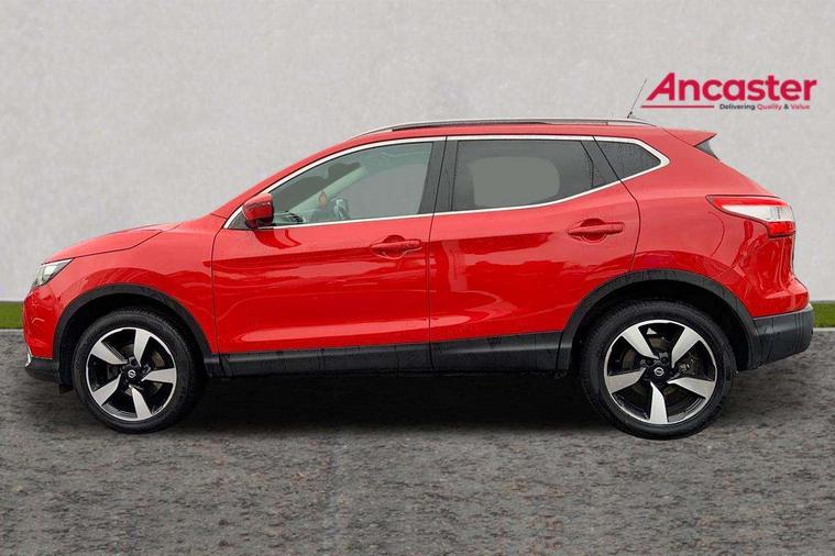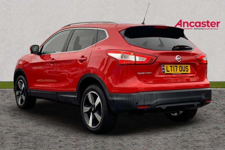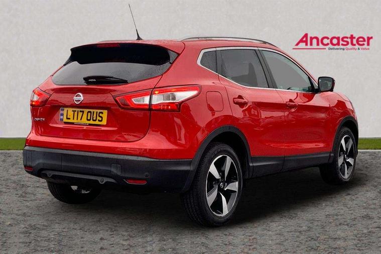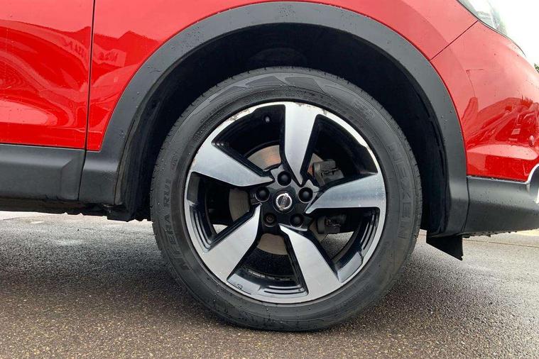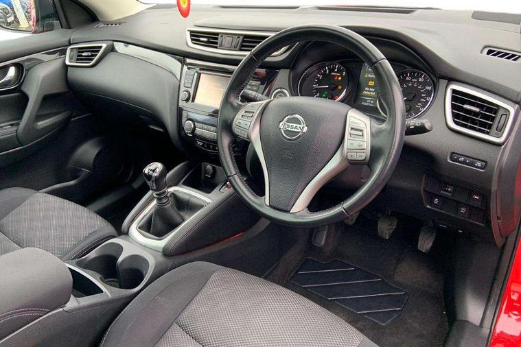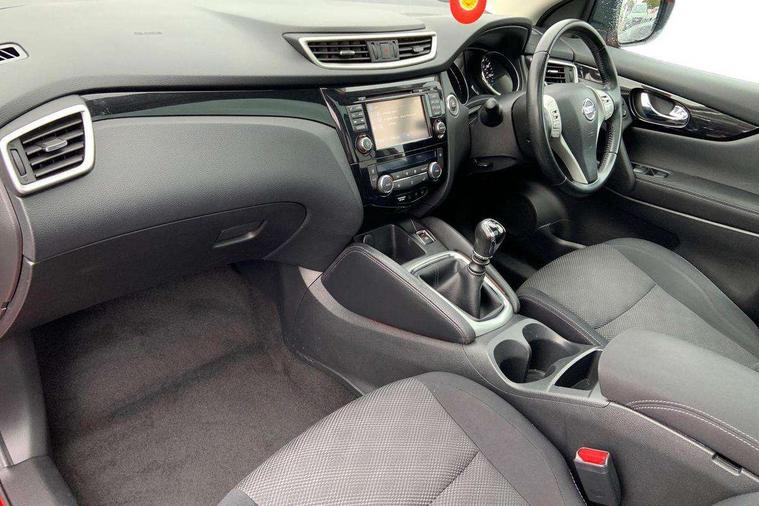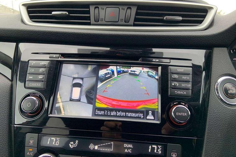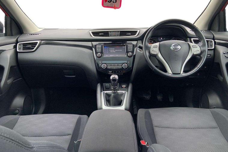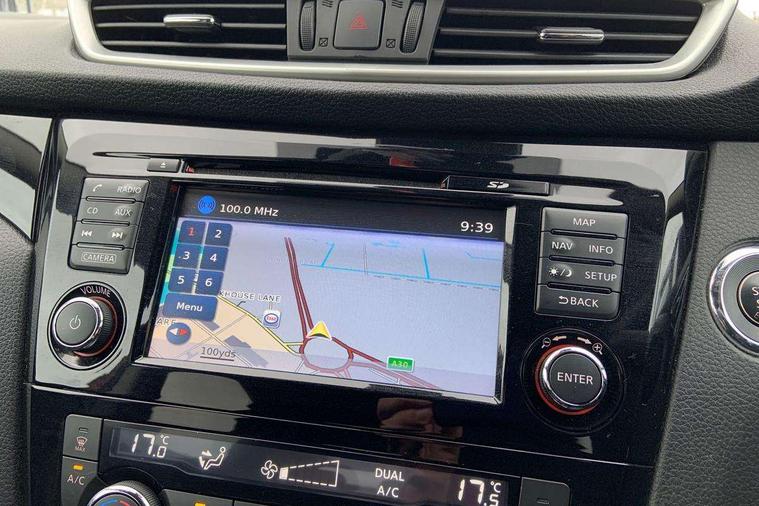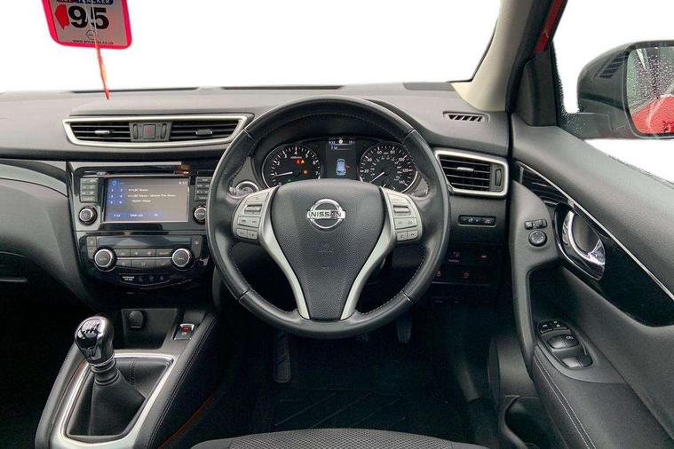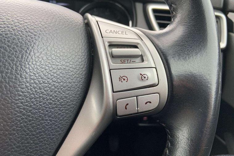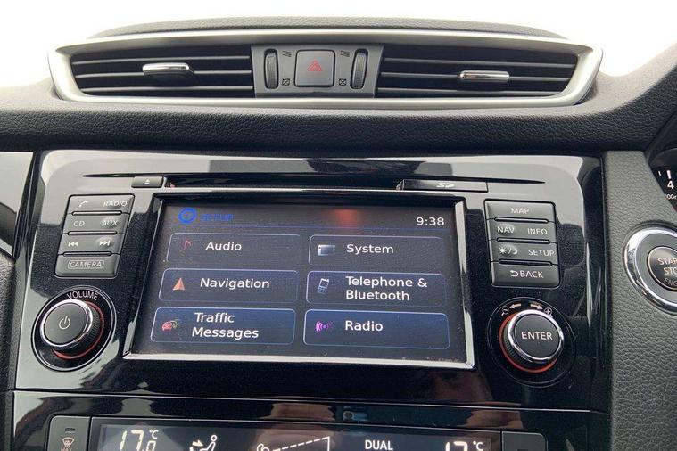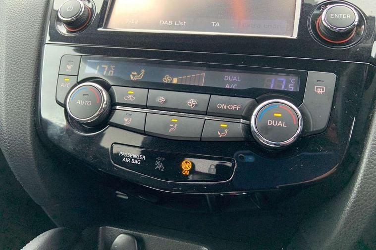 5" TFT driver information centre, 7" touch screen, Around View Monitor, Bluetooth phone integration system, Cruise control, Front and rear parking sensors, Lane departure warning system, Nissan connect sat nav system, Push button starter, Service interval indicator, Speed limiter, Speed sensitive power steering, Traffic sign recognition, Trip computer, 6 speakers, DAB radio/CD player, Steering wheel mounted audio controls, USB/aux input socket, 2 speed wipers+variable intermittent wipe, Automatic headlamp activation, Black honeycomb front grille, Body colour bumpers, Body colour door mirrors and handles, Chrome window surround, Electric folding and heated door mirrors, Electric front/rear windows, Front fog lights with chrome surrounds, High beam assist, Interior mirror with auto anti dazzle, LED daytime running lights, Rain sensor windscreen wipers, Rear privacy glass, Rear wiper, 12V socket, 60/40 split folding rear seat, Ambient interior lighting, Cloth upholstery, Driver's lumbar support, Driver/passenger front seatback pockets, Dual zone climate control, Footwell ambient lighting, Front armrest, Front cupholders x 2, Front headrests, Front seat belt pre-tensioners with load limiters, Height adjustable driver's seat, Height adjustable passenger seat with lumbar support, Illuminated glovebox, Isofix child seat preparation, Leather gearknob, Leather steering wheel, Luggage area divider, Map reading lamp, Pollen filter, Rake/reach adjustable steering wheel, Rear armrest with 2 cupholders, Rear headrests, ABS, brake assist and EBD, Active Trace Control, Child locks on rear doors, Curtain airbags, Driver/front passenger airbag, Electronic parking brake, ESP + traction control, Forward emergency braking, Height adjustable front seatbelts, Hill start assist, Side airbags, Three 3 point rear seatbelts, Tyre pressure monitoring system, Warning triangle and first aid kit, Alarm, Immobiliser, Intelligent Key, Remote central locking, 18" Diamond cut alloy wheels, Tyre puncture repair kit,