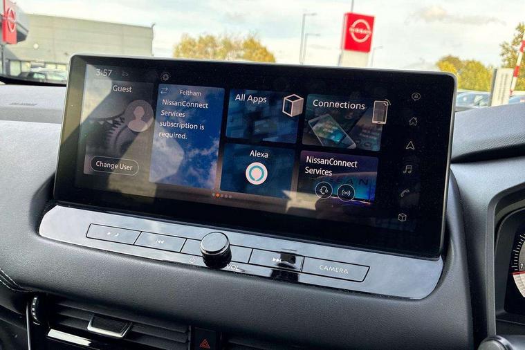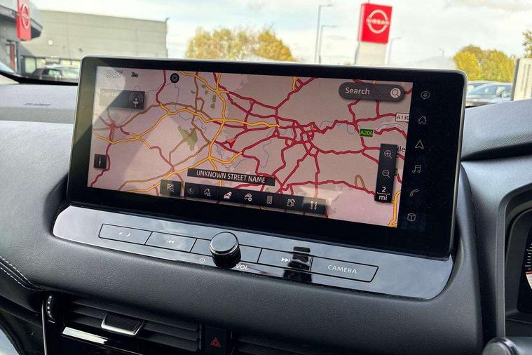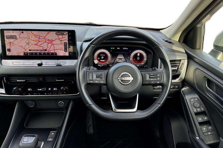Android auto/Apple CarPlay (Wired), Blind spot warning, Drive modes (sport, normal, eco), Electric speed sensitive power steering, Emergency and breakdown call, Full Digital 12.3" TFT Digital Combimeter, Google maps services - search, weather, 3D maps and Google street view, Idle stop/start system, Intelligent around view monitor, Intelligent Cruise control (ICC), Intelligent driver alert system, Intelligent forward collision warning, Intelligent lane intervention, Lane departure prevention, Lane departure warning system, Maximum speed limiter, Moving object detection, Nissan connect 12.3 inch touchscreen infotainment system, Nissan connect navigation, Push button starter, Rear cross traffic alert, Rear parking sensors, Rear view camera, Remote control services - door locks, lights, horn and car locator, Telematics - notifications and connectivity services, TomTom live traffic services, Traffic sign recognition with legal speed adjustment, Trip computer, Virtual personal assistant and firmware over the air capability, Wireless apple carplay, 6 speakers, AM/FM audio system with DAB, Bluetooth audio streaming, Front USB connections (Type-A and Type-C), Rear USB charging only ports (Type-A and Type-C), Auto dimming rear view mirror, Auto rear wiper when reversing, Automatic hazard signal with emergency stop signal, Body colour mirror caps, Body coloured door handles, Bodyside mouldings, Chrome side window finisher, Door handle with button, Electric auto folding door mirrors, Electrically adjustable and heated door mirrors with LED turn indicator, Follow me home headlights, High beam assist, Intelligent auto headlights, LED daytime running lights, LED Headlights, LED rear lights, One touch front and rear electric windows with remote opening and closing, Partially body coloured bumpers, Privacy glass, Rear bumper with graphite insert, Rear reversing light (bulb lighting), Rear roof spoiler, Rear side wing doors, Rear styling plate, Shark fin antenna, Splash free rain sensing wipers, Super UV and infrared cut glass, Three blink turn signal, 12v power socket in dashboard and luggage, 2x Rear coat hooks, 3 bench rear seats in 2nd row, 3 rear headrests, 4 folding assist grip, 6 Luggage hooks - 4 on floor, 2 on side, 6-way manually adjustable driver's seat, 60/40 split folding rear seat bench, Ambient lighting around centre console, Centre console storage tray, Chrome interior door handles, Cloth monoform upholstery, Driver and front passenger sunvisors with illuminated vanity mirrors, Driver seat back pocket, Dual zone automatic climate control with pollen filter, Electrically adjustable lumbar support for driver, Front and rear door storage, Front centre console and armrest, Front cupholders x 2, Front door with bottle holders, Glovebox with light, Hard trunk cover, Height adjustable driver's seat, Height adjustable front headrests, Height adjustable passenger seat, Leather steering wheel, Luggage board system, Luggage space lighting, Manually adjustable passenger (slide recline + lifter), Multifunction steering wheel, Passenger seat back pocket, Rear armrest with 2 cupholders, Rear door bottle holders, Single front passenger seat, Soft PVC kneepad, Steering wheel gearshift paddles, Steering wheel switches, Sunglasses holder, Tilt/telescopic adjustable steering wheel, Two rear isofix child seat anchorage points with top tether, Welcome light and console tray ambient lighting, 3x3 point rear seatbelt pretensioners + load limiters, ABS with EBD and brake assist, Active brake limited slip, Auto hold function, Child locks on rear doors, Curtain and front side, far side airbags, Driver and passenger airbags, Driver, passenger and 2nd row rear seat belt reminder, Electronic parking brake, Front seatbelt pretensioners + load limiters, Height adjustable front seatbelts, Hill start assist, Intelligent blind spot intervention, Intelligent front emergency braking with pedestrian, cyclist recognition and junction assist, Intelligent rear automatic braking, Tyre pressure monitoring system, Vehicle dynamic control, Capless fuel filler, Engine immobiliser, Intelligent Key, Remote central door locking with deadlocking, Thatcham Cat.1 alarm, Interior instrumental panel B finisher, 18" Diamond cut alloy wheels, Tyre puncture repair kit,