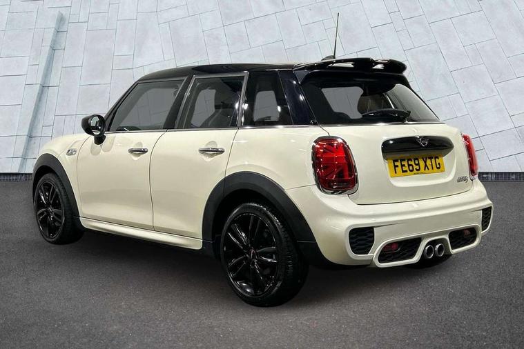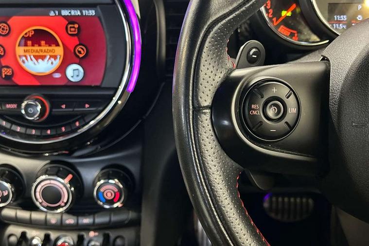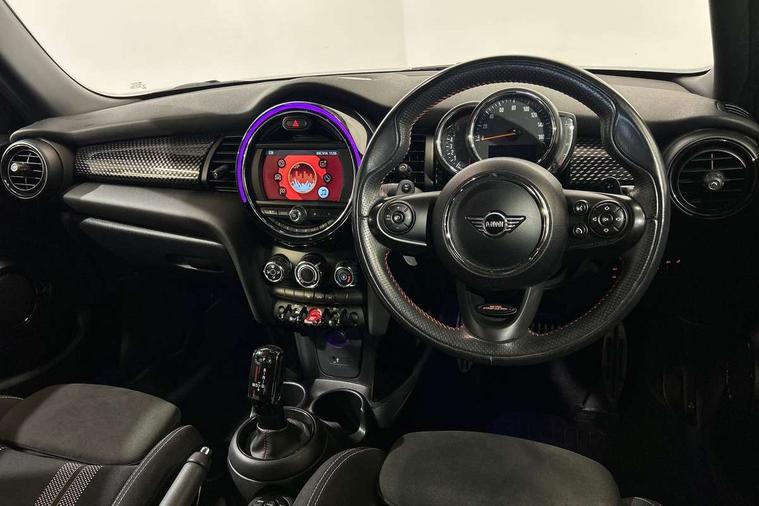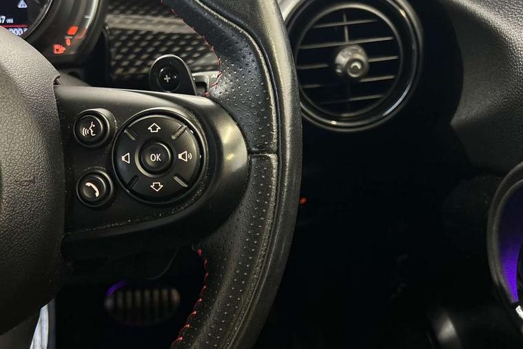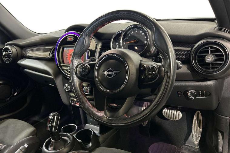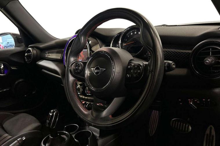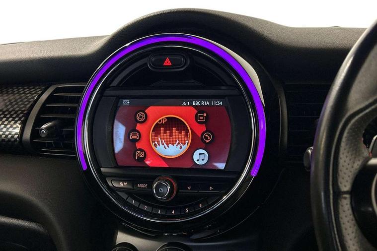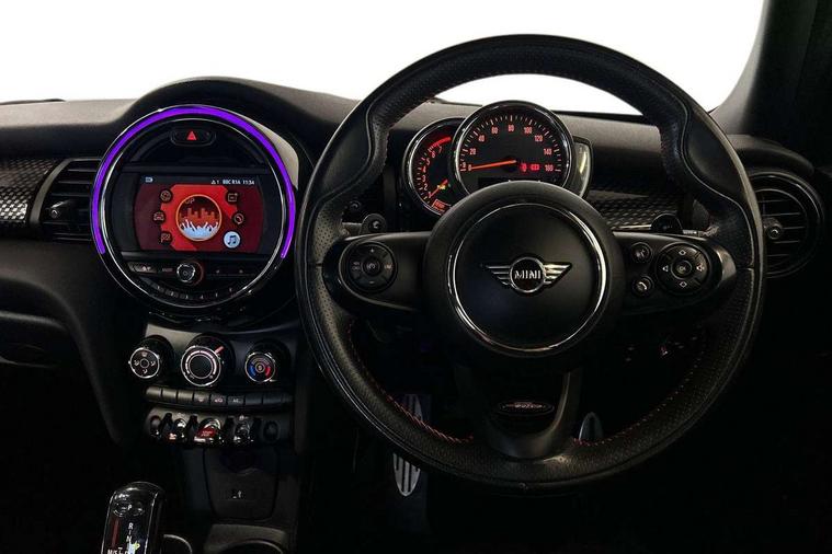 Automatic start/stop function with brake energy recuperation, Compatible mobile phone bluetooth with audio streaming, Electro-mechanical speed dependant steering assistance, Instrument cluster, Mini E-call, MINI TeleServices, On board computer, Service interval indicator, Double Vanos system, Fully variable valve control, High precision injection, Performance Control, Steptronic sport transmission with double clutch and steering wheel paddles, 6.5" touchscreen with LED ring, FM tuner and DAB digital radio, Automatic headlight activation switch, Bonnet scoop, Chrome border honeycomb structure radiator grille with S badge, Chrome plated fuel cap, Dynamic brake lights, Electric front+rear windows, Heated rear window, Heated windscreen washer jets, John Cooper Works - aerodynamic kit (front and rear apron, spoiler), front and rear sport bumpers and part-painted side sills with door sill finishers, John Cooper Works rear spoiler, LED headlight with closed ring and daytime driving lights, Metal door sill strips with Cooper S imprint, Model logo Cooper S on right of tailgate, Rain sensor window wipers, Rear fog lights, Rear LED lights with union jack design, Rear window wiper, Side scuttle panel with integrated indicator, Sun/heat protection glass, Two central exhaust tailpipes with chrome finisher, White indicator lenses, 12V Accessory socket in centre console, 4 lashing eyes in luggage compartment, 60/40 split folding rear seat, Anthracite headlining, Chrome interior highlights, Cupholders, Front and rear head restraints, Front and rear isofix with front passenger airbag deactivation, Glove compartment, Height and length steering column adjustment, Interior lighting with 12 basic colours selectable via toggle switch in roof, John Cooper Works leather steering wheel with contrasting stitching in Chilli Red with John Cooper Works logo, John Cooper Works Logo in seat, Leather gearshift lever and handbrake gaiters, LED reading lights, vanity mirror lights, front foot well light and spotlight on front seats, Manual air conditioning, Mechanical seat adjustment, driver seat height adjust, forward/back and front seats backrest, Mini logo projection on floor from drivers exterior mirror, Multifunction steering wheel, Storage compartments in doors, Storage pocket on back of front seats, Sunvisors with vanity mirrors, 3 point seatbelts on all five seats, 6 Airbags - front, side, head and seat belt tensioners, Anti-lock braking system (ABS), DSC - Dynamic Stability Control, Front and rear disc brakes, Hill start assist, Two tone horn, Tyre pressure monitoring system, Alarm system with tilt sensor, monitoring doors, bonnet interior and tailgate, Electronic vehicle immobiliser, Start/stop toggle with keyless go, Tool kit,